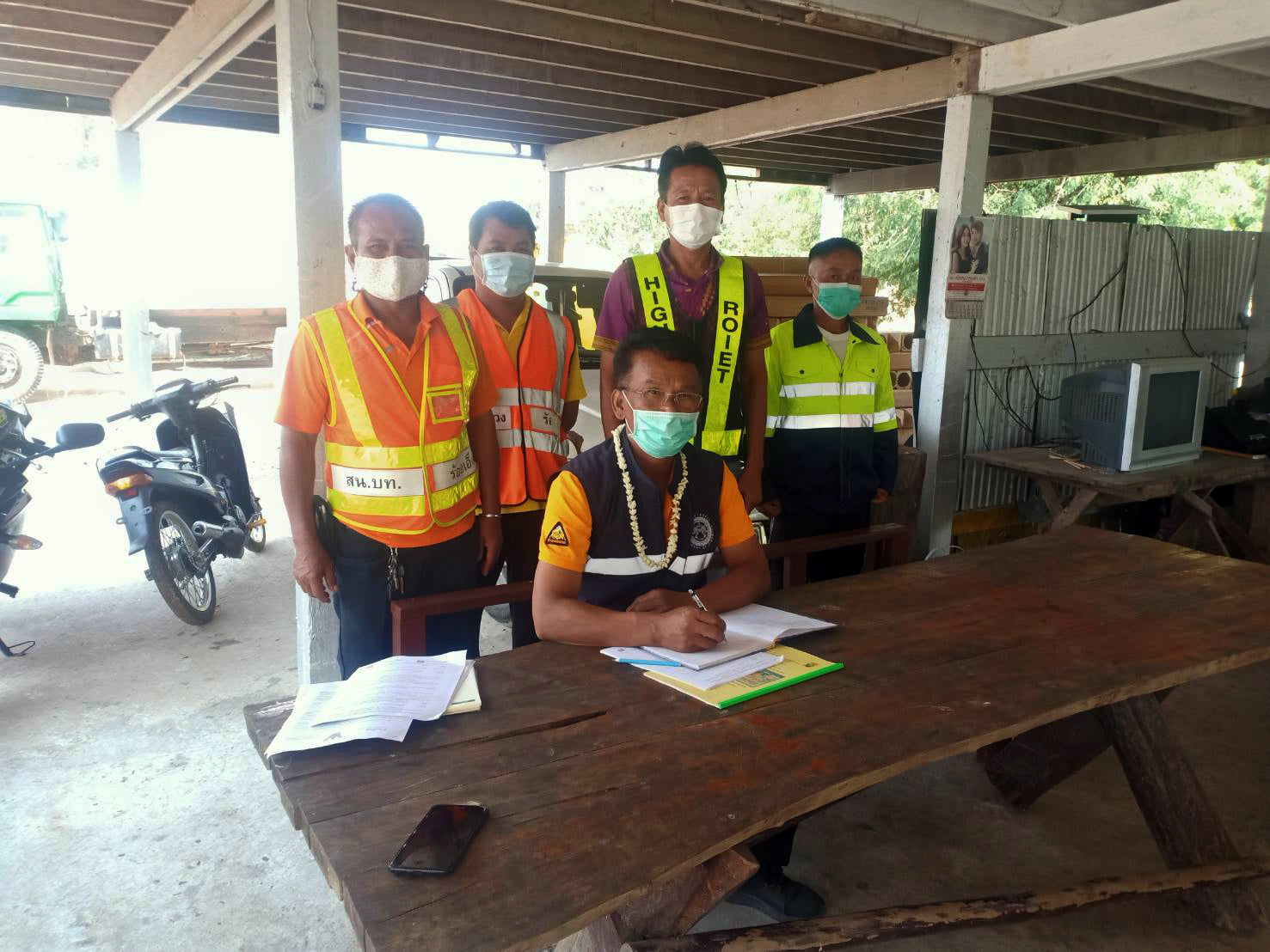 นายสถิต คำพิชิต รองผู้อำนวยการแขวงทางหลวงร้อยเอ็ด ฝ่ายปฏิบัติการ ตรวจเยี่ยมจุดบริการประชาชนช่วงเทศกาลสงกรานต์ 2565 ประจำหมวดทางหลวงโพนทอง ,หมวดทางหลวงเสลภูมิ และหมวดทางหลวงร้อยเอ็ด พร้อมมอบสิ่งของเพื่อเป็นขวัญและกำลังใจแก่เจ้าหน้าที่ผู้ปฏิบัติงานในช่วงเทศกาลสงกรานต์ 2565 (ระหว่างวันที่ 11 – 17 เมษายน 2565)