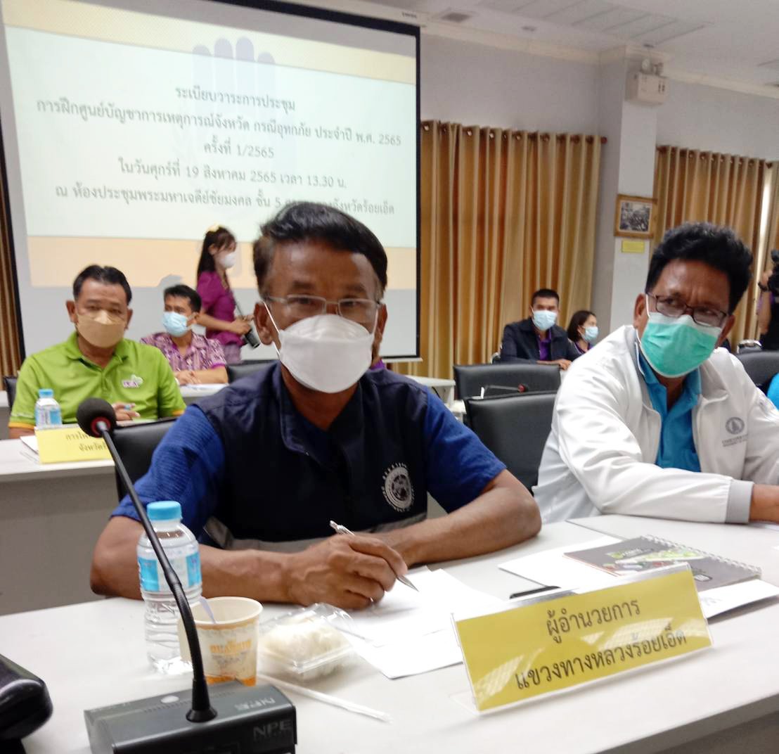 นายสถิต คำพิชิต รองผู้อำนวยการแขวงทางหลวงร้อยเอ็ด ฝ่ายปฏิบัติการ เข้าร่วมประชุมการฝึกศูนย์บัญชาการเหตุการณ์จังหวัด กรณีอุทกภัย ประจำปี พ.ศ. 2565 โดยมีนายภูสิต สมจิตต์ ผู้ว่าราชการจังหวัดร้อยเอ็ด เป็นประธานในการประชุม ณ ห้องประชุมเจดีย์ชัยมงคล ชั้น 5 ศาลากลางจังหวัดร้อยเอ็ด