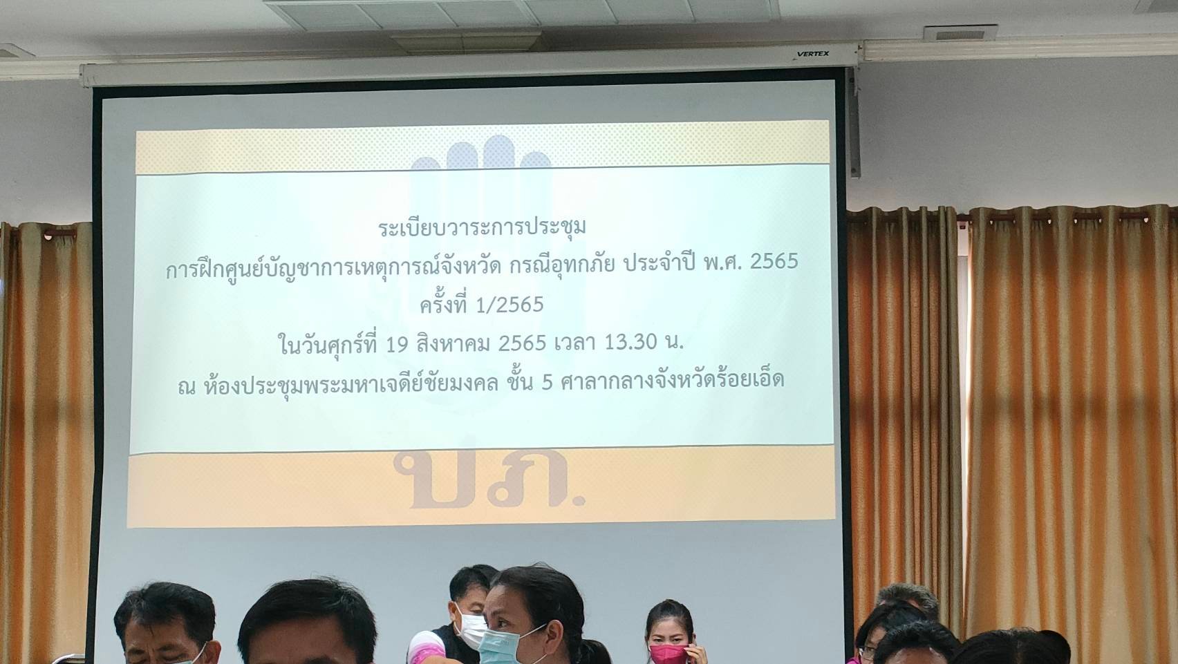 “ประชุมการฝึกศูนย์บัญชาการเหตุการณ์จังหวัด กรณีอุทกภัย ประจำปี พ.ศ. 2565”