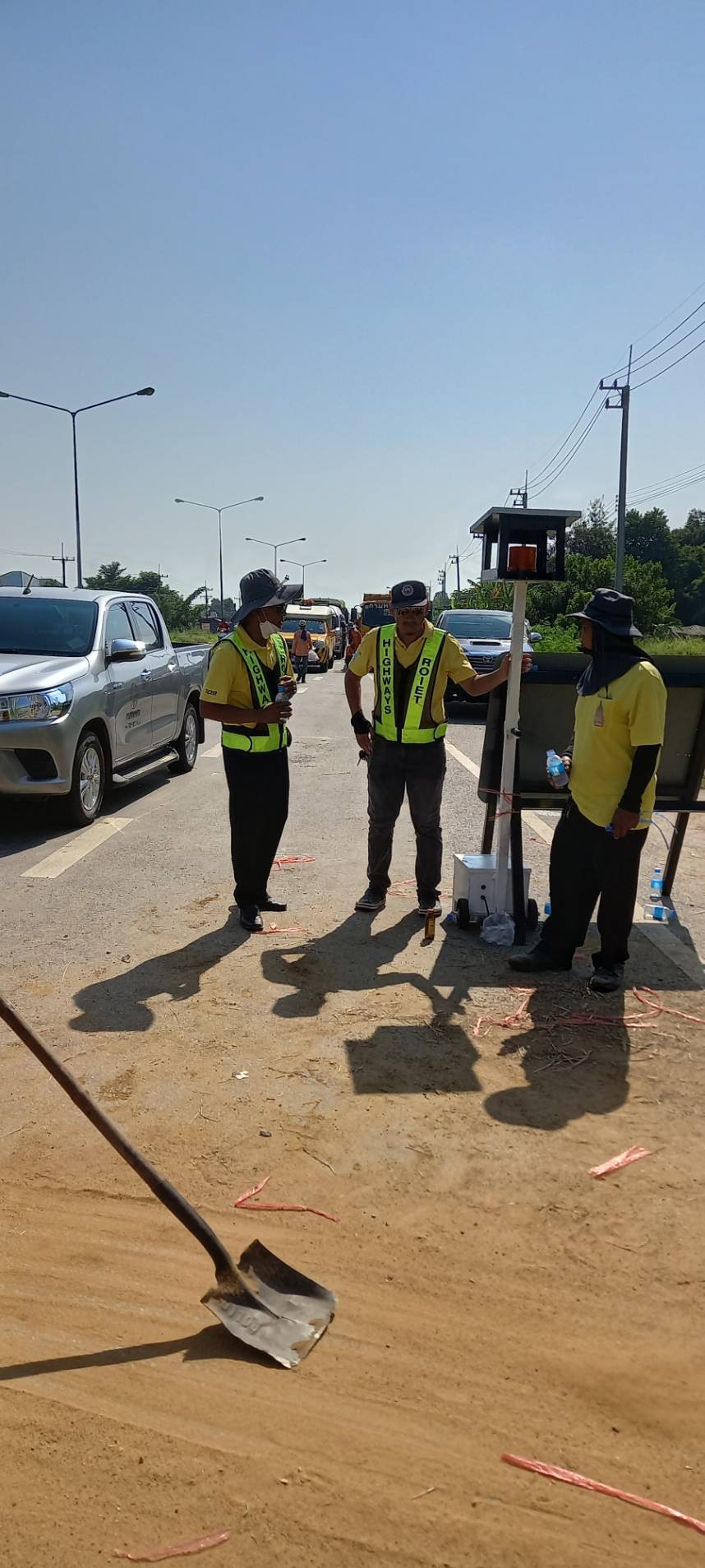 นายศราวุฒิ ภู่ชินาพันธ์ ผู้อำนวยการแขวงทางหลวงร้อยเอ็ด เร่งระดมเจ้าหน้าที่ทุกหมวดทางหลวงในสังกัดแขวงทางหลวงร้อยเอ็ด ร่วมบรรจุทรายลงกระสอบเพื่อทำแนวป้องกันน้ำท่วมผิวทาง ในทางหลวงหมายเลข 214 ตอน ลำชี - ร้อยเอ็ด ระหว่าง กม.29+600 - กม.29+900 ด้านขวาทาง