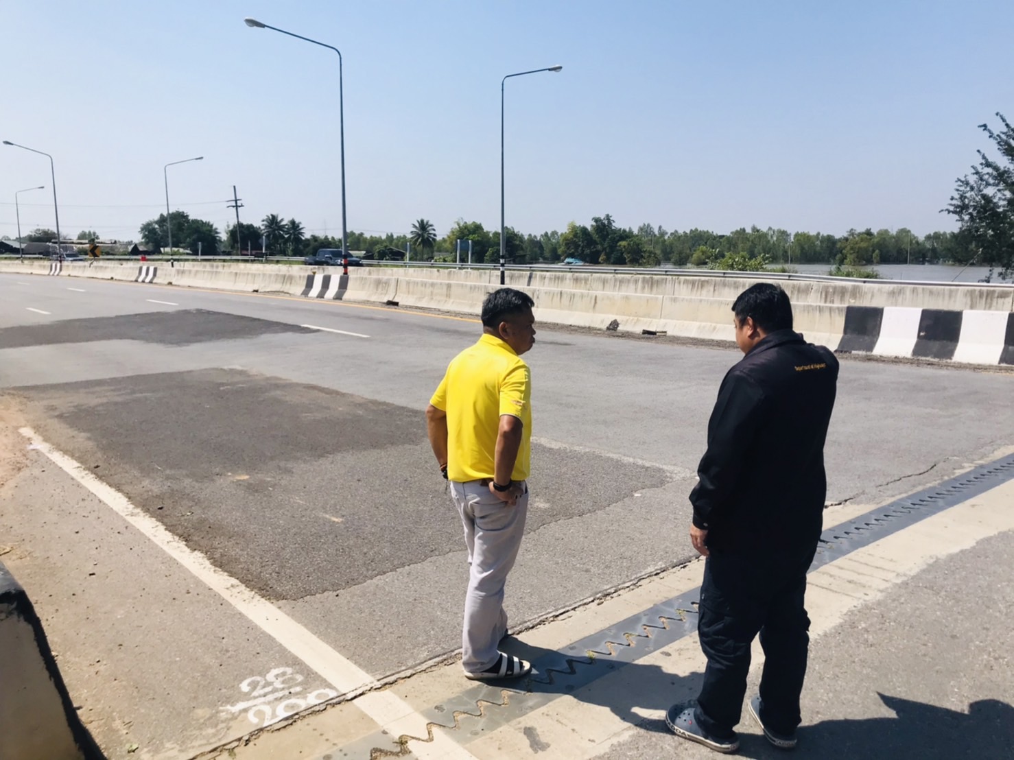 นายสมัย คะนะมะ รองผู้อำนวยการแขวงทางหลวงร้อยเอ็ด ฝ่ายวิศวกรรม พร้อมด้วยนายชัยธวัช ฉลวยศรี ผู้อำนวยการส่วนสำรวจและออกแบบ สำนักงานทางหลวงที่ 8 (มหาสารคาม) ,นายณัฐพล เยี่ยมชัยภูมิ หัวหน้าหมวดทางหลวงร้อยเอ็ด และตัวแทนผู้รับจ้าง บ.ทิพากร ลงพื้นที่ตรวจสอบคอสะพาน ในทางหลวงหมายเลข 214 ตอน ลำชี - ร้อยเอ็ด ที่กม.28+200 ในเบื้องต้นผู้รับจ้างเข้าปรับระดับคอสะพานทั้งสองฝั่ง(สี่จุด) เมื่อน้ำลดเข้าสู่สภาวะปกติ หน่วยงานที่เกี่ยวข้องจะเร่งสำรวจเพื่อแก้ไขและป้องกันปัญหาที่อาจเกิดขึ้นเป็นการเร่งด่วนต่อไป