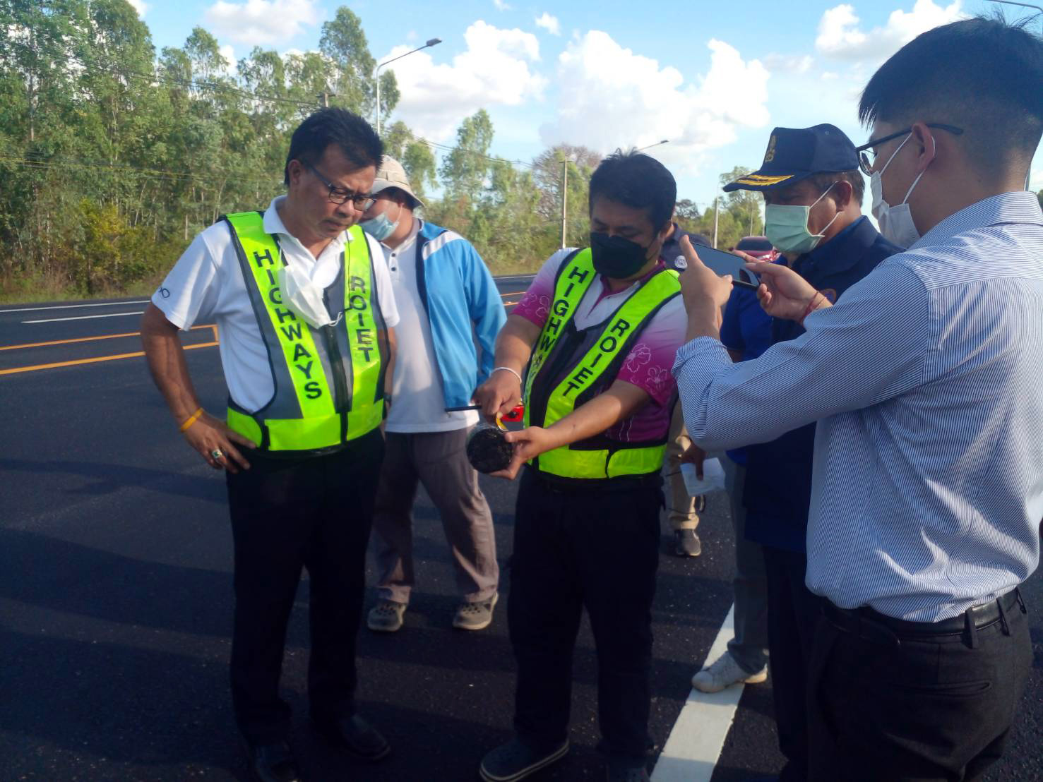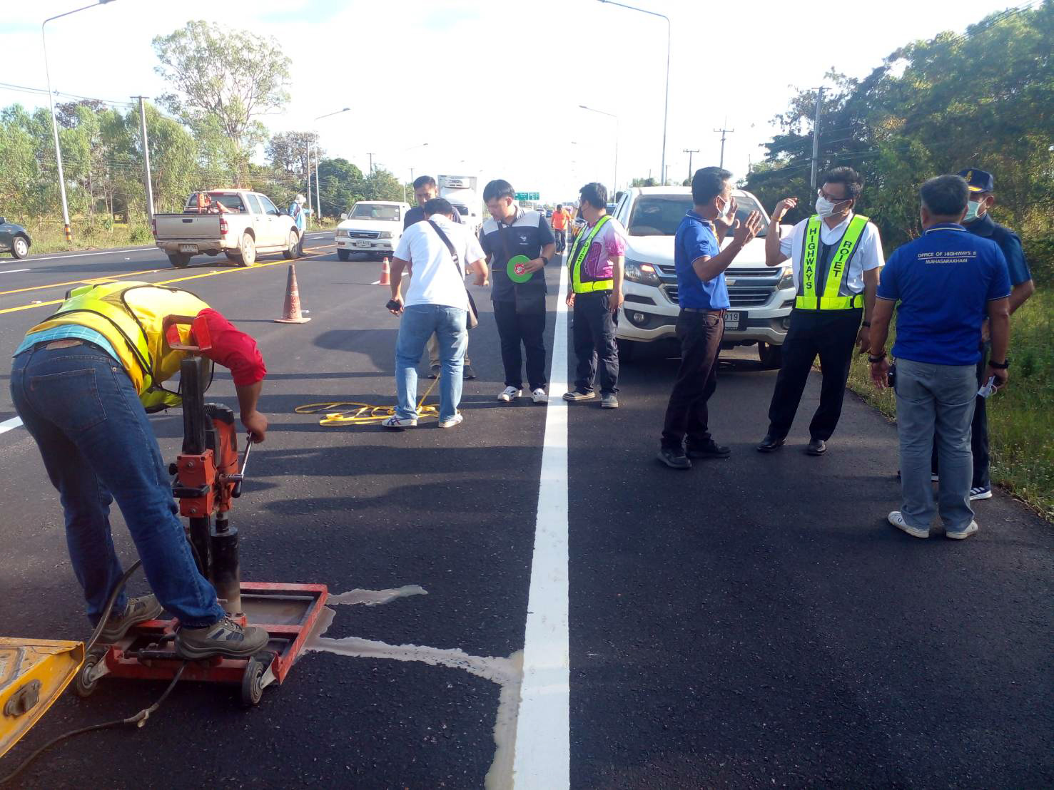 "ร่วมตรวจรับงานก่อสร้าง งานจ้างเหมาโครงการเพิ่มประสิทธิภาพและพัฒนาระบบจราจรเพื่อเพิ่มความปลอดภัยทางถนน จังหวัดร้อยเอ็ด ทล. 214 ตอน ลำชี - ร้อยเอ็ด ที่ กม.42+591 (บริเวณแยกบ้านบัว)"