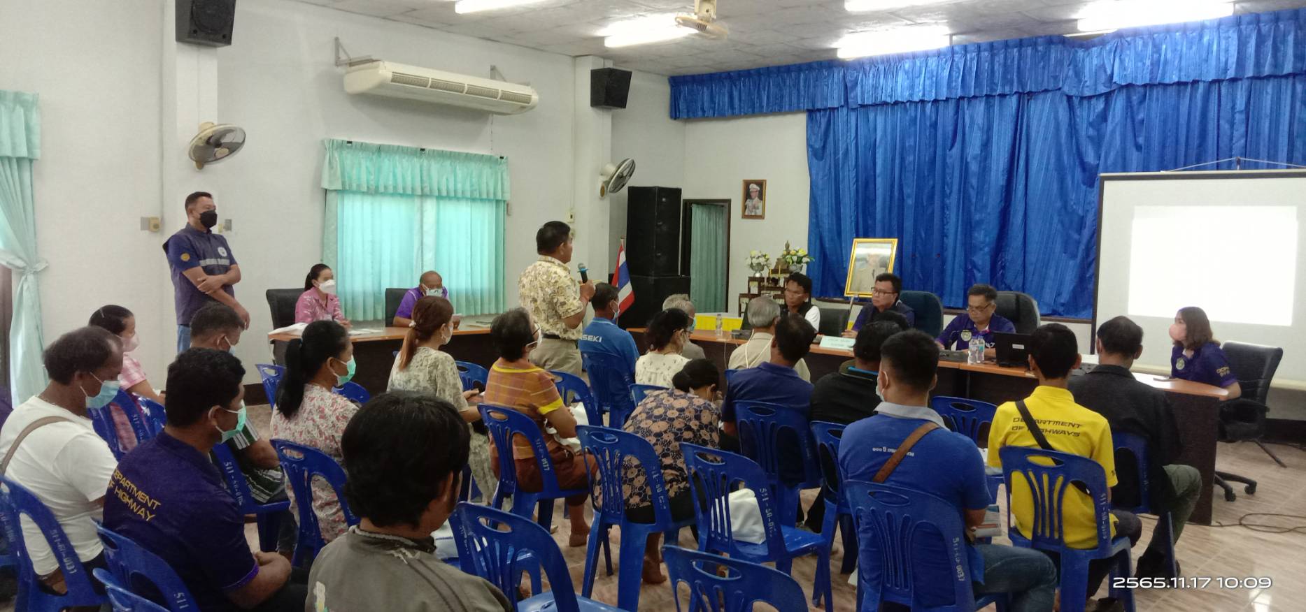 นายศราวุฒิ ภู่ชินาพันธ์ ผู้อำนวยการแขวงทางหลวงร้อยเอ็ด พร้อมด้วยคณะเจ้าหน้าที่แขวงทางหลวงร้อยเอ็ด และเจ้าหน้าที่จากส่วนสำรวจและออกแบบ สำนักงานทางหลวงที่ 8 (มหาสารคาม) ร่วมประชุมการมีส่วนร่วมของประชาชน เพื่อรับฟังความคิดเห็นของทุกภาคส่วน ในการดำเนินงานก่อสร้าง ในทางหลวงหมายเลข 2392 ตอน จตุรพักตรพิมาน – ปทุมรัตต์ ระหว่าง กม.35+000 - กม.37+150 และในทางหลวงหมายเลข 2043 ตอน ร้อยเอ็ด - ยางเฌอ ระหว่าง กม.2+430 - กม.3+350 ณ ห้องประชุมองค์การบริหารส่วนตำบลบัวแดง ตำบลบัวแดง อำเภอปทุมรัตต์ และศาลาการเปรียญวัดหนองหญ้าม้า ตำบลในเมือง อำเภอเมือง จังหวัดร้อยเอ็ด