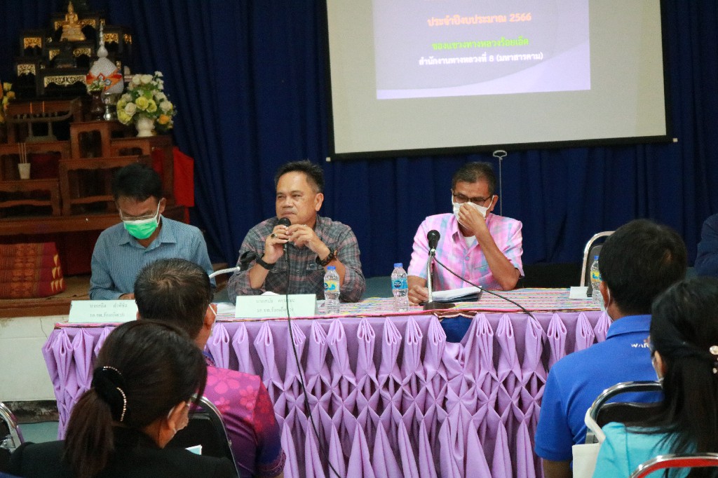 นายสมัย คะนะมะ รองผู้อำนวยการแขวงทางหลวงร้อยเอ็ด ฝ่ายวิศวกรรม ,นายสถิต คำพิชิต รองผู้อำนวยการแขวงทางหลวงร้อยเอ็ด ฝ่ายปฏิบัติการ พร้อมด้วยคณะเจ้าหน้าที่แขวงทางหลวงร้อยเอ็ด และเจ้าหน้าที่จากส่วนสำรวจและออกแบบ สำนักงานทางหลวงที่ 8 (มหาสารคาม) ร่วมประชุมการมีส่วนร่วมของประชาชน เพื่อรับฟังความคิดเห็นของทุกภาคส่วน ในการดำเนินงานก่อสร้าง ในทางหลวงหมายเลข 2116 ตอน ร่องคำ – โพนทอง ระหว่าง กม.35+100 - กม.66+800 และระหว่าง กม.70+830 - กม.71+400 ณ ห้องประชุมเทศบาลตำบลโพธิ์ทอง ตำบลโพธิ์ทอง อำเภอโพนทอง และ หอประชุมโรงเรียนโพนทองวิทยา ตำบลสระนกแก้ว อำเภอโพนทอง จังหวัดร้อยเอ็ด