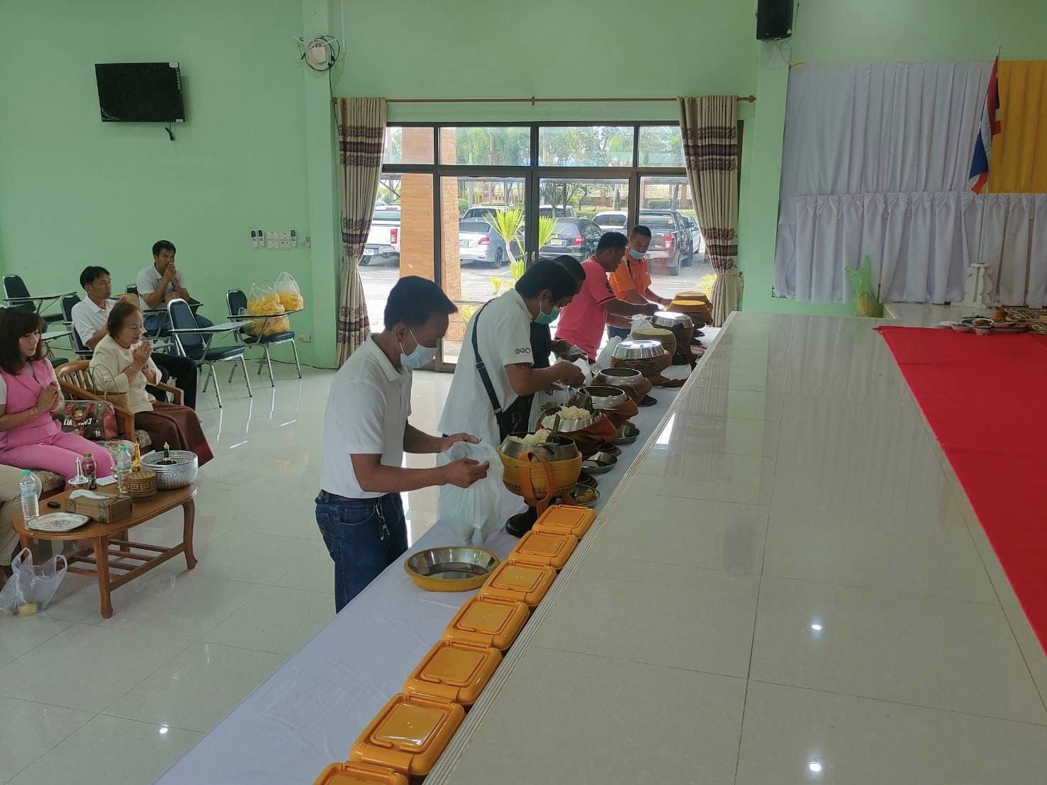 "ร่วมทำบุญถวายภัตตาหารเช้า แด่พระภิกษุสงฆ์ จำนวน 9 รูป เพื่อความเป็นศิริมงคล เนื่องในโอกาสเข้ารับตำแหน่งใหม่"