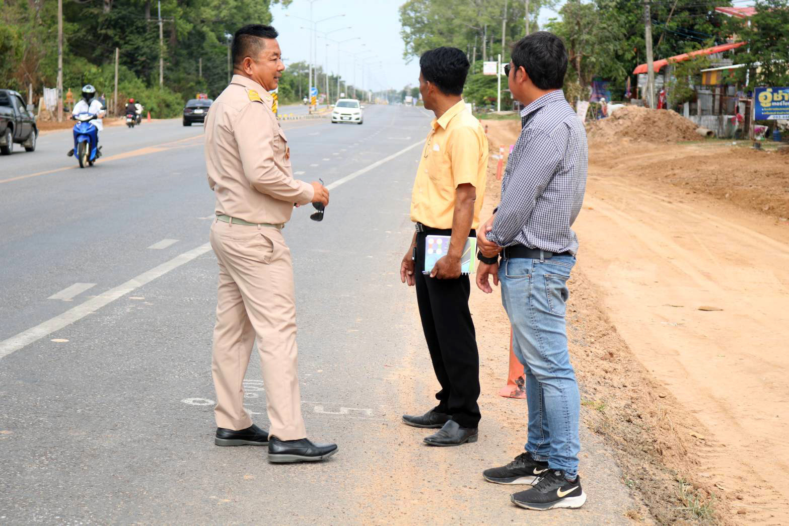 นายมงคล แสนวงษา ผู้อำนวยการแขวงทางหลวงร้อยเอ็ด พร้อมด้วยนายสถิต คำพิชิต รองผู้อำนวยการแขวงทางหลวงร้อยเอ็ด ฝ่ายปฏิบัติการ ร่วมลงพื้นที่ตรวจสอบความคืบหน้างานก่อสร้างทาง โครงการก่อสร้างขนาดใหญ่ ในทางหลวงหมายเลข 215 สาย ร้อยเอ็ด - สุวรรณภูมิ ตอน ร้อยเอ็ด - บ.หนองเม็ก ระหว่าง กม. 4+800 - กม.17+160 และ กม.22+000 - กม.24+040 เพื่อเตรียมความพร้อมในการติดตั้งอุปกรณ์อำนวยสะดวกปลอดภัยให้กับผู้เส้นทาง ช่วงเทศกาลปีใหม่ 2566