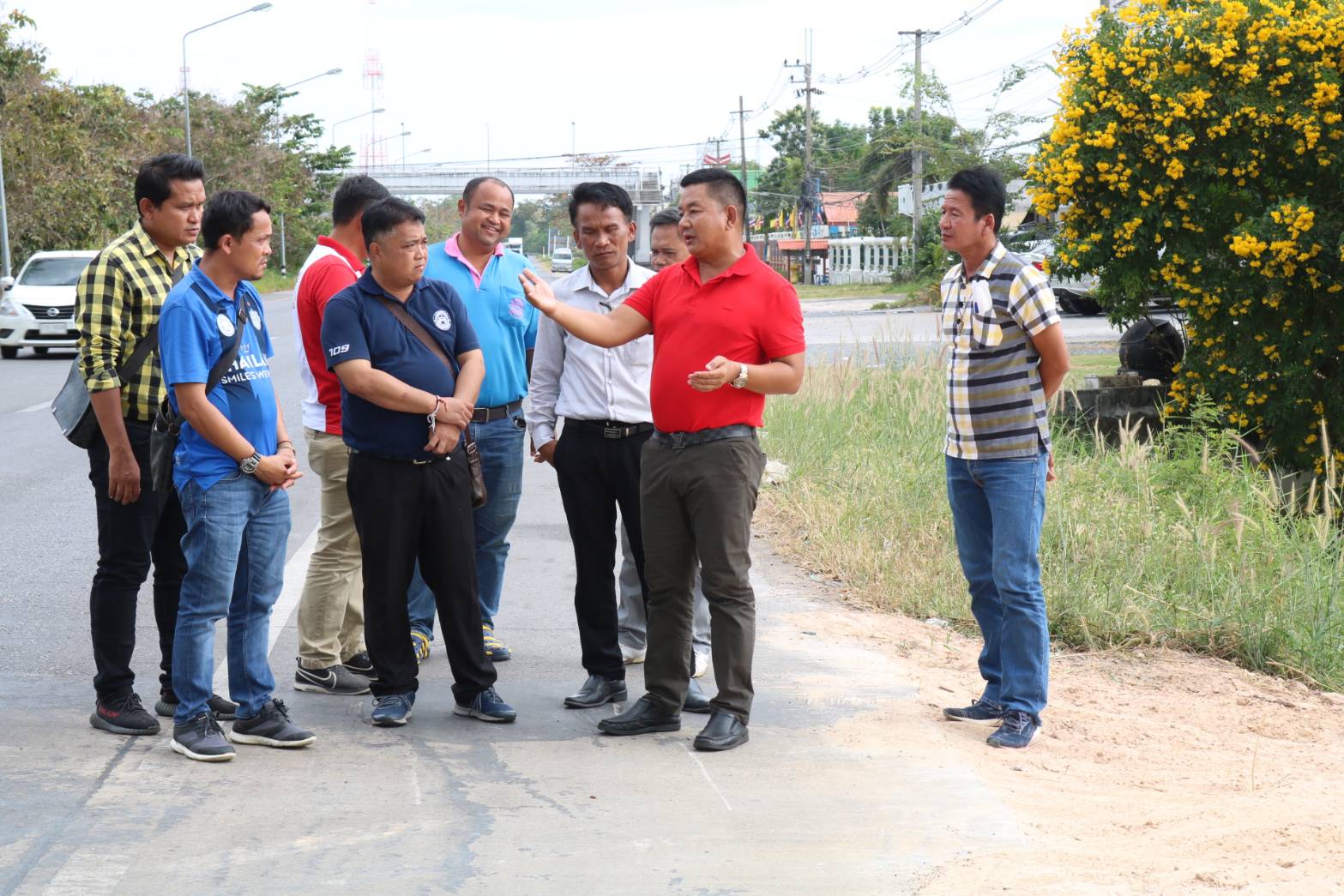 นายมงคล แสนวงษา ผู้อำนวยการแขวงทางหลวงร้อยเอ็ด พร้อมด้วยนายสมัย คะนะมะ รองผู้อำนวยการแขวงทางหลวงร้อยอ็ด ฝ่ายวิศวกรรม ,นายสถิต คำพิชิต รองผู้อำนวยการแขวงทางหลวงร้อยเอ็ด ฝ่ายปฏิบัติการ และหัวหน้าหมวดทางหลวงในสังกัด ร่วมลงพื้นที่ตรวจสอบระบบระบายน้ำในเขตทางหลวง ในทางหลวงหมายเลข 232 ตอน ถนนวงแหวนรอบเมืองร้อยเอ็ด ระหว่าง กม.20+100 - กม.20+900 (บริเวณแยกบายพาสสุวรรณภูมิ)