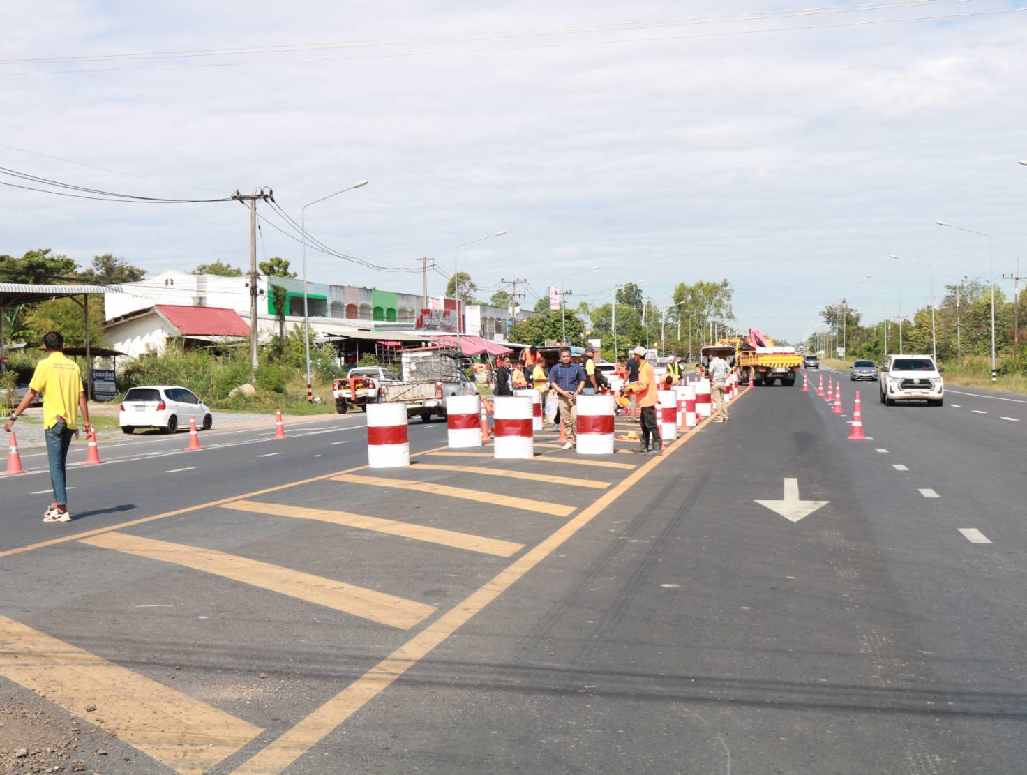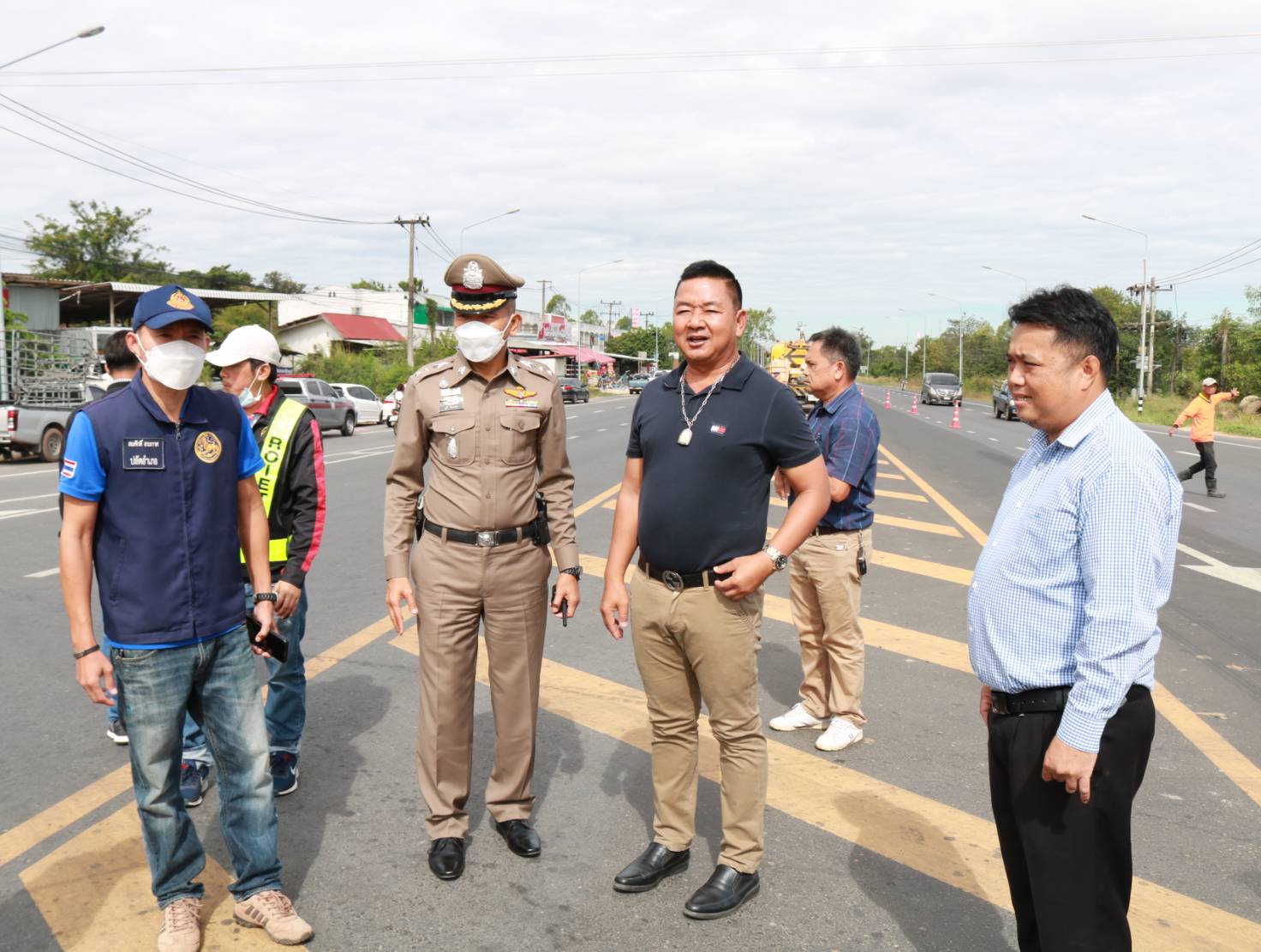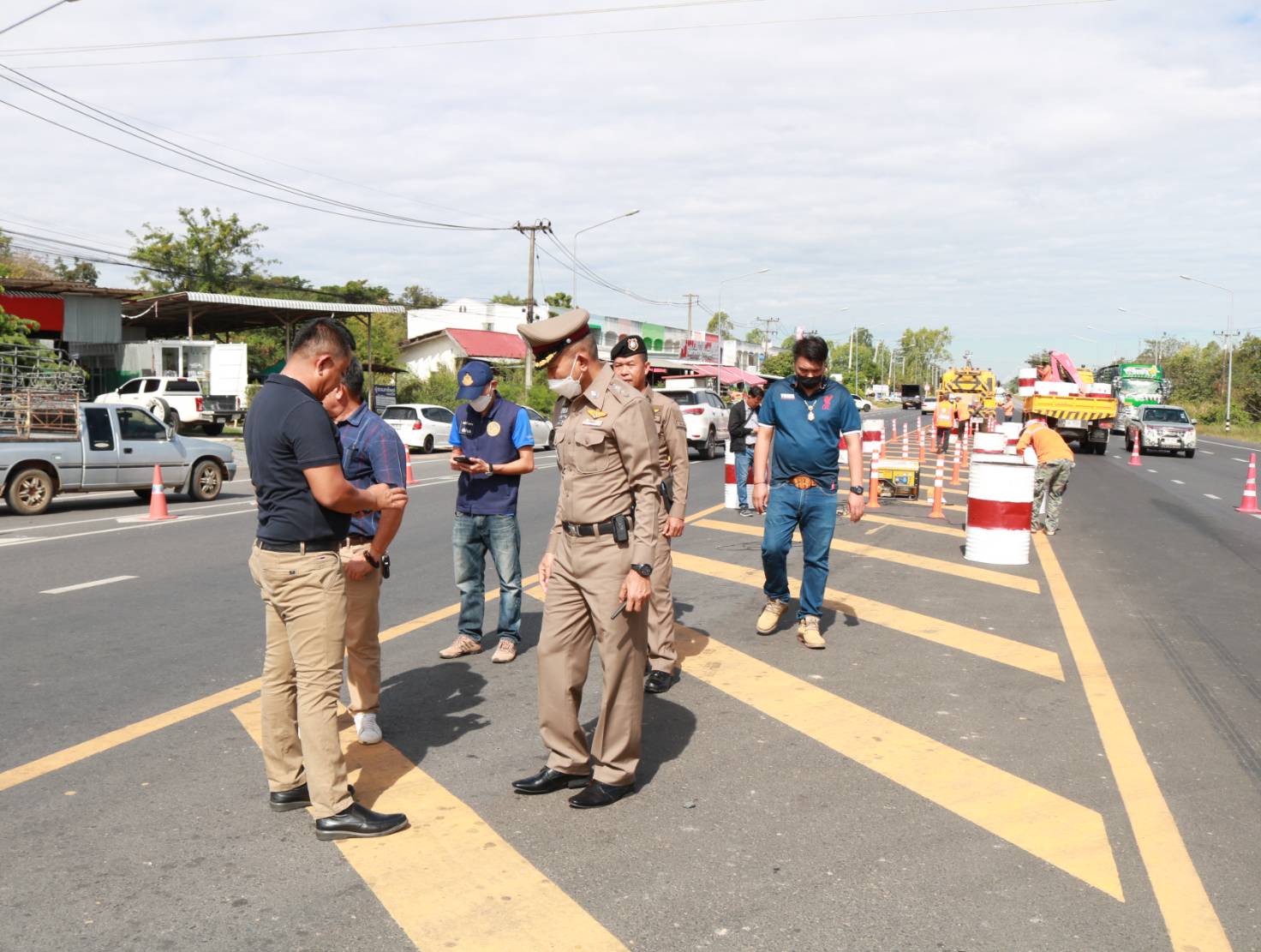 "ร่วมลงพื้นที่สำรวจและวางแผนปรับปรุงจุดเสี่ยงเพื่อทำวงเวียนชั่วคราว ทล.214 ตอน ลำชี - ร้อยเอ็ด ที่กม.37+625 (สามแยกเข้าอำเภอจังหาร)"
