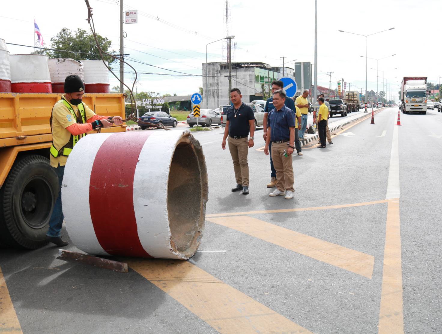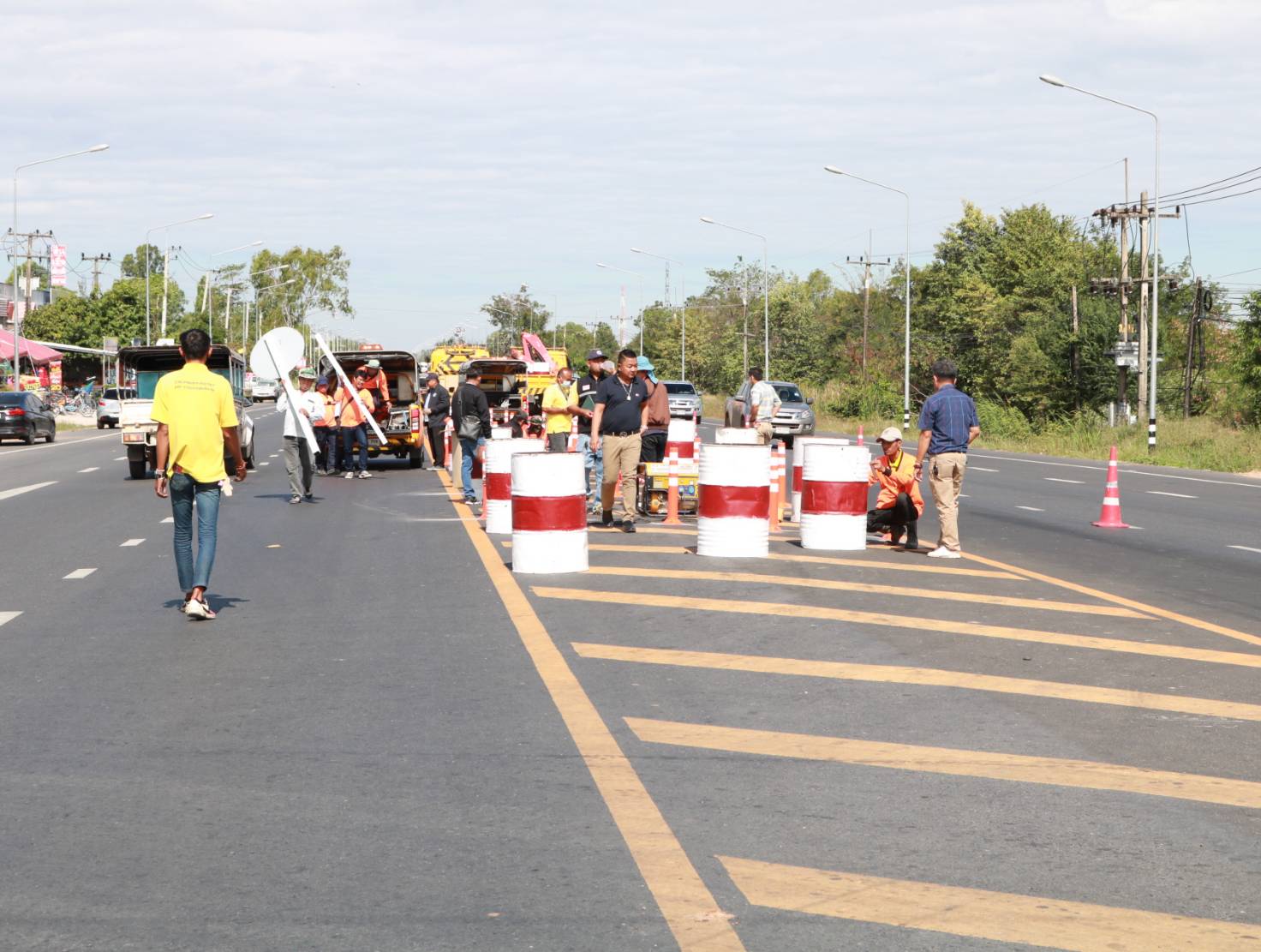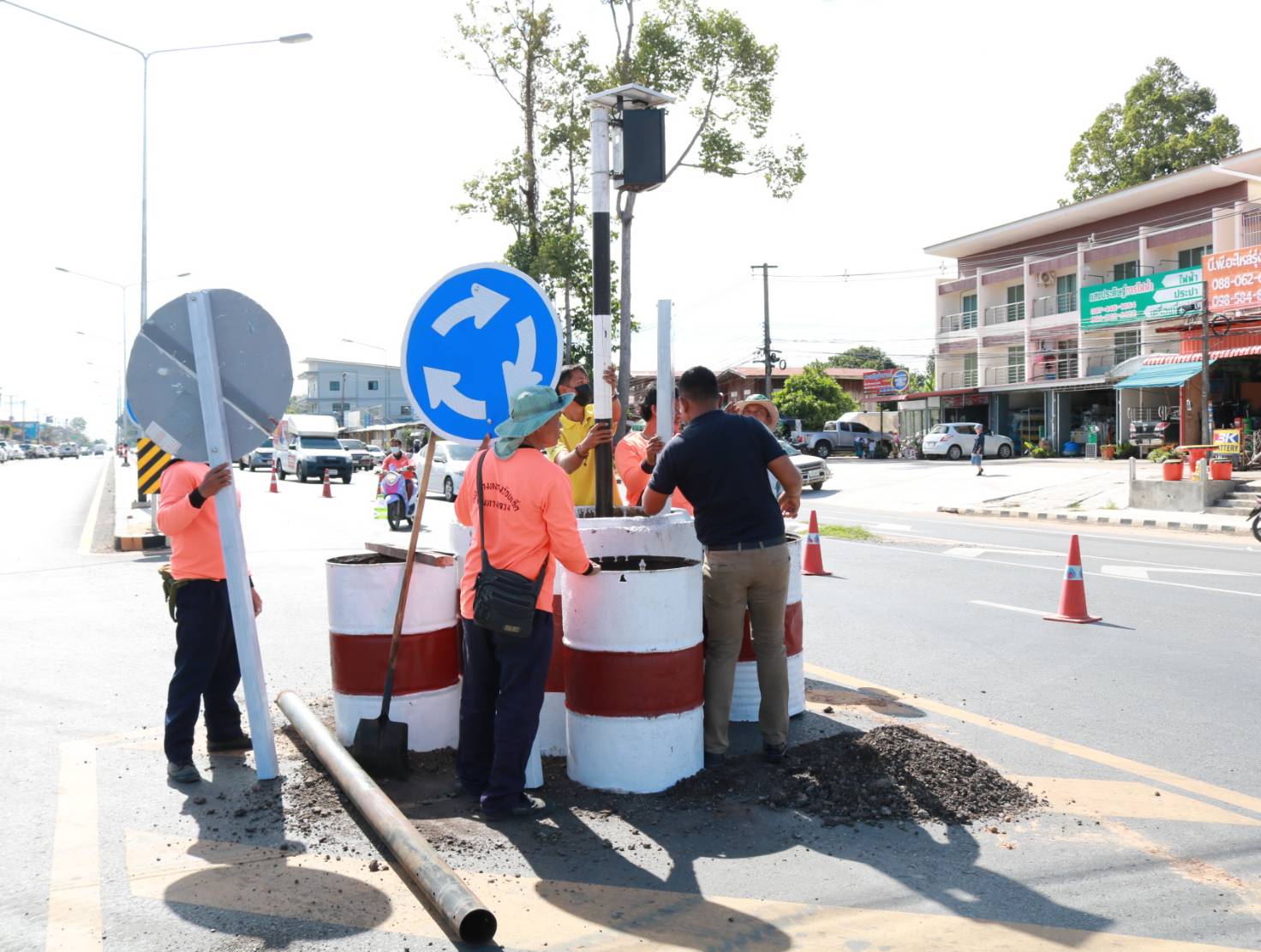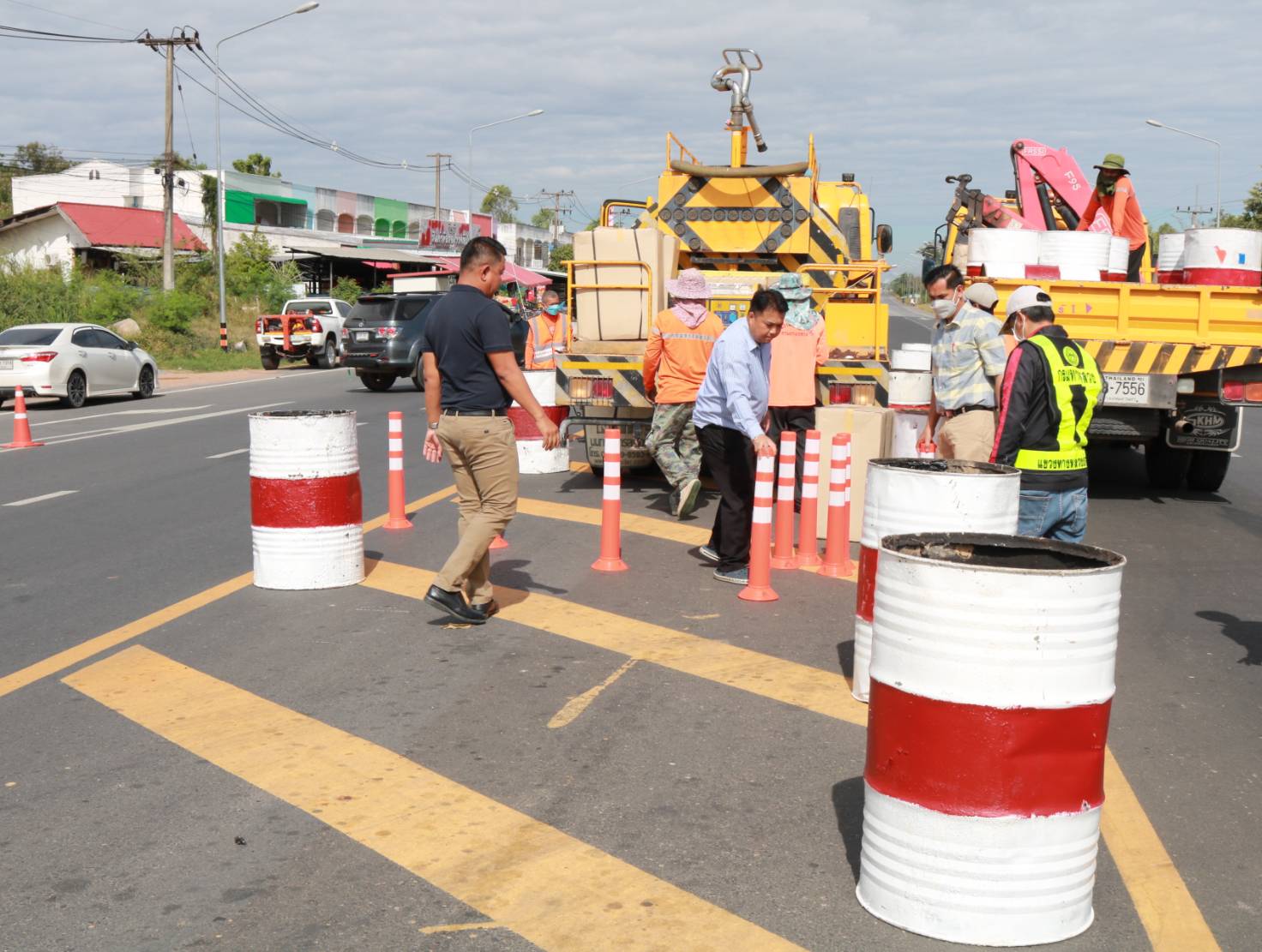 นายมงคล แสนวงษา ผู้อำนวยการแขวงทางหลวงร้อยเอ็ด พร้อมด้วยพ.ต.อ.ภูมี อีคะละ ผกก.สภ.จังหาร ,นายสมัย คะนะมะ รองผู้อำนวยการแขวงทางหลวงร้อยเอ็ด ฝ่ายวิศวกรรม ,นายณัฐพล เยี่ยมชัยภูมิ หัวหน้าหมวดทางหลวงร้อยเอ็ด ,นายพิทักษ์ ทาตะนาม หัวหน้าหมวดทางหลวงเกษตรวิสัย ,ว่าที่ รต.ธีระศักดิ์ ไค่นุ่นโพธิ์ หัวหน้าหมวดทางหลวงเสลภูมิและนายศุภพรชัย ขามรัตน์ หัวหน้าหมวดทางหลวงเมืองสรวง ร่วมลงพื้นที่สำรวจและวางแผนปรับปรุงจุดเสี่ยงเพื่อทำวงเวียนชั่วคราว ในทางหลวงหมายเลข 214 ตอน ลำชี - ร้อยเอ็ด ที่กม.37+625 (สามแยกเข้าอำเภอจังหาร) เพื่อความสะดวกและปลอดภัยแก่ผู้ใช้ทาง