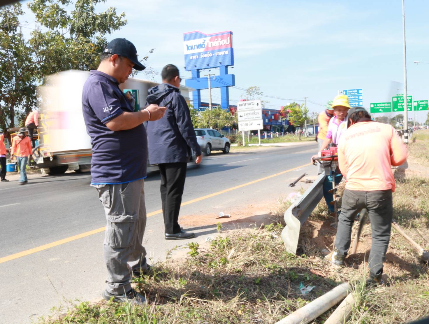 นายมงคล แสนวงษา ผู้อำนวยการแขวงทางหลวงร้อยเอ็ด พร้อมด้วยนายณัฐพล เยี่ยมชัยภูมิ หัวหน้าหมวดทางหลวงร้อยเอ็ด ร่วมลงพื้นที่ตรวจสอบแนะนำการปฏิบัติงานการปรับปรุงจุดเสี่ยง/จุดอันตรายจากทางลักข้ามจุดกลับรถเถื่อน “แนะนำการติดตั้งราวกันอันตราย Guard Rail อย่างมีประสิทธิภาพ” ในทางหลวงหมายเลข 232 ตอน ถนนวงแหวนรอบเมืองร้อยเอ็ด ด้านทิศใต้ ที่กม.22+050 (บริเวณจุดกลับรถเถื่อน หัวเกาะสี่แยกจตุรพักตรพิมาน) เพื่อความปลอดภัยของผู้ใช้ทาง