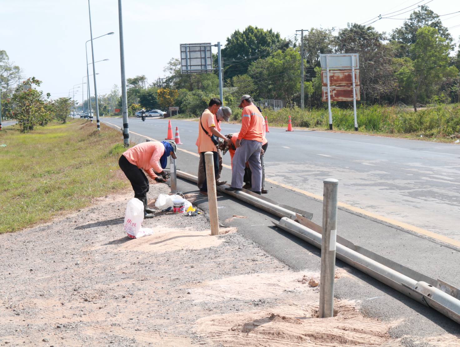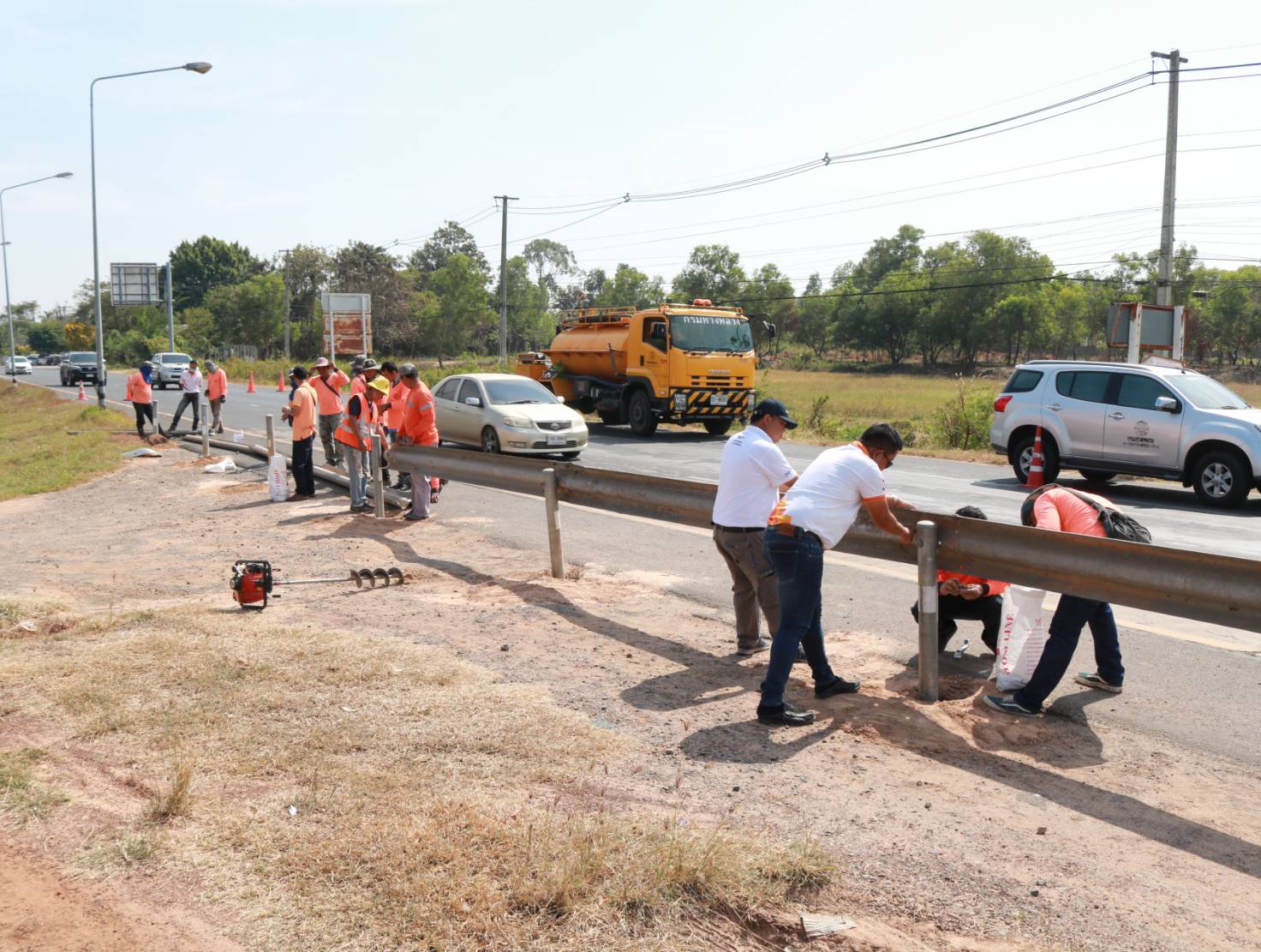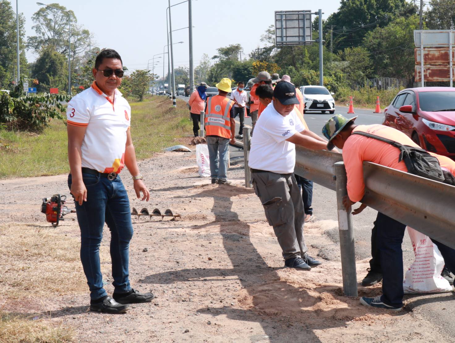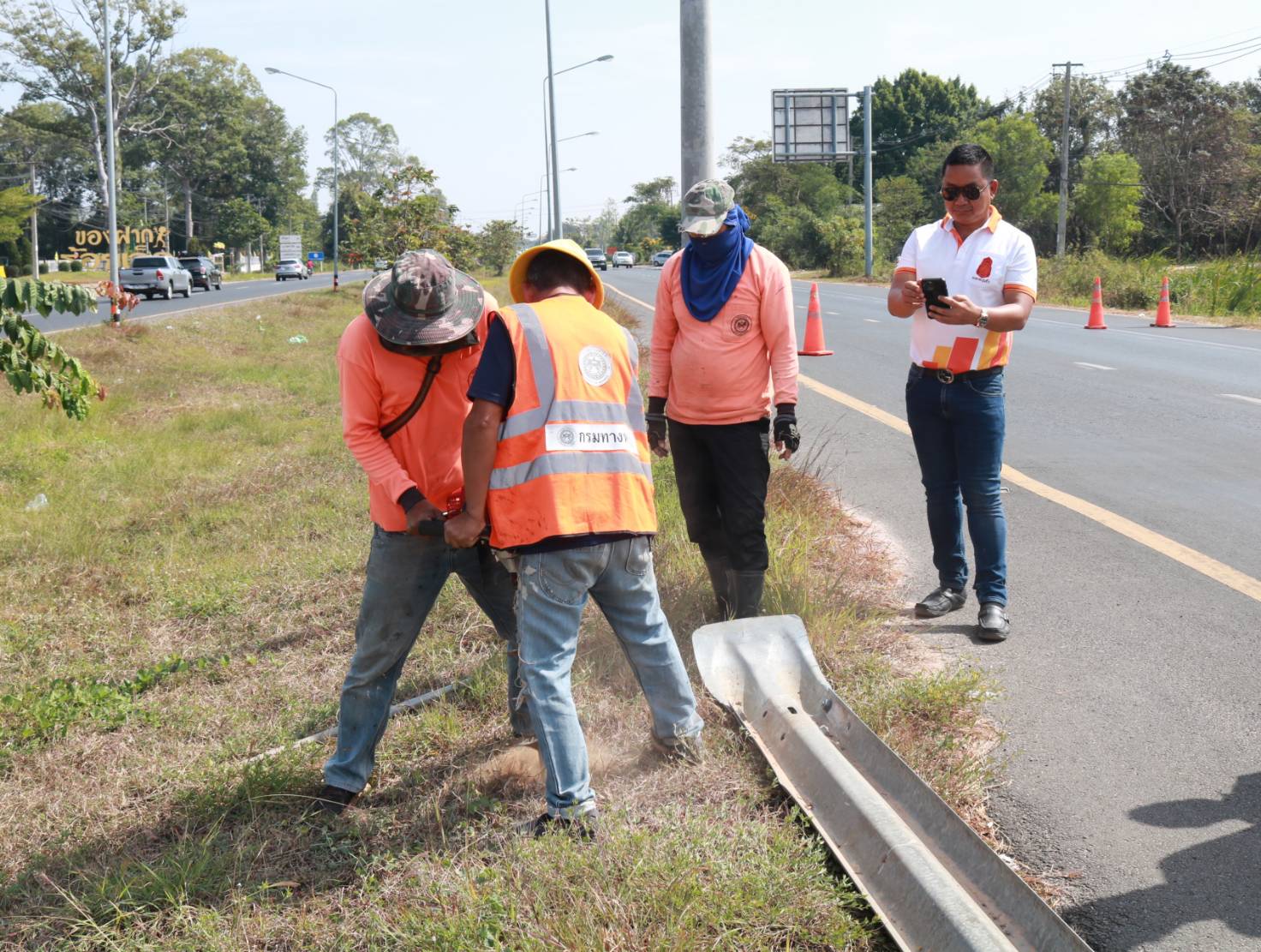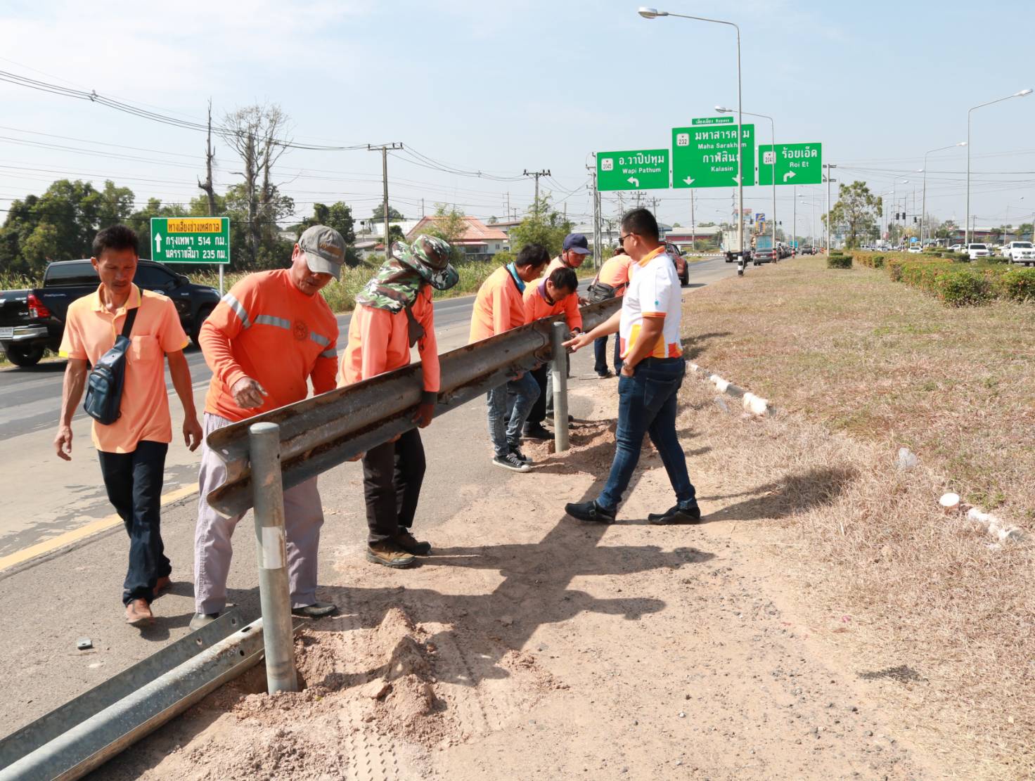 นายมงคล แสนวงษา ผู้อำนวยการแขวงทางหลวงร้อยเอ็ด พร้อมด้วยนายณัฐพล เยี่ยมชัยภูมิ หัวหน้าหมวดทางหลวงร้อยเอ็ด ร่วมลงพื้นที่ตรวจสอบแนะนำการปฏิบัติงานการปรับปรุงจุดเสี่ยง/จุดอันตรายจากทางลักข้ามจุดกลับรถเถื่อน “แนะนำการติดตั้งราวกันอันตราย Guard Rail อย่างมีประสิทธิภาพ” ในทางหลวงหมายเลข 232 ตอน ถนนวงแหวนรอบเมืองร้อยเอ็ด ด้านทิศใต้ ที่กม.23+300 (บริเวณจุดกลับรถเถื่อน หัวเกาะสี่แยกวาปีปทุม) เพื่อความปลอดภัยของผู้ใช้ทาง