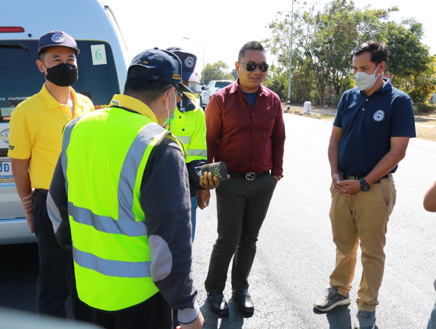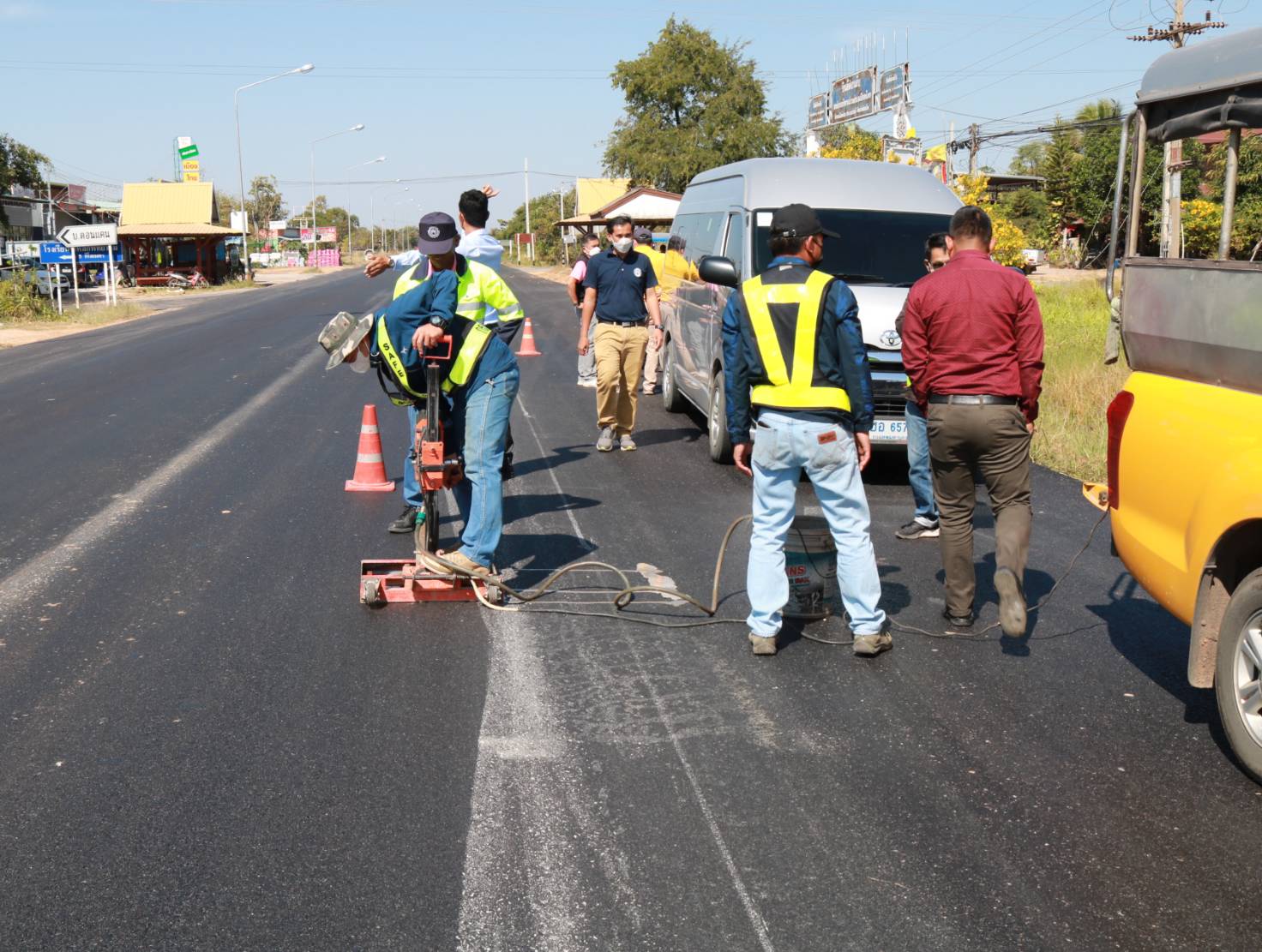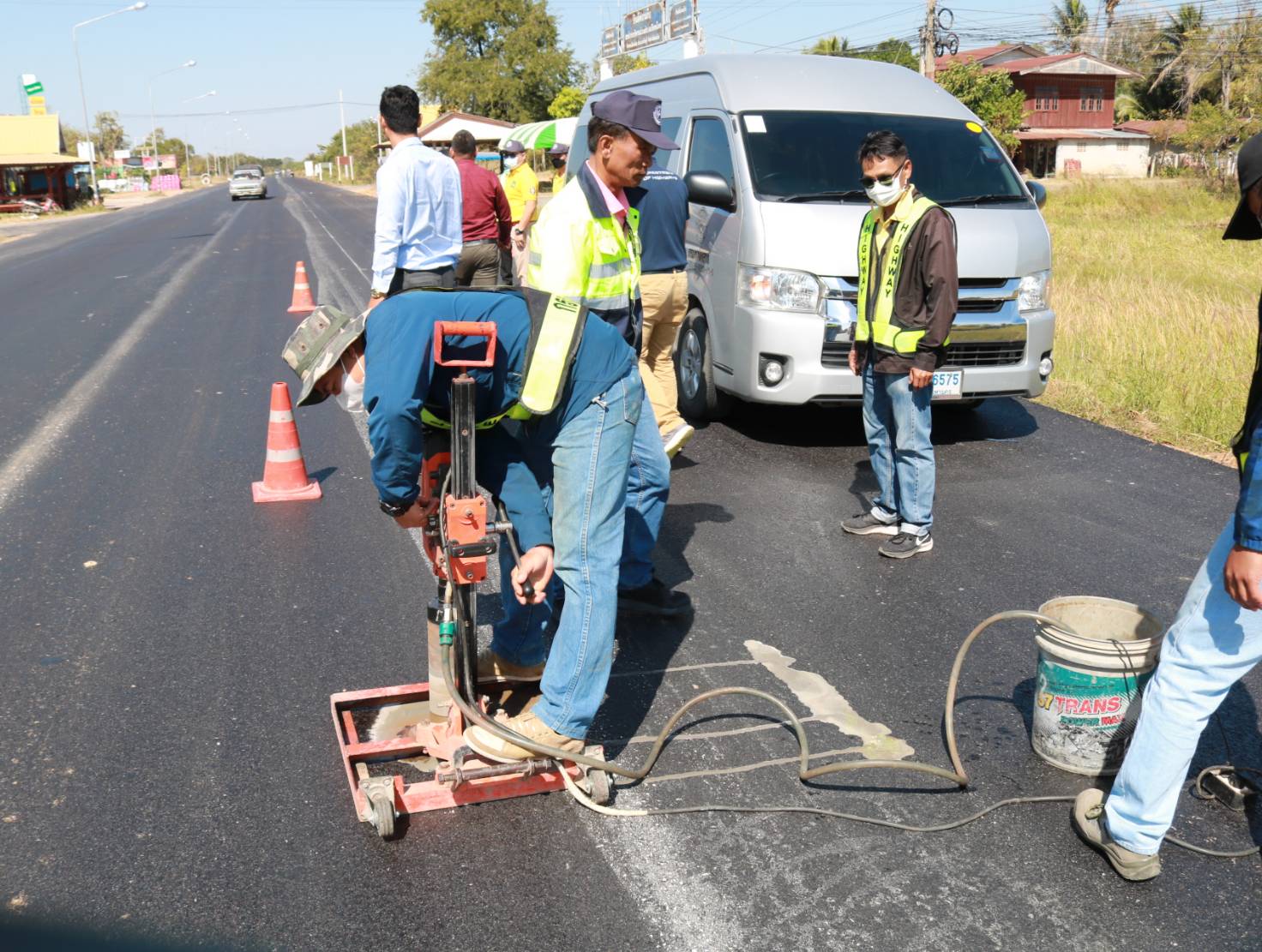 "ร่วมตรวจงานก่อสร้าง ตามสัญญาเลขที่ รอ.13/2566 งานเสริมผิวแอสฟัลต์คอนกรีต ทล.2043 ตอน ร้อยเอ็ด - ยางเฌอ ระหว่าง กม.12+180 - กม.15+020"