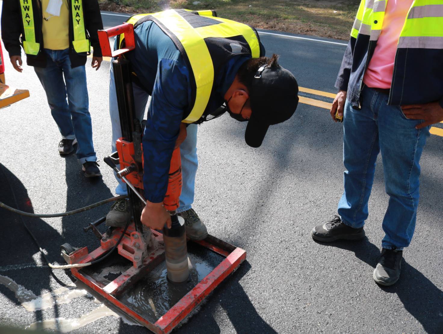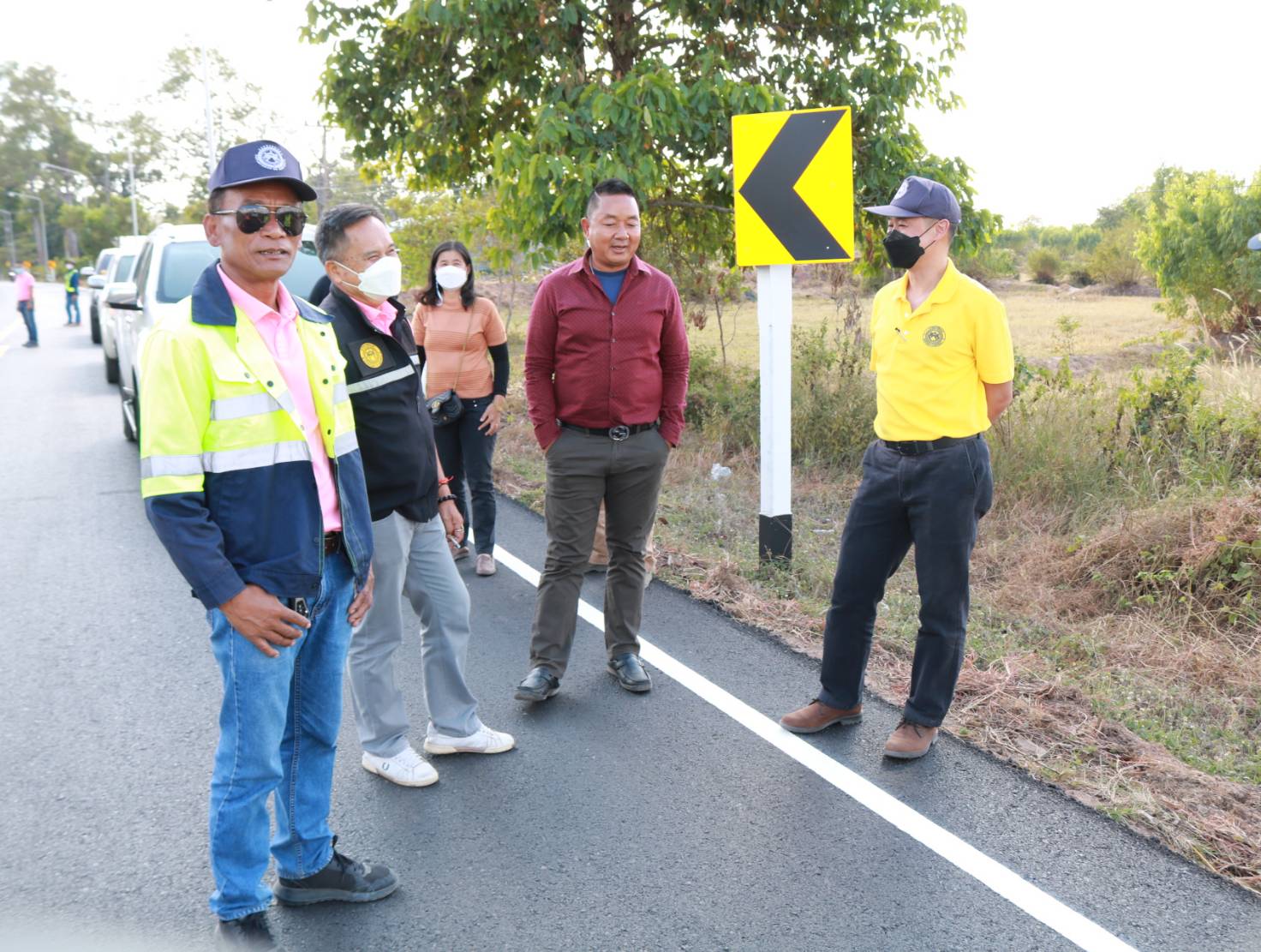 นายชาญพินิจ พินิจศักดิ์ รองผู้อำนวยการสำนักงานทางหลวงที่ 8 (มหาสารคาม) ประธานกรรมการตรวจรับพัสดุ ,นายมงคล แสนวงษา ผู้อำนวยการแขวงทางหลวงร้อยเอ็ด พร้อมด้วยคณะกรรมการฯ ร่วมตรวจงานก่อสร้าง ตามสัญญาเลขที่ รอ.8/2566 ลงวันที่ 4 พฤศจิกายน 2565 งานเสริมผิวแอสฟัลต์คอนกรีต ในทางหลวงหมายเลข 214 ตอน จตุรพักตรพิมาน - ห้วยพลับพลา ระหว่าง กม.100+000 - กม.104+020 โดยมีห้างหุ้นส่วนจำกัด อึ้งสุวรรณ เป็นผู้รับจ้าง