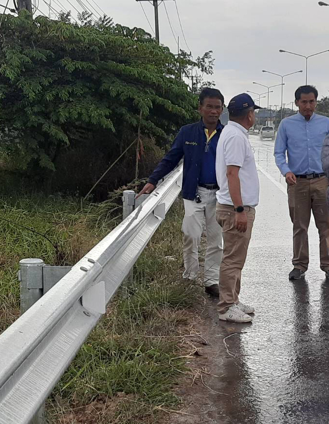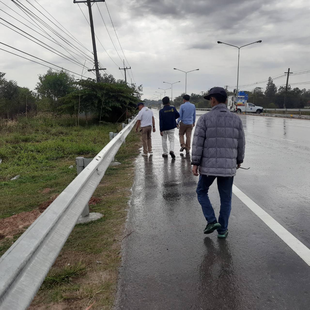นายสมัย คะนะมะ รองผู้อำนวยการแขวงทางหลวงร้อยเอ็ด ฝ่ายวิศวกรรม ,นายสถิต คำพิชิต รองผู้อำนวยการแขวงทางหลวงร้อยเอ็ด ฝ่ายปฏิบัติการ ,นายสุวิท ปัดมะฤทธิ์ หัวหน้างานอำนวยความปลอดภัย และนายศุภพรชัย ขามรัตน์ หัวหน้าหมวดทางหลวงเมืองสรวง ร่วมตรวจงานก่อสร้าง ตามสัญญาเลขที่ รอ.25/2566 ลงวันที่ 9 ธันวาคม 2565 งานอำนวยความปลอดภัยเพื่อป้องกันและแก้ไขอุบัติเหตุ ในทางหลวงหมายเลข 215 ตอน ร้อยเอ็ด - สุวรรณภูมิ (ตอน 1) ระหว่าง กม.3+182 - กม.3+400 โดยมีบริษัท ดีเอสเอ ทราฟฟิคคอมมูนิเคชั่นส์ จำกัด เป็นผู้รับจ้าง
