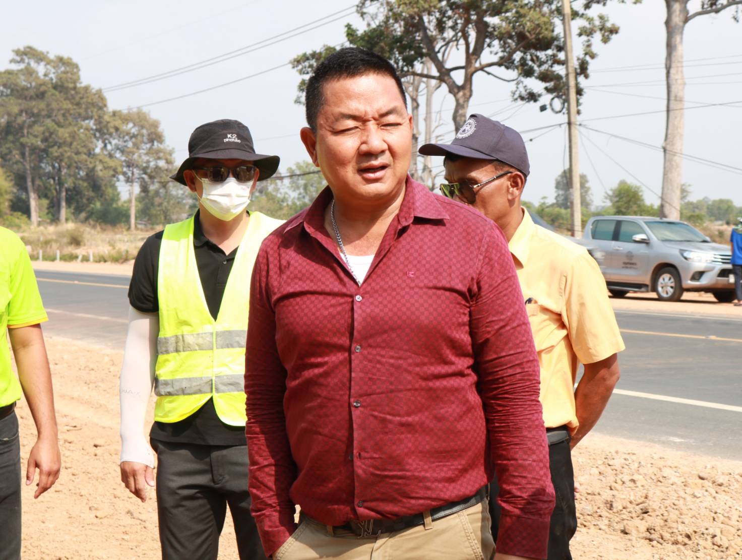 นายมงคล แสนวงษา ผู้อำนวยการแขวงทางหลวงร้อยเอ็ด พร้อมด้วยนายสมัย คะนะมะ รองผู้อำนวยการแขวงทางหลวงร้อยเอ็ด ฝ่ายวิศวกรรม ,นายสถิต คำพิชิต รองผู้อำนวยการแขวงทางหลวงร้อยเอ็ด ฝ่ายปฏิบัติการ และนายสุพรรณ ปากวิเศษ หัวหน้าหมวดทางหลวงจตุรพักตรพิมาน ร่วมลงพื้นที่ตรวจสอบแนะนำการปฏิบัติงาน การควบคุมงานก่อสร้าง วิธีการตรวจสอบคุณสมบัติวัสดุเบื้องต้น งานวัสดุมวลรวมชั้นรองพื้นทาง “ลูกรัง ” เพื่อประสิทธิภาพ และคุณภาพการปฏิบัติงาน ตามสัญญาเลขที่ รอ.14/2566 ลงวันที่ 8 พฤศจิกายน 2565 ในทางหลวงหมายเลข 2045 ตอน ร้อยเอ็ด - หนองคูโคก ระหว่าง กม.7+900 – กม.9+600
