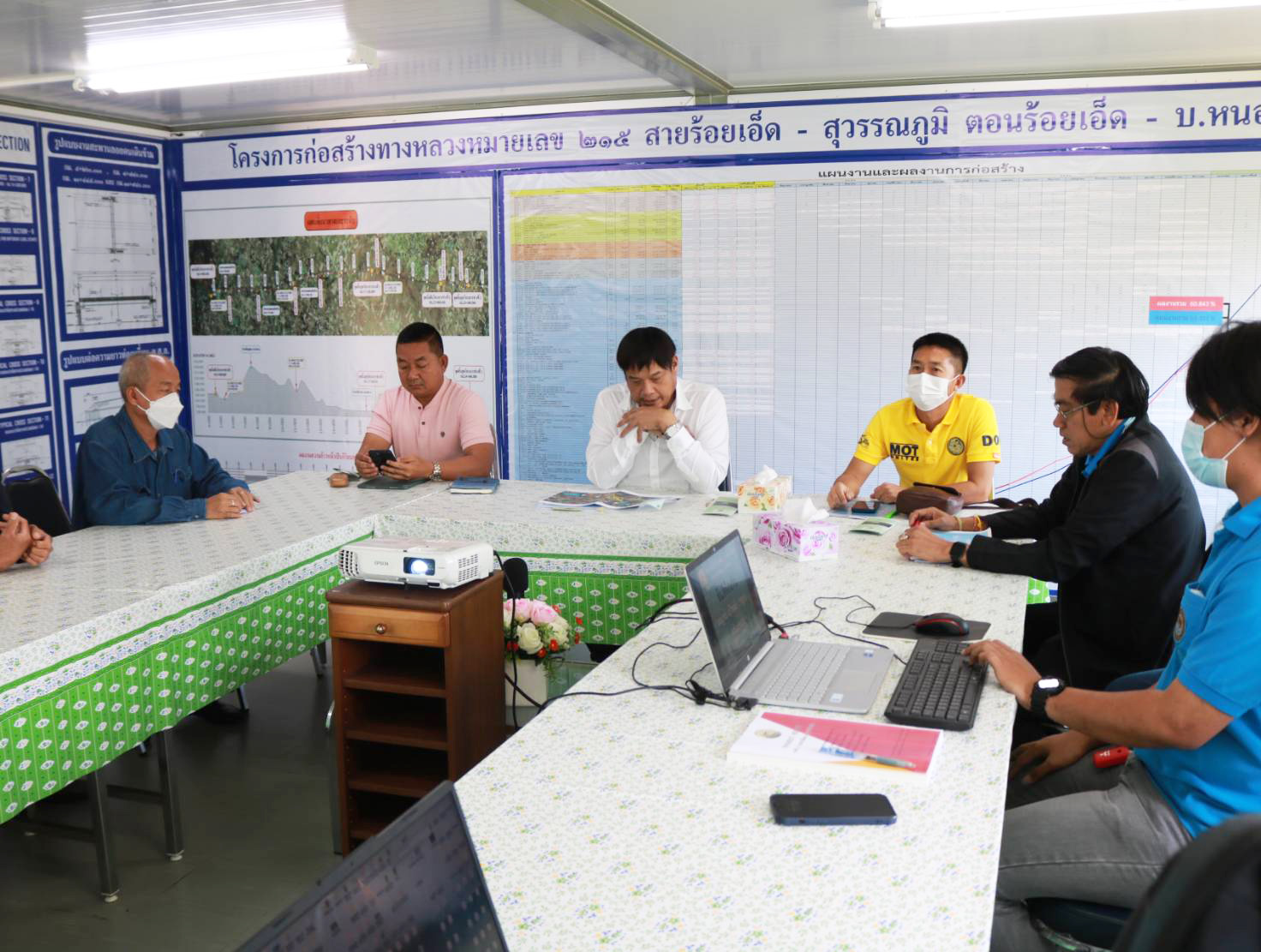นายสมบูรณ์ แก้วลมัย วิศวกรใหญ่ด้านบำรุงรักษา กรมทางหลวง ,นายชัยธวัช พรหมวิชัย ผู้อำนวยการสำนักงานทางหลวงที่ 8 (มหาสารคาม) ,นายมงคล แสนวงษา ผู้อำนวยการแขวงทางหลวงร้อยเอ็ด และนายศักดิพงษ์ ธีรเนตร ผู้อำนวยการแขวงทางหลวงยโสธร เข้าร่วมติดตามและให้การต้อนรับเข้าตรวจติดตามผลการปฏิบัติงาน ปัญหาและอุปสรรคในการดำเนินการโครงการก่อสร้างขนาดใหญ่ในพื้นที่จังหวัดร้อยเอ็ดในเขตควบคุมของแขวงทางหลวงร้อยเอ็ดและแขวงทางหลวงยโสธร ณ สำนักงานโครงการก่อสร้างทางหลวงหมายเลข 215 สาย ร้อยเอ็ด - สุวรรณภูมิ ตอน ร้อยเอ็ด - บ.หนองเม็ก