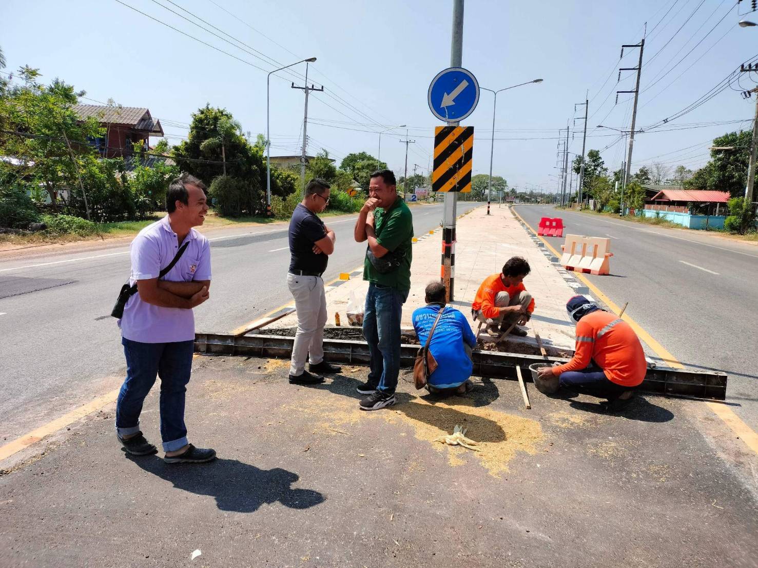"ร่วมลงพื้นที่สำรวจ แนะนำการปฏิบัติงาน แก้ไขปัญหาและบรรเทาความเดือดร้อนของประชาชนในพื้นที่ การปรับปรุงจุดกลับรถ เพื่อความสะดวก และความปลอดภัยของผู้ใช้ทาง ทล.2045 ตอน ร้อยเอ็ด - หนองคูโคก ที่ กม.17+000 (บ้านหนองแวงควง)"
