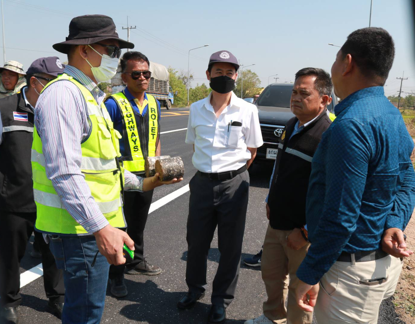 นายชาญพินิจ พินิจศักดิ์ รองผู้อำนวยการสำนักงานทางหลวงที่ 8 (มหาสารคาม) ประธานกรรมการตรวจรับพัสดุ ,นายมงคล แสนวงษา ผู้อำนวยการแขวงทางหลวงร้อยเอ็ด กรรมการตรวจรับพัสดุ พร้อมด้วยคณะกรรมการตรวจรับพัสดุ และนายสมัย คะนะมะ รองผู้อำนวยการแขวงทางหลวงร้อยเอ็ด ฝ่ายวิศวกรรม ผู้ควบคุมงาน ร่วมตรวจงานก่อสร้าง งวดที่ 1 (งวดสุดท้าย) ตามสัญญาเลขที่ รอ.2/2566 ลงวันที่ 31 ตุลาคม 2565 งานโครงการบูรณะโครงข่ายทางหลวงเชื่อมโยงระหว่างภาค ในทางหลวงหมายเลข 214 ตอน ลำชี - ร้อยเอ็ด ระหว่าง กม.30+735 - กม.32+730 โดยมีบริษัท วรัญญาเรียลเอสเตท จำกัด เป็นผู้รับจ้าง