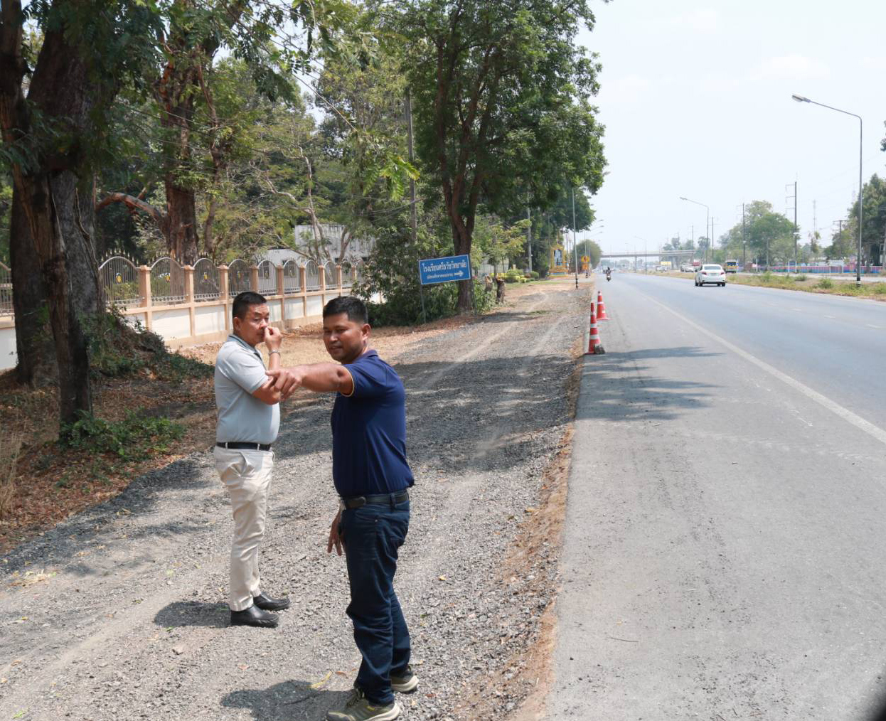 "ลงพื้นเข้าตรวจสอบผลการปฏิบัติงานแนะนำแนวทางการทดลองเปิดจุดกลับรถชั่วคราว เพื่อบรรเทาความเดือดร้อนจากการกลับรถไกล (ด้านหน้าโรงเรียนศึกษาสงเคราะห์ อำเภอธวัชบุรี) ทล.23 ตอน ร้อยเอ็ด - เสลภูมิ ที่ กม.120+500"