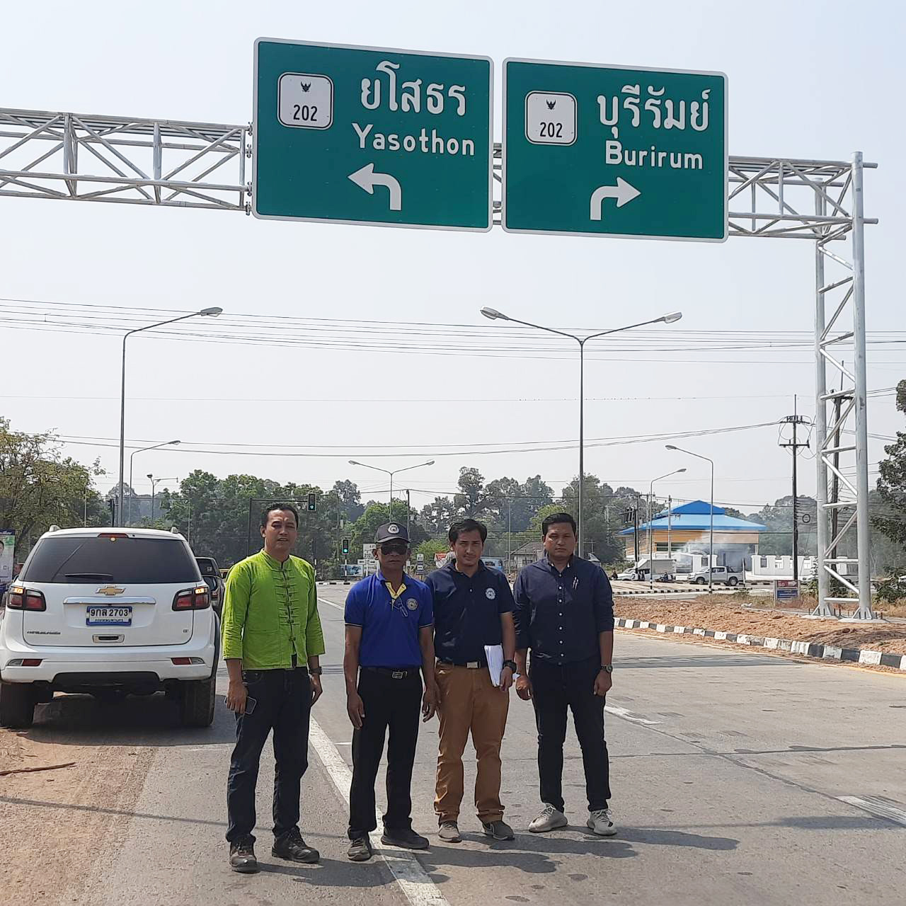 นายมงคล แสนวงษา ผู้อำนวยการแขวงทางหลวงร้อยเอ็ด ประธานกรรมการตรวจรับพัสดุ ,นายสถิต คำพิชิต รองผู้อำนวยการแขวงทางหลวงร้อยเอ็ด ฝ่ายปฏิบัติการ กรรมการตรวจรับพัสดุ ,นายสุนทร ประเสริฐสวัสดิ์ หัวหน้างานวางแผน แขวงทางหลวงร้อยเอ็ด กรรมการตรวจรับพัสดุ และนายศุภพรชัย ขามรัตน์ หัวหน้าหมวดทางหลวงเมืองสรวง ช่างผู้ควบคุมงาน ร่วมตรวจรับงานก่อสร้าง ตามสัญญาเลขที่ รอ.29/2566 ลงวันที่ 9 ธันวาคม 2565 งานจ้างเหมาเพิ่มประสิทธิภาพป้ายและเครื่องหมายจราจรบนทางหลวงอาเซียน ในทางหลวงหมายเลข 202 ตอน เกษตรวิสัย – สุวรรณภูมิ ที่ กม.208+270 (รวมบริเวณทางแยก) โดยมีบริษัท เค ที พี นำโชค เป็นผู้รับจ้าง