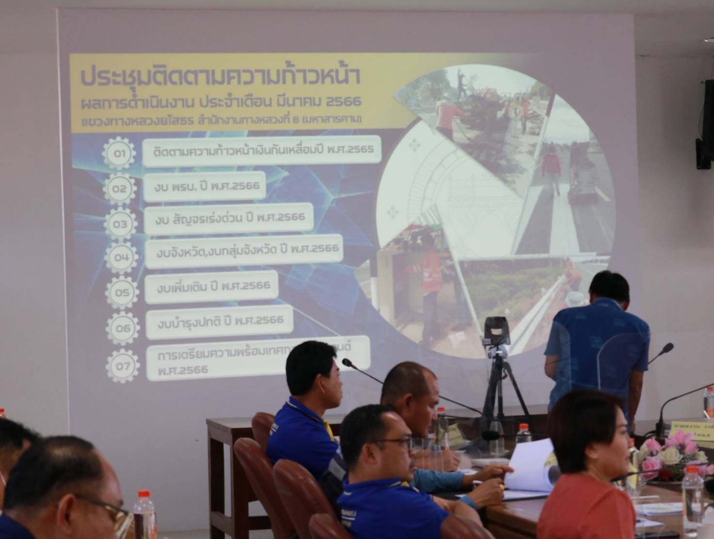 นายชัยธวัช พรหมวิชัย ผู้อำนวยการสำนักงานทางหลวงที่ 8 (มหาสารคาม) ,นายชาญพินิจ พินิจศักดิ์ รองผู้อำนวยการสำนักงานทางหลวงที่ 8 (มหาสารคาม) ,นายมงคล แสนวงษา ผู้อำนวยการแขวงทางหลวงร้อยเอ็ด พร้อมผู้อำนวยการและรองผู้อำนวยการ แขวงทางหลวงในสังกัด ได้เข้าร่วมประชุมประจำเดือน มีนาคม 2566 เพื่อติดตามผลการเบิกจ่ายงบประมาณปัญหา และอุปสรรคในการปฏิบัติงาน ณ.ห้องประชุมพระธาตุนาดูน (ชั้น3) สำนักงานทางหลวงที่ 8 (มหาสารคาม)