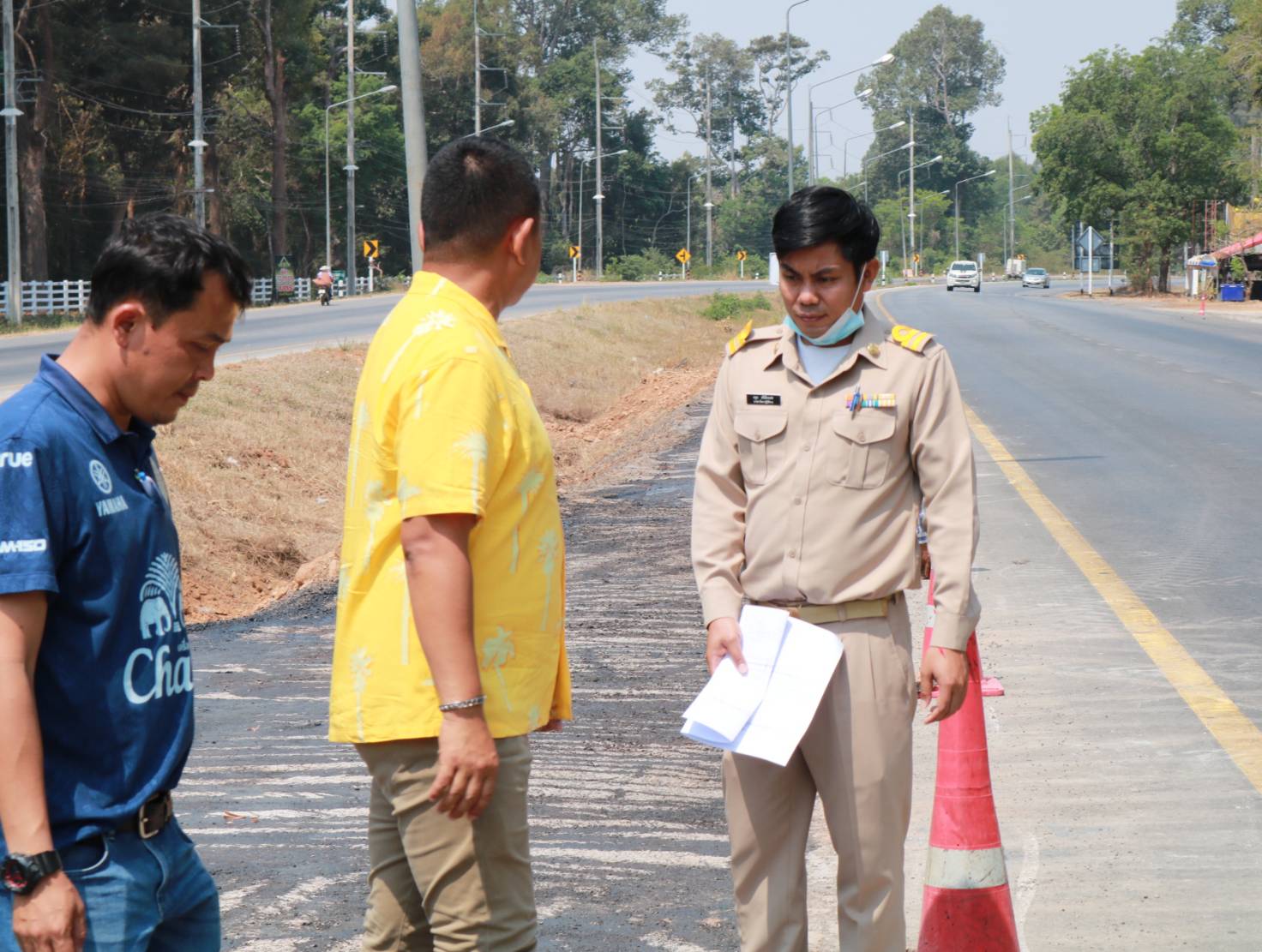 "ร่วมลงพื้นที่เข้าตรวจสอบผลการปฏิบัติงานแนะนำแนวทางการทดลองเปิดจุดกลับรถชั่วคราว เพื่อบรรเทาความเดือดร้อนจากการกลับรถไกล (ด้านหน้าโรงเรียนศึกษาสงเคราะห์ อำเภอธวัชบุรี) ทล.23 ตอน ร้อยเอ็ด - เสลภูมิ ที่ กม.120+500"