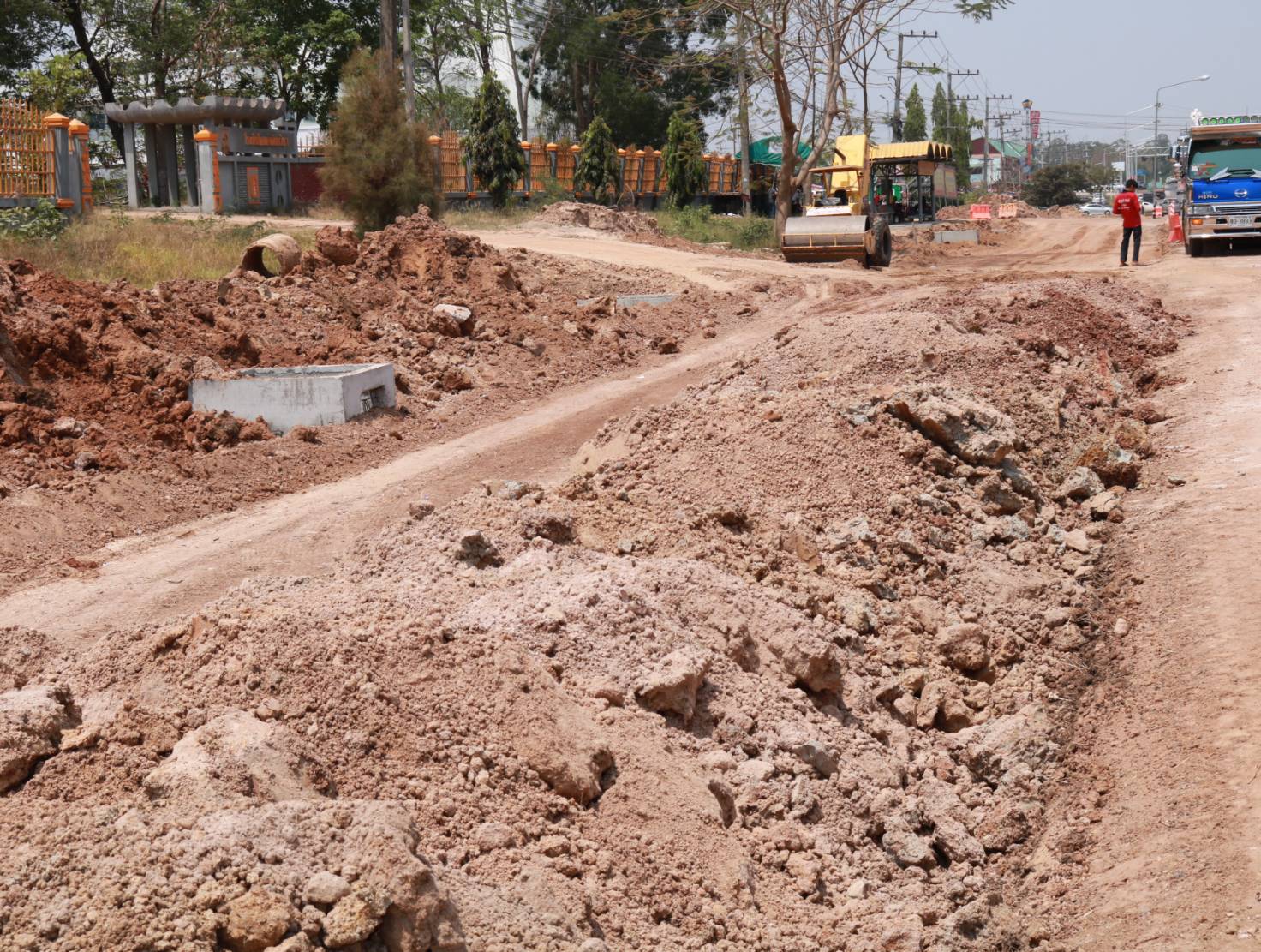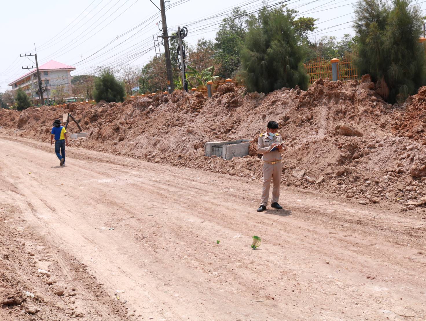 "ร่วมตรวจรับงานก่อสร้าง (งวดที่ 1) ตามสัญญาเลขที่ รอ.18/2566 งานก่อสร้างทางหลวงผ่านย่านชุมชน ทล.2116 ตอน ร่องคำ - โพนทอง ระหว่าง กม.70+830 - กม.71+400"