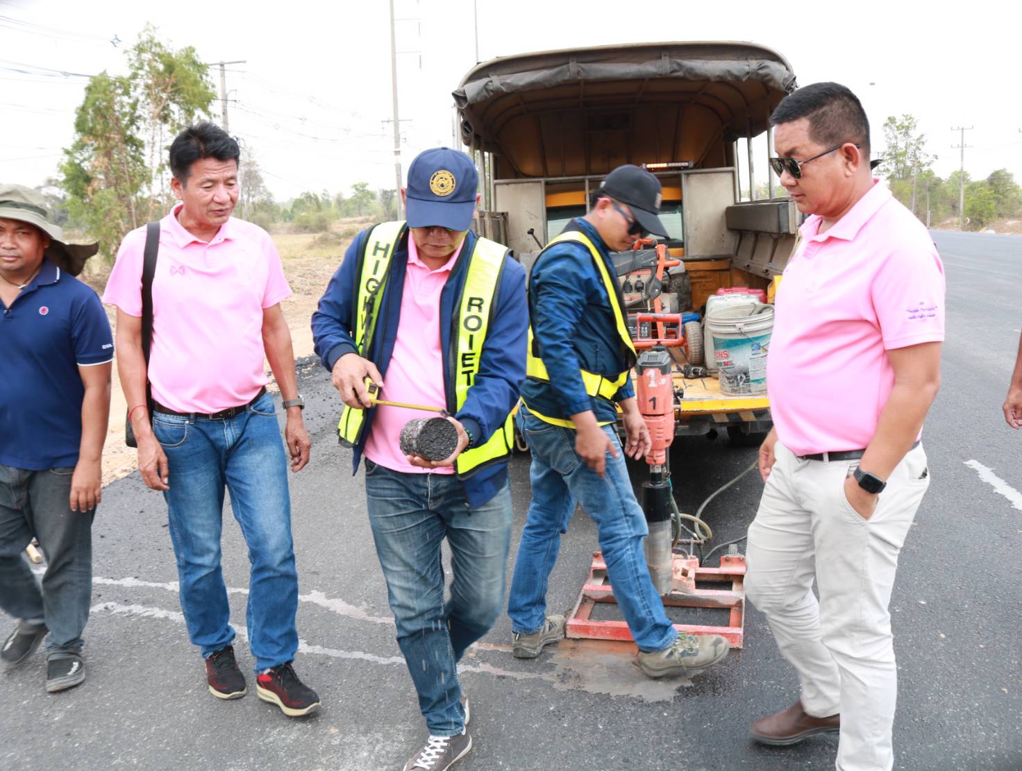 นายมงคล แสนวงษา ผู้อำนวยการแขวงทางหลวงร้อยเอ็ด ประธานกรรมการตรวจรับพัสดุ พร้อมด้วยคณะกรรมการฯ และนายสถิต คำพิชิต รองผู้อำนวยการแขวงทางหลวงร้อยเอ็ด ฝ่ายปฏิบัติการ ผู้ควบคุมงาน ร่วมตรวจรับงานก่อสร้าง ตามสัญญาเลขที่ รอ.15/2566 ลงวันที่ 8 พฤจิกายน 2565 งานปรับปรุงจุดเสี่ยงและบริเวณอันตรายบนทางหลวง ในทางหลวงหมายเลข 2116 ตอน ร่องคำ - โพนทอง ระหว่าง กม.65+100 - 66+800 โดยมีบริษัท ยิ่งเจริญก่อสร้างบุรีรัมย์ จำกัด เป็นผู้รับจ้าง