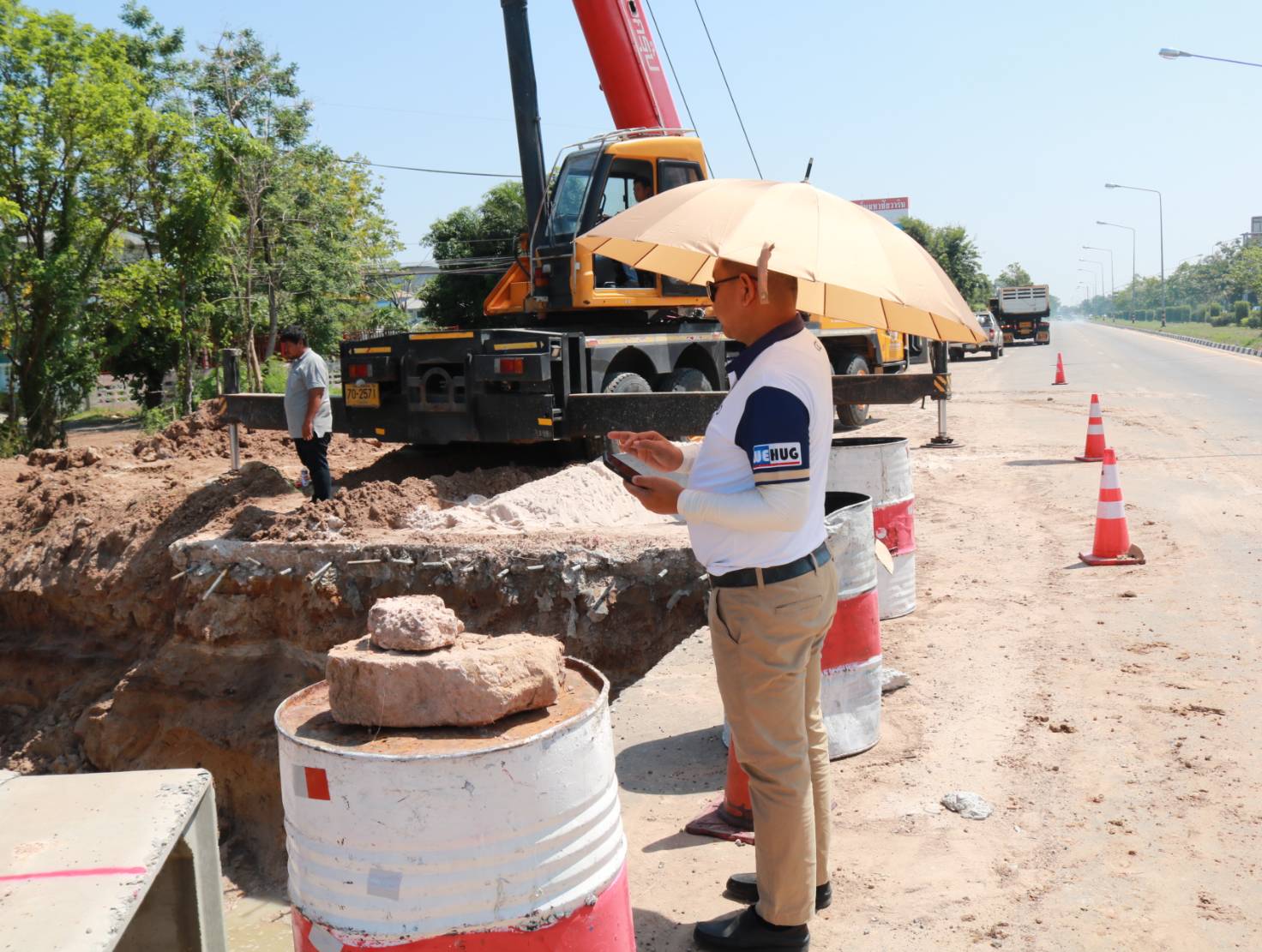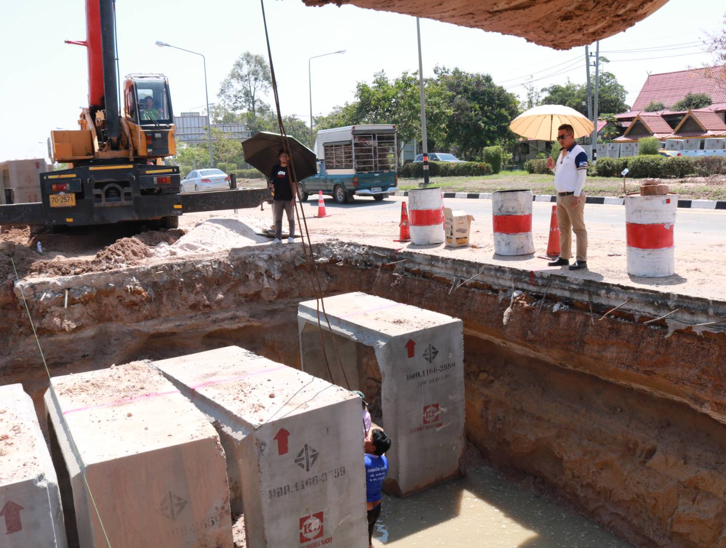 นายมงคล แสนวงษา ผู้อำนวยการแขวงทางหลวงร้อยเอ็ด ได้ลงพื้นที่ตรวจสอบ แก้ไขและแนะนำการปฏิบัติงาน ตามสัญญาเลขที่ รอ.19/2566 ลงวันที่ 10 พฤศจิกายน 2565 งานก่อสร้างทางหลวงผ่านย่านชุมชน ในทางหลวงหมายเลข 2043 ตอน ร้อยเอ็ด - ยางเฌอ ระหว่าง กม.2+430 - กม.3+350 โดยมีบริษัท เพชรสมวงศ์การโยธา เป็นผู้รับจ้าง