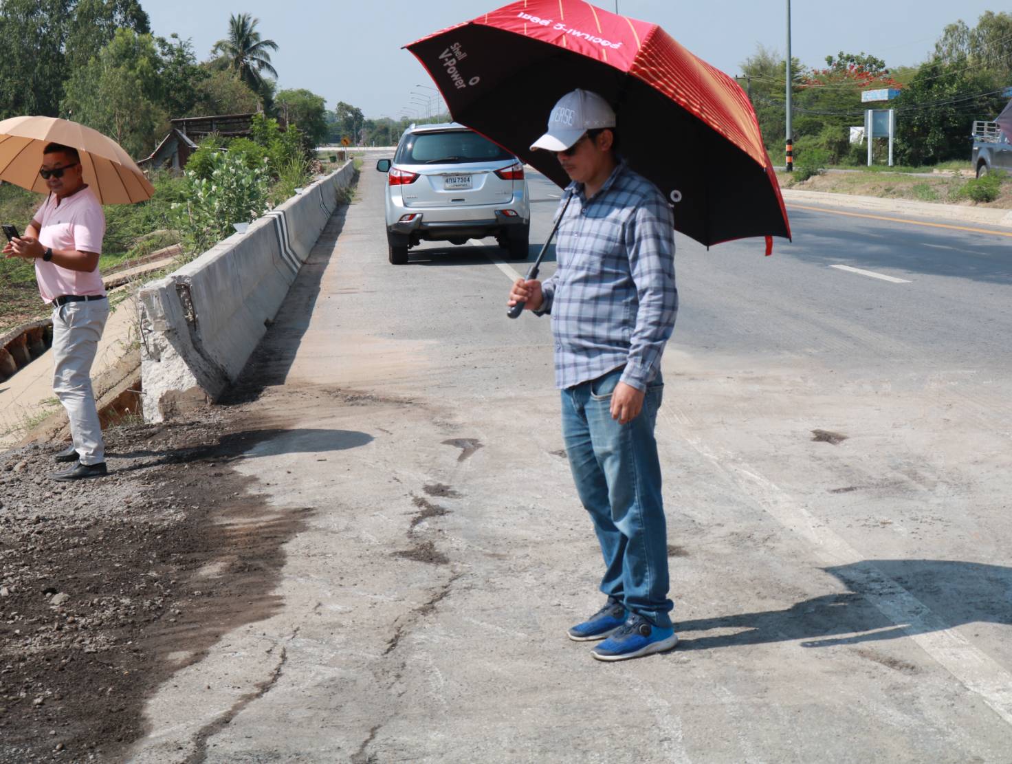 "ลงพื้นที่ตรวจสอบ แนะนำการปฏิบัติงาน แนวทางการแก้ไขภัยพิบัติ คันทางชำรุด จากเหตุการณ์ น้ำท่วมทางช่วงฤดูฝนที่ผ่านมา ทล.214 ตอน ลำชี - ร้อยเอ็ด ระหว่าง กม.29+800 - กม.29+900 ด้านขวาทาง (ริมแม่น้ำชี)"