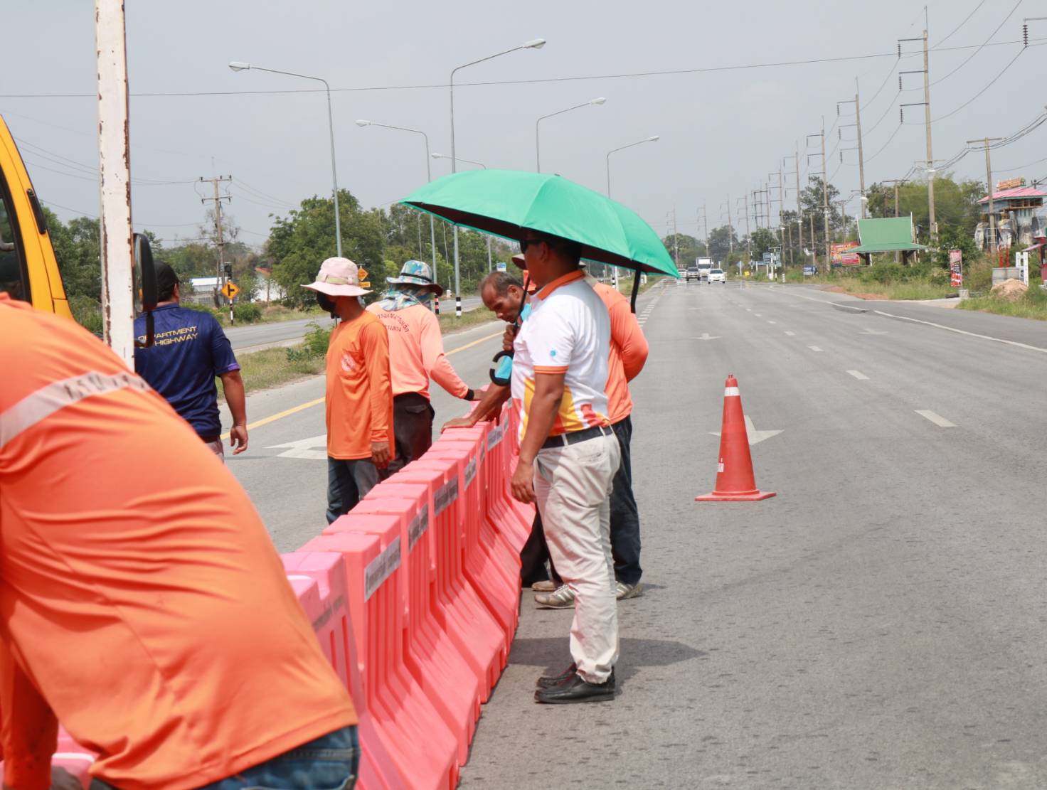 "ร่วมลงพื้นที่ตรวจสอบกายภาพทางหลวง เข้าอำนวยการพร้อมแนะนำแนวทางการปฏิบัติงาน การปรับปรุงจุดเสี่ยง จุดอันตรายในทางหลวง แก้ไขปัญหาการขับรถย้อยศรบริเวณจุดกลับรถ ทล.23 ตอน ร้อยเอ็ด - เสลภูมิ ที่ กม.128+800"