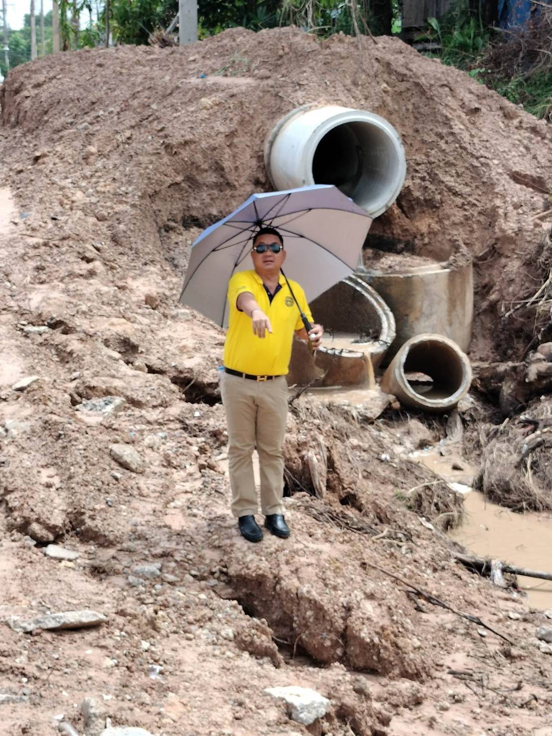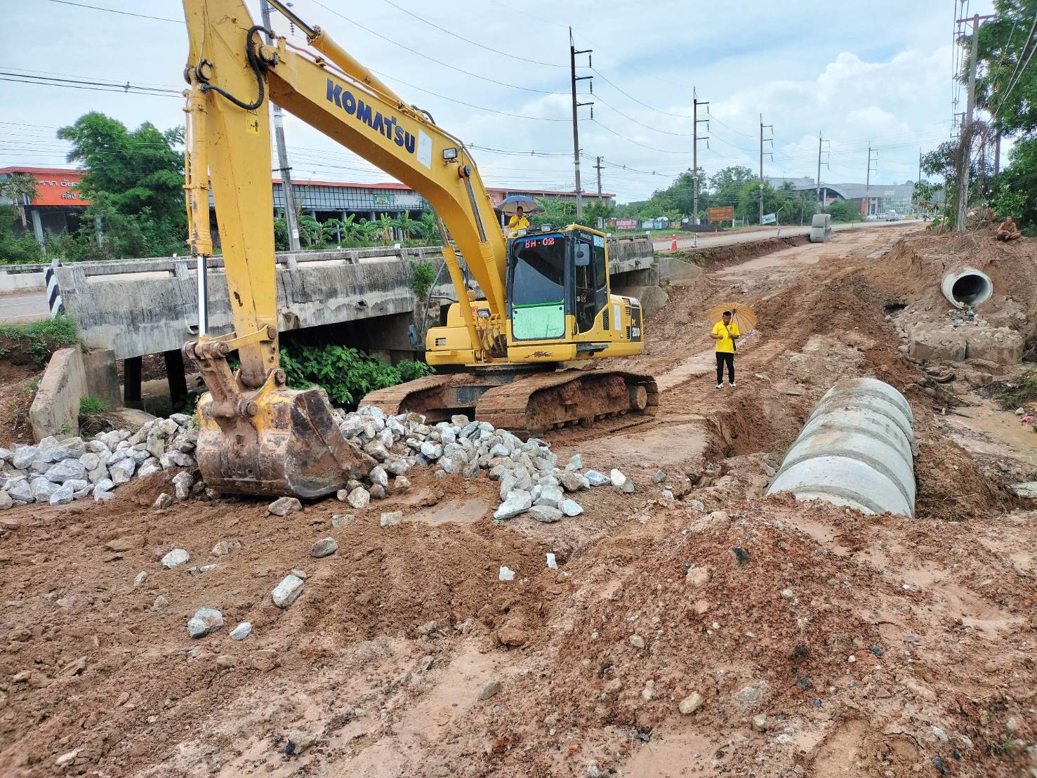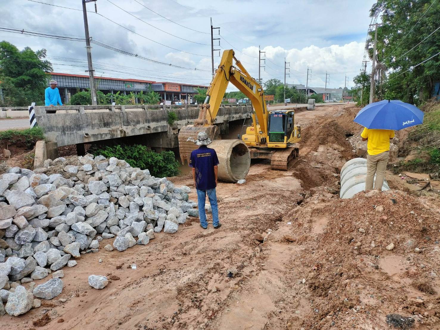 "ร่วมลงพื้นที่สำรวจแนะนำการปฏิบัติงาน แก้ไขปัญหาอุทกภัย คันทางชำรุดจากเหตุการณ์น้ำท่วม กัดเซาะคันทางจากการที่มีฝนตกอย่างหนักอย่างต่อเนื่องตลอดหลายวันที่ผ่านมา ตามสัญญา รอ.37/2566 ทล.2044 ตอน หนองดง - ร้อยเอ็ด ระหว่าง กม.46+338 - กม.47+861"