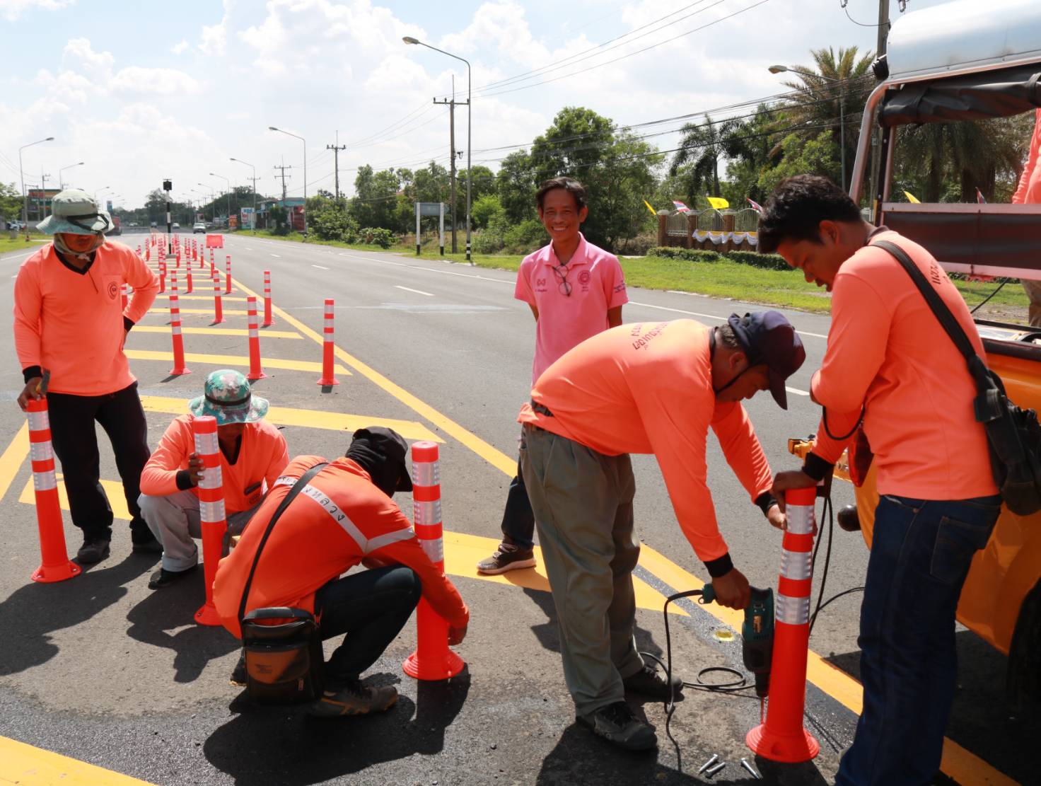 นายมงคล แสนวงษา ผู้อำนวยการแขวงทางหลวงร้อยเอ็ด ,ว่าที่ รต.ธีระศักดิ์ ไค่นุ่นโพธิ์ หัวหน้าหมวดทางหลวงเสลภูมิ ,นายสุวิท ปัดมะฤทธิ์ หัวหน้างานอำนวยความปลอดภัย และนายธนพล พิมพ์ศักดิ์ หัวหน้างานบริเวณและต้นไม้ ได้ร่วมลงพื้นที่ตรวจสอบแนะนำแก้ไขปัญหา การปรับปรุงจุดเสี่ยงบริเวณหน้าแขวงทางหลวงร้อยเอ็ดหน้า สำนักงานทรัพยากรธรรมชาติและสิ่งแวดล้อมจังหวัดร้อยเอ็ด หน้าสำนักงาน ป.ป.ช จังหวัดร้อยเอ็ดและหน้าสำนักงานบังคับคดีจังหวัดร้อยเอ็ด โดยได้ทำการติดตั้งหลักนำทางชนิดอ่อนตัว (หลักล้มลุก) เพื่อจัดระเบียบการใช้ทาง การเลี้ยวเข้า - เลี้ยวออก สำนักงาน เพื่อความสะดวกแก่ผู้ใช้ทาง ในทางหลวงหมายเลข 2044 ตอน ร้อยเอ็ด - หนองดง ระหว่าง กม.6+735 - กม.6+835