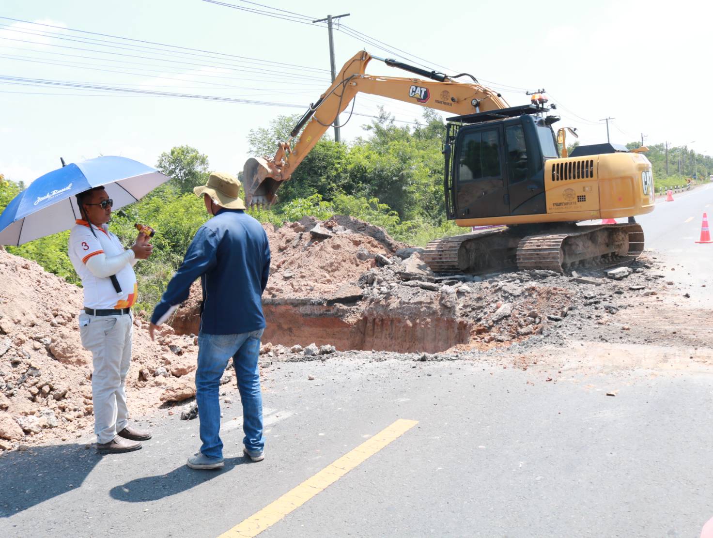 นายมงคล แสนวงษา ผู้อำนวยการแขวงทางหลวงร้อยเอ็ด พร้อมด้วยนายสถิต คำพิชิต รองผู้อำนวยการแขวงทางหลวงร้อยเอ็ด ฝ่ายปฏิบัติการ และนายสุขสันต์ ปากวิเศษ หัวหน้าหมวดทางหลวงโพนทอง ได้ร่วมลงพื้นที่ตรวจสอบแนะนำการปฏิบัติงาน แก้ไขปัญหาน้ำท่วมทาง การวางท่อระบายน้ำ ที่ Cross Drain ขนาด 1.20 เมตร เพื่อแก้ไขปัญหาการระบายน้ำในพื้นที่ ในทางหลวงหมายเลข 2044 ตอน หนองดง - โพนทอง ที่ กม.44+100 (หน้าคูโบต้าโพนทอง)