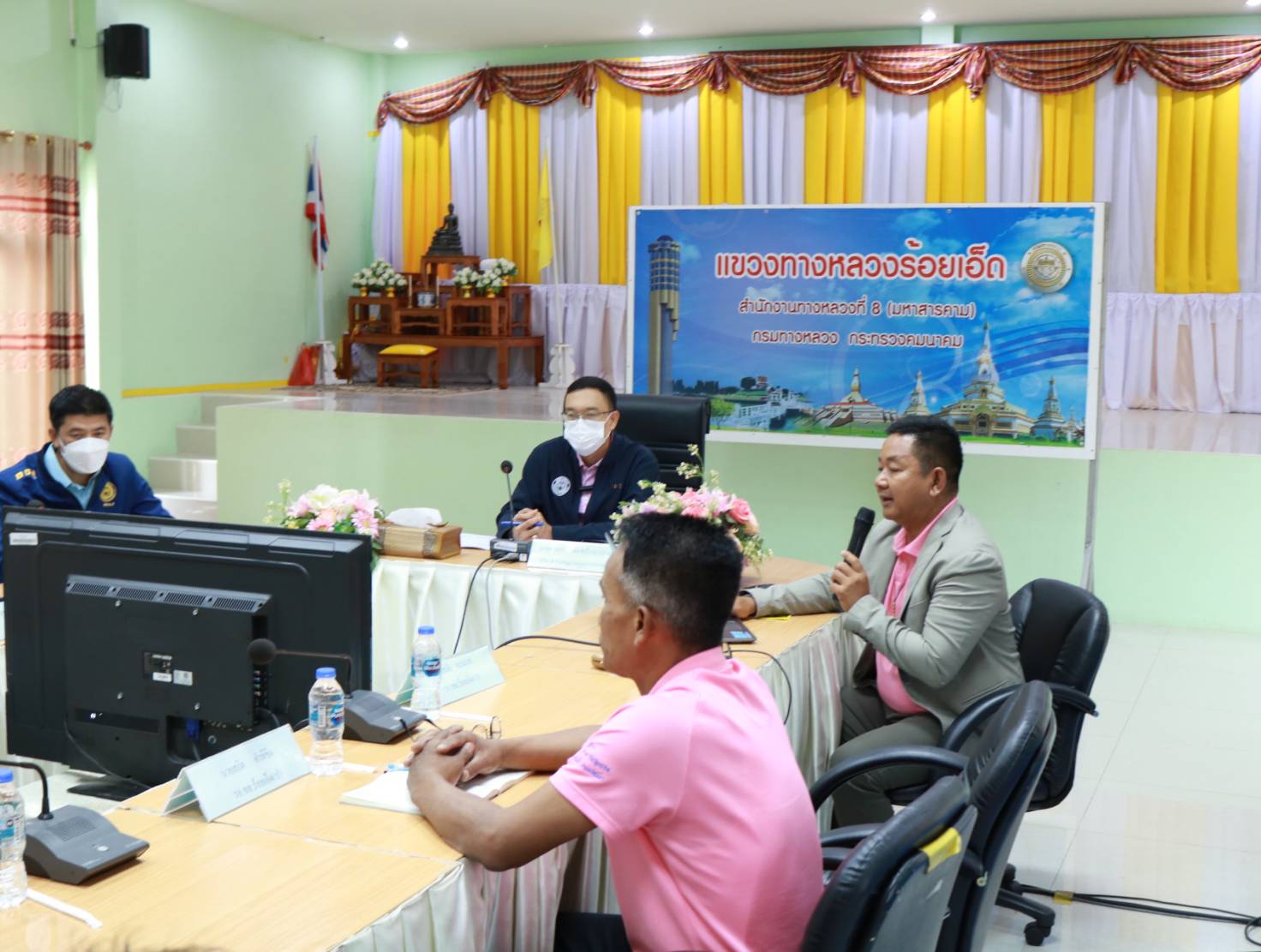 นายมงคล แสนวงษา ผู้อำนวยการแขวงทางหลวงร้อยเอ็ด พร้อมด้วยคณะเจ้าหน้าที่แขวงทางหลวงร้อยเอ็ด ให้การต้อนรับคณะอนุกรรมการฯ ประเมินผลงานบำรุงทาง งานอำนวยความปลอดภัย ประจำปี 2566 กลุ่ม 2 ภาคตะวันออกเฉียงเหนือ โดยมีนายพัลลภ จันทร์งามปภากูล ผู้อำนวยการสำนักงานทางหลวงที่ 3 (สกลนคร) ประธานคณะอนุกรรมการพร้อมคณะอนุกรรมการประเมินฯ รับฟังบรรยายสรุปผลงาน เพื่อประเมินคัดเลือกผู้อำนวยการแขวงทางหลวงระดับดีและดีเด่น เพื่อเป็นตัวแทน กลุ่ม 2 ภาคตะวันออกเฉียงเหนือ ประจำปี 2566 ณ ห้องประชุมจุลละโพธิ แขวงทางหลวงร้อยเอ็ด