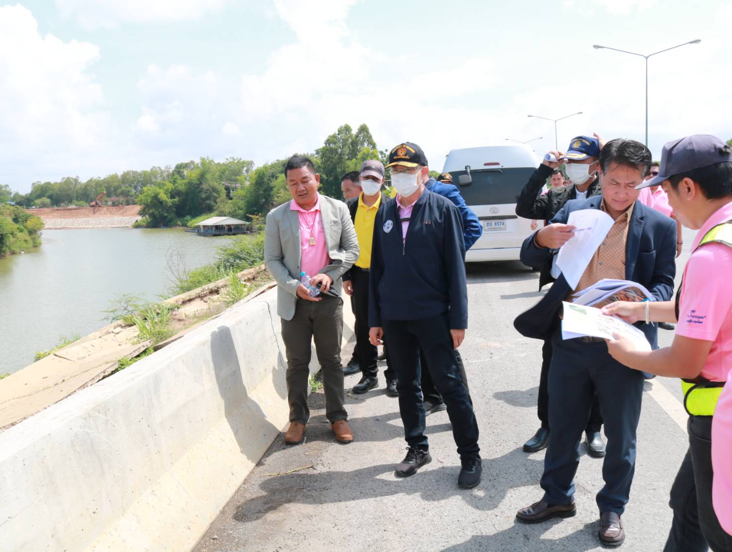 นายพัลลภ จันทร์งามปภากูล ผู้อำนวยการสำนักงานทางหลวงที่ 3 (สกลนคร),นายมงคล แสนวงษา ผู้อำนวยการแขวงทางหลวงร้อยเอ็ด พร้อมด้วยคณะอนุกรรมการประเมินฯ รับฟังบรรยายสรุปผลงาน เพื่อประเมินคัดเลือกผู้อำนวยการแขวงทางหลวงระดับดีและดีเด่น ประจำปี 2566 กลุ่ม 2 ภาคตะวันออกเฉียงเหนือ และหัวหน้าหมวดในสังกัด ได้ร่วมลงพื้นที่สำรวจตรวจสอบ แนะนำแก้ไข งานภัยพิบัติคันทางสไลด์ เพื่อความสะดวกและปลอดภัย ของผู้ใช้ทาง ในทางหลวงหมายเลข 214 ตอน ลำชี - ร้อยเอ็ด ที่กม.29+900 (ด้านขวาทาง)