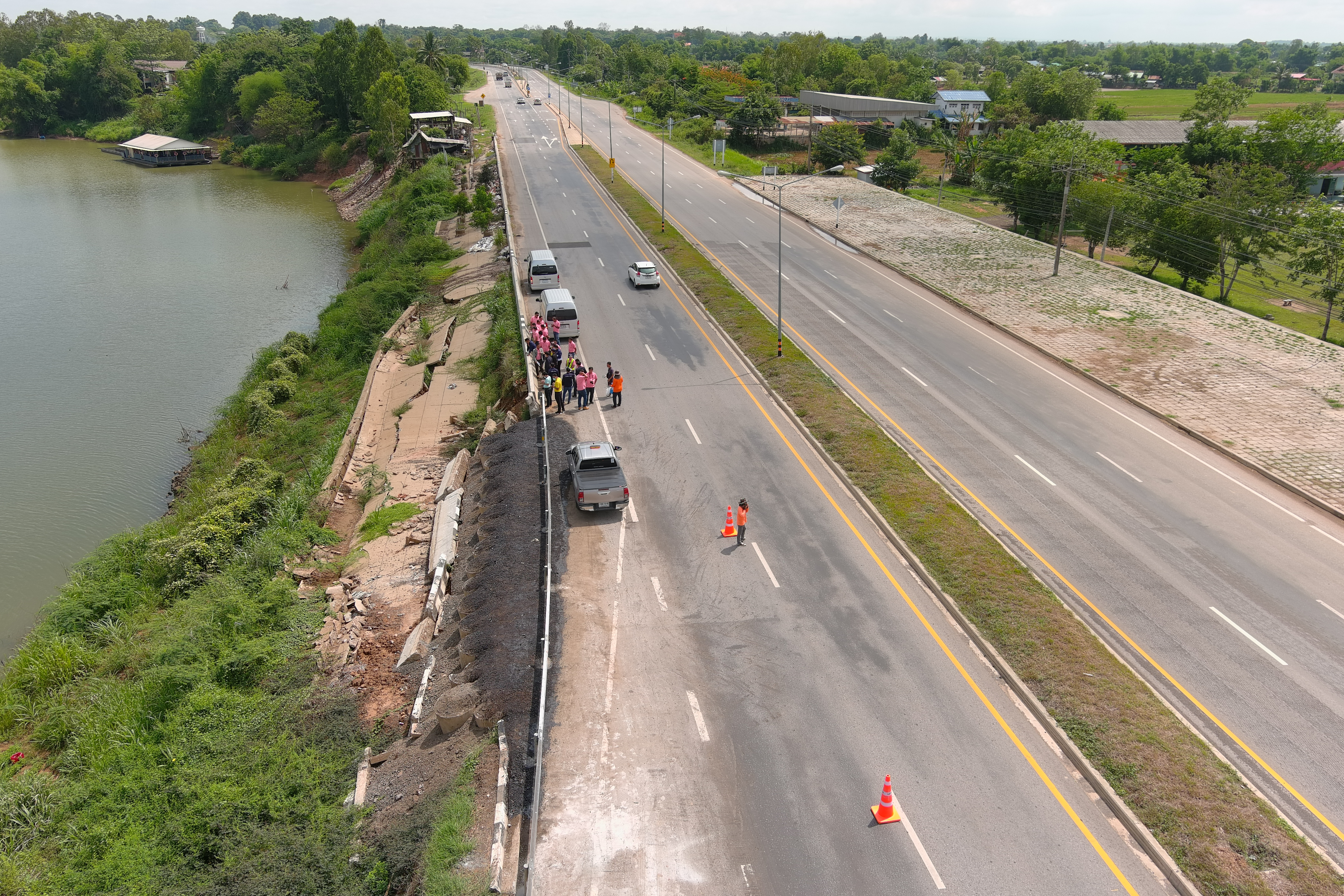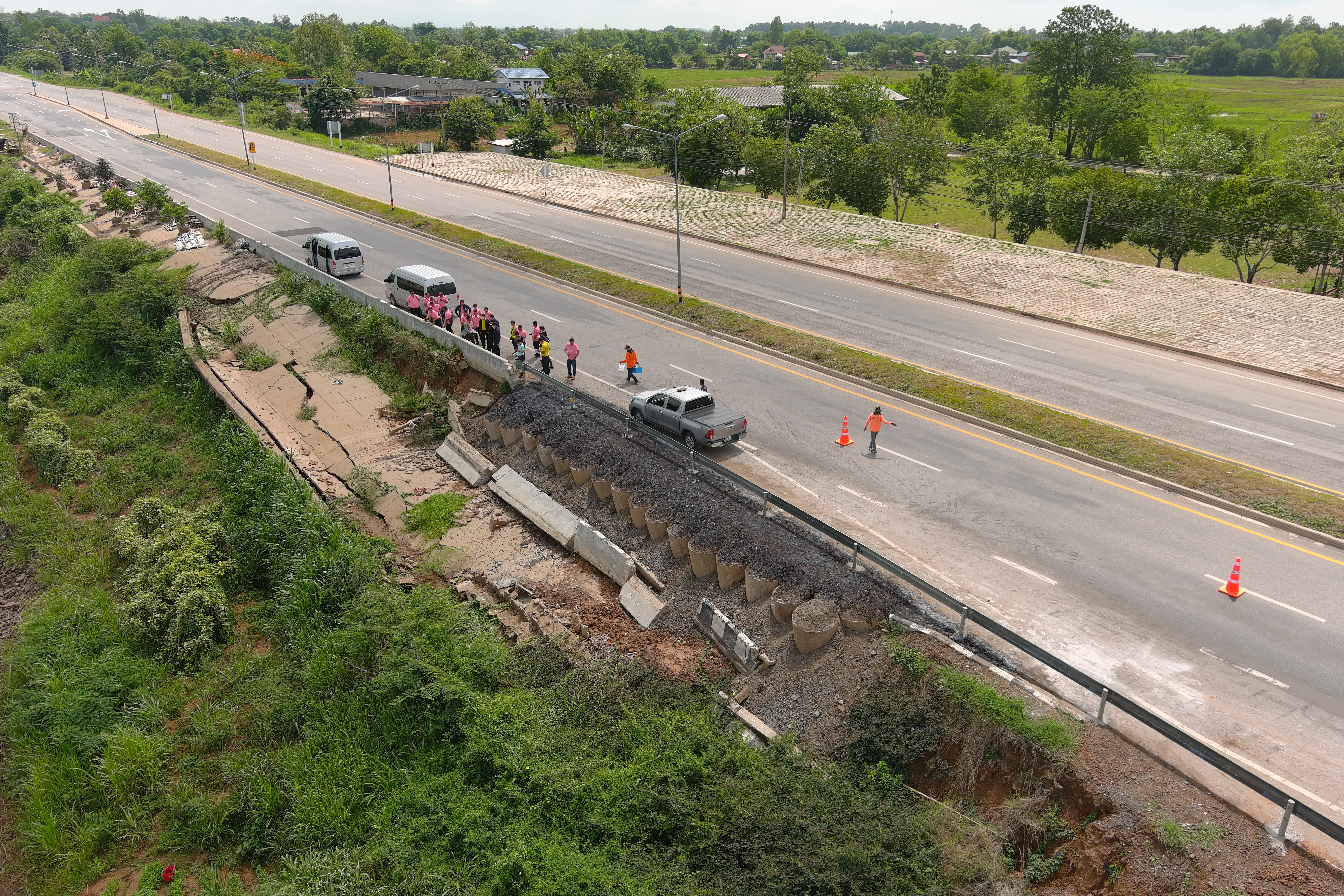 "คณะประเมินผลงานบำรุงทางฯ ร่วมลงพื้นที่สำรวจตรวจสอบ แนะนำแก้ไข งานภัยพิบัติคันทางสไลด์ เพื่อความสะดวกและปลอดภัย ของผู้ใช้ทาง ในทางหลวงหมายเลข 214 ตอน ลำชี - ร้อยเอ็ด ที่กม.29+900 (ด้านขวาทาง)"