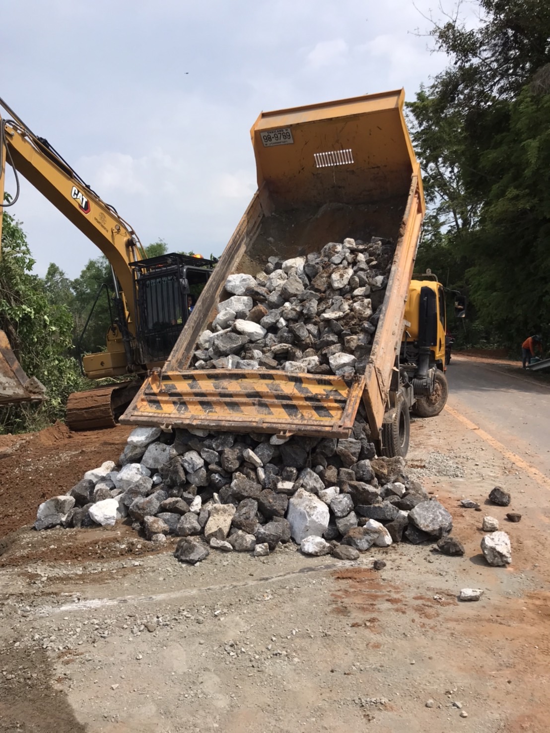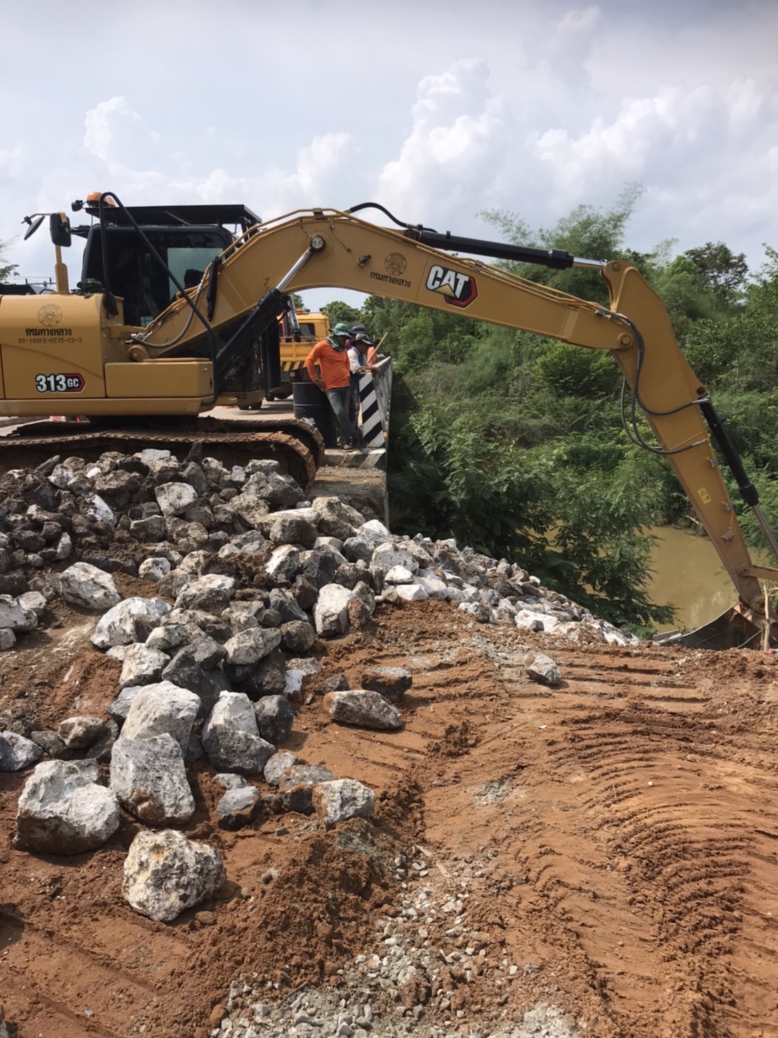 นายมงคล แสนวงษา ผู้อำนวยการแขวงทางหลวงร้อยเอ็ด พร้อมด้วยนายสุขสันต์ ปากวิเศษ หัวหน้าหมวดทางหลวงโพนทอง และนายธวัช บุรัมย์สูงเนิน ผู้ช่วยหัวหน้าหมวดทางหลวงโพนทอง ได้เข้าอำนวยการดำเนินการซ่อมแซมความเสียหาย บริเวณคอสะพาน จากภัยพิบัติ (คอสะพานชำรุด) ในทางหลวงหมายเลข 2418 ตอน โพนทอง - หนองพอก ที่ กม.34+231 เพื่อความสะดวกและปลอดภัยของผู้ใช้ทางหลวง