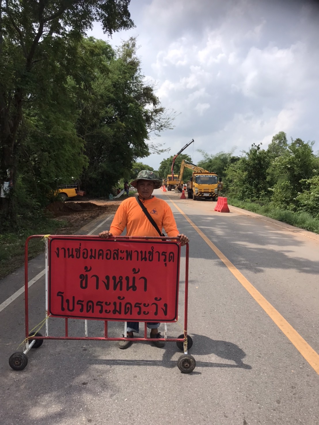 "ได้เข้าอำนวยการดำเนินการซ่อมแซมความเสียหาย บริเวณคอสะพาน จากภัยพิบัติ (คอสะพานชำรุด) ทล.2418 ตอน โพนทอง - หนองพอก ที่ กม.34+231"
