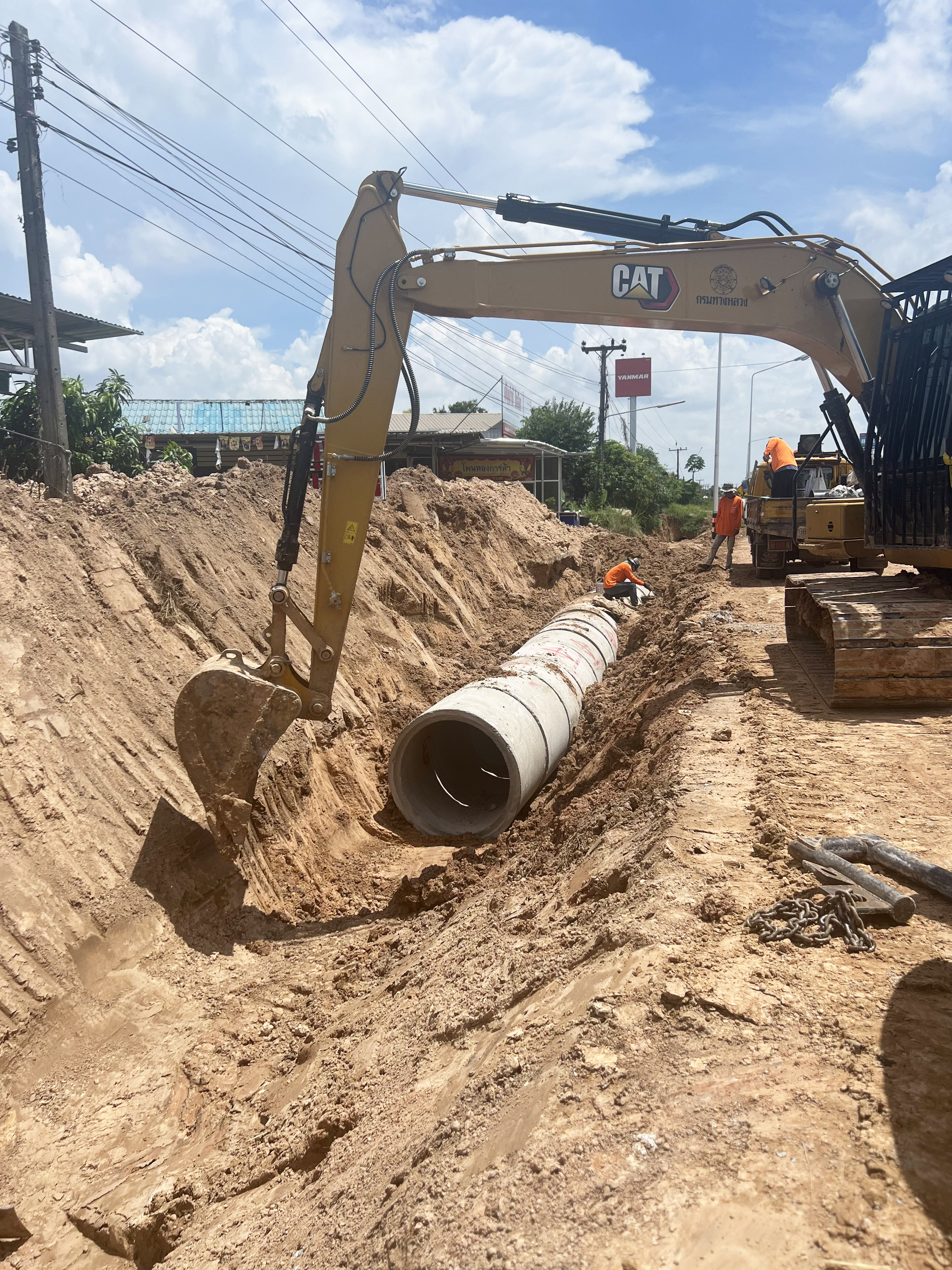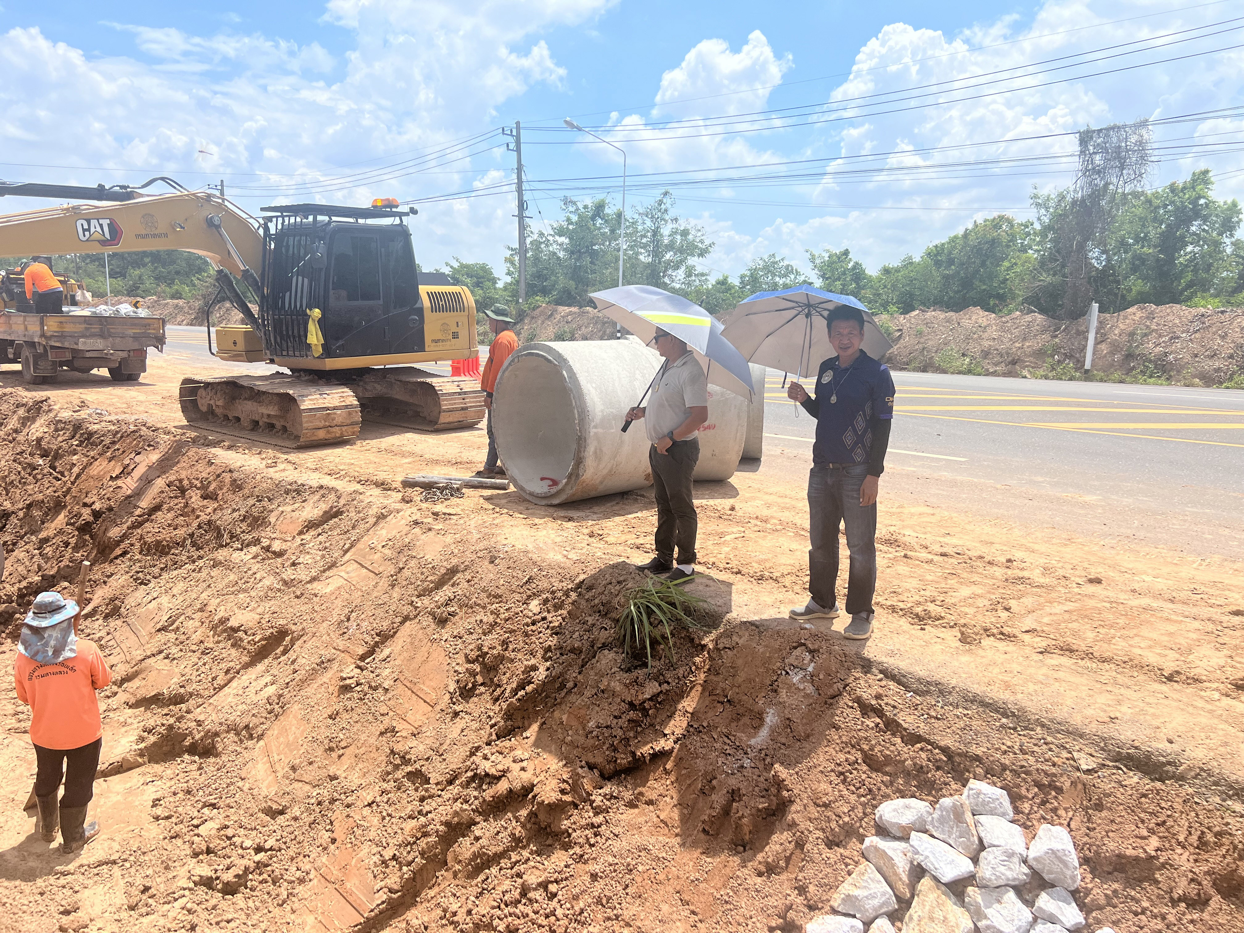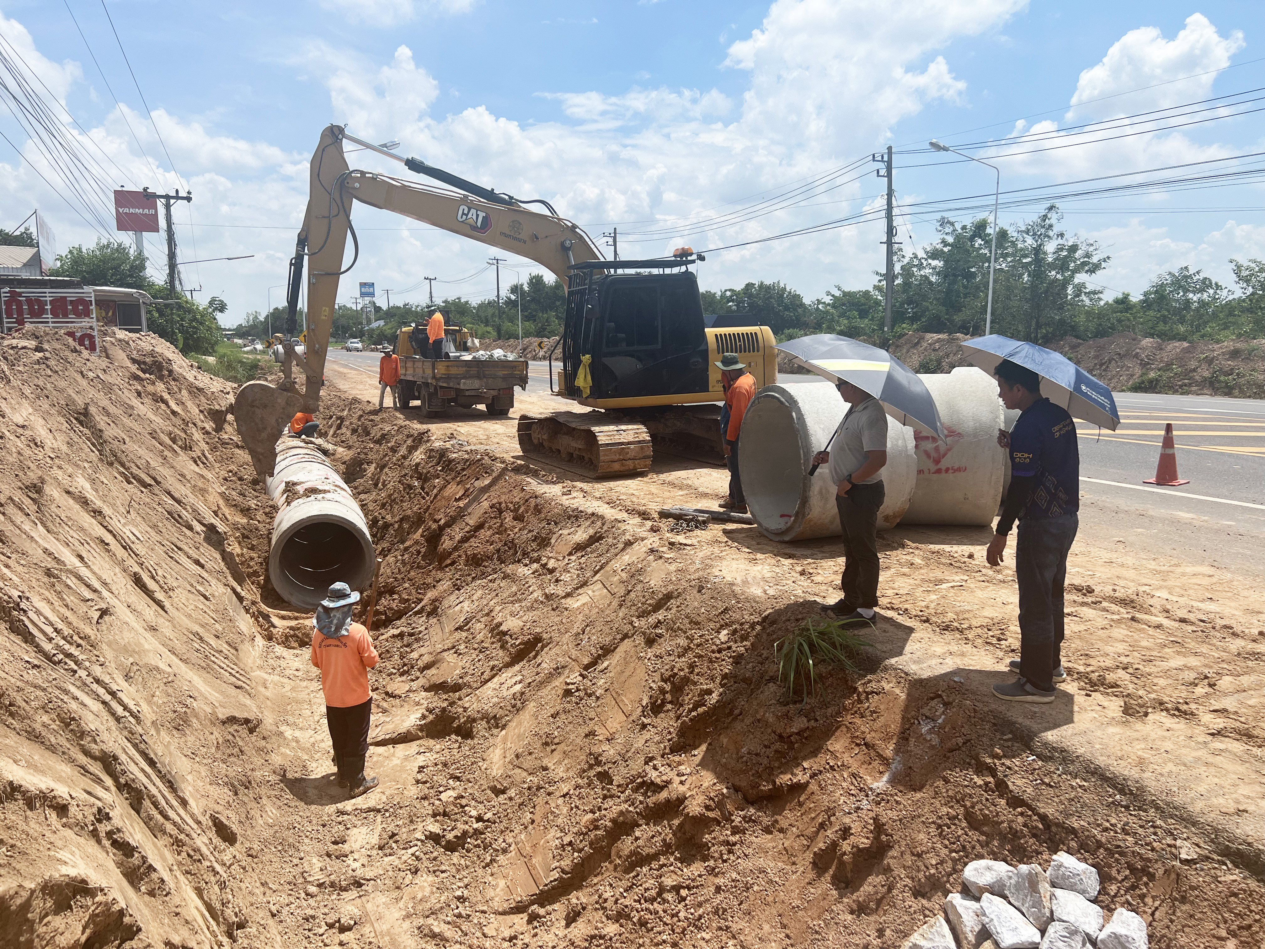 "ร่วมลงพื้นที่ตรวจสอบแนะนำการปฏิบัติงาน แก้ไขปัญหาเรื่องระบบระบายน้ำสองข้างทาง โดยการขุดลอกระบายน้ำและวางท่อระบายน้ำ ทล.2044 ตอน หนองดง - โพนทอง ที่กม.44+100 ด้านขวาทาง (แพปลายน้ำ/ศูนย์ยันมาร์)"