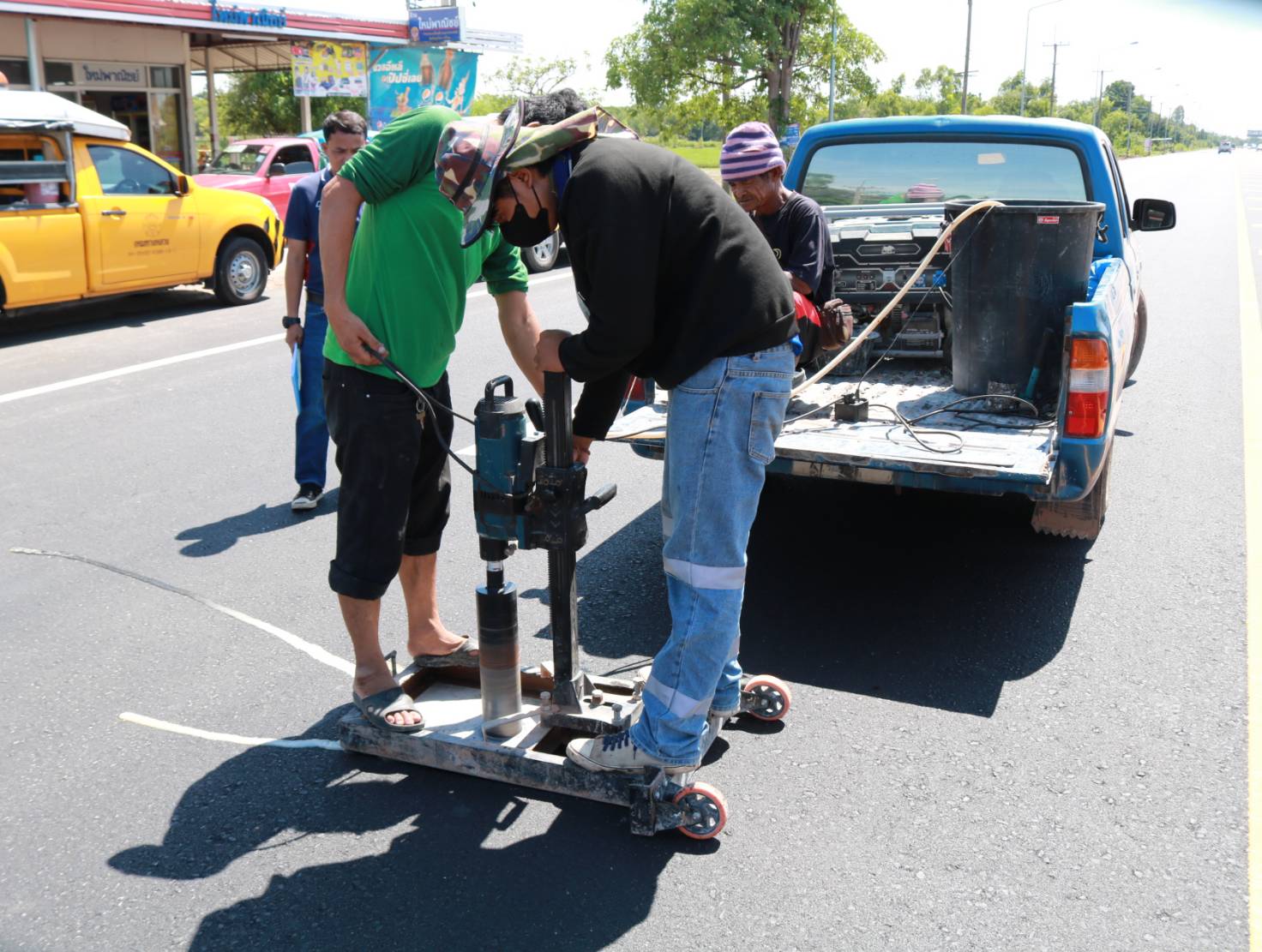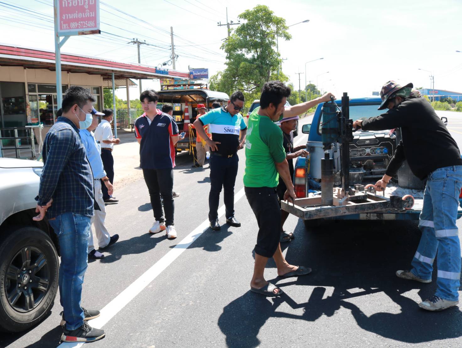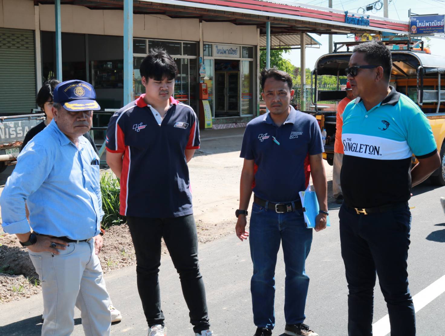 นายมงคล แสนวงษา ผู้อำนวยการแขวงทางหลวงร้อยเอ็ด ประธานกรรมการตรวจรับพัสดุ ,นายสมัย คะนะมะ รองผู้อำนวยการแขวงทางหลวงร้อยเอ็ด ฝ่ายวิศวกรรม กรรมการตรวจรับพัสดุ และว่าที่ รต.ธีระศักดิ์ ไค่นุ่นโพธิ์ หัวหน้าหมวดทางหลวงเสลภูมิ ช่างผู้ควบคุมงาน ร่วมตรวจรับงานก่อสร้าง ตามสัญญาเลขที่ รอ.47/2566 ลงวันที่ 19 พฤษภาคม 2566 งานกิจกรรมบูรณะโครงข่ายทางหลวงเชื่อมโยงระหว่างภาค ในทางหลวงหมายเลข 2044 ตอน ร้อยเอ็ด - หนองดง ระหว่าง กม.13+698 - กม.14+305 โดยมีบริษัท บูชาเกียรติ 101 จำกัด เป็นผู้รับจ้าง