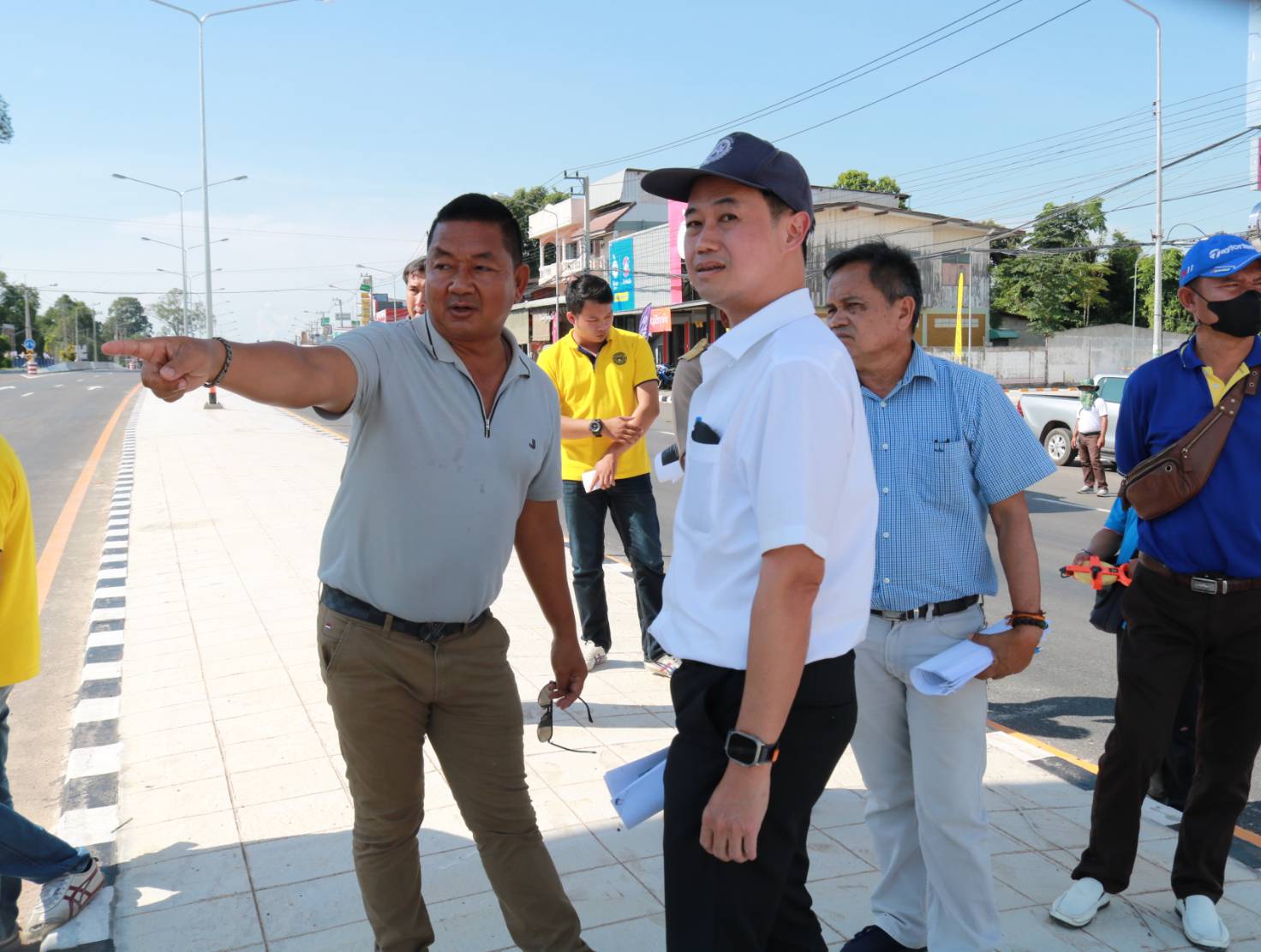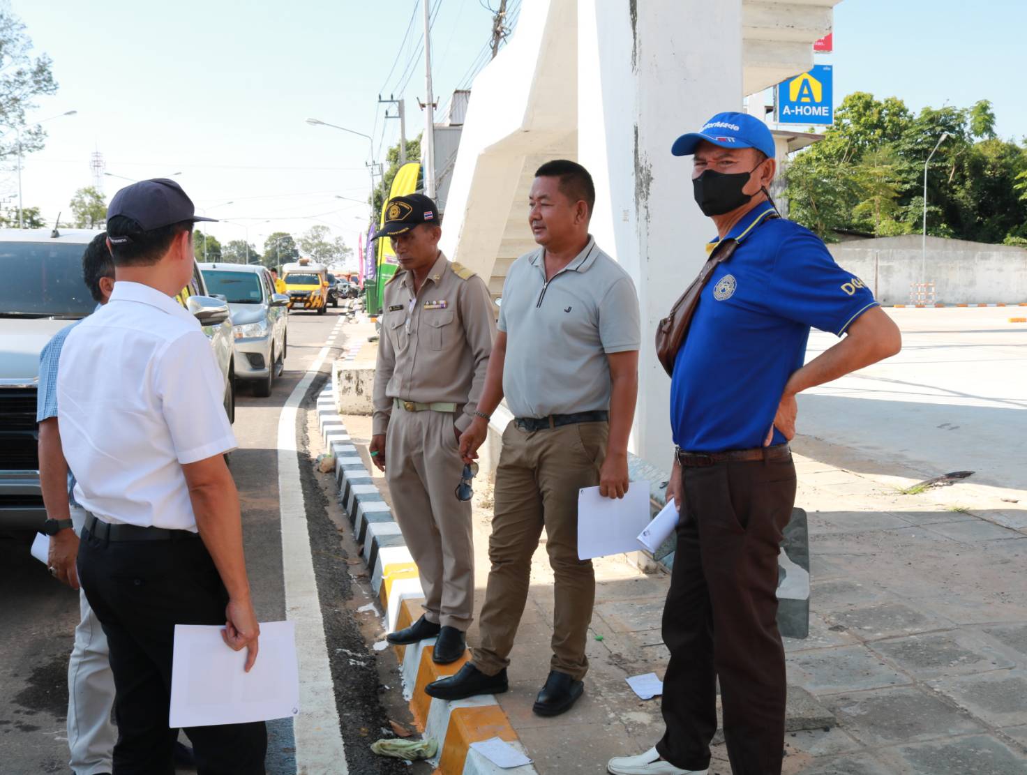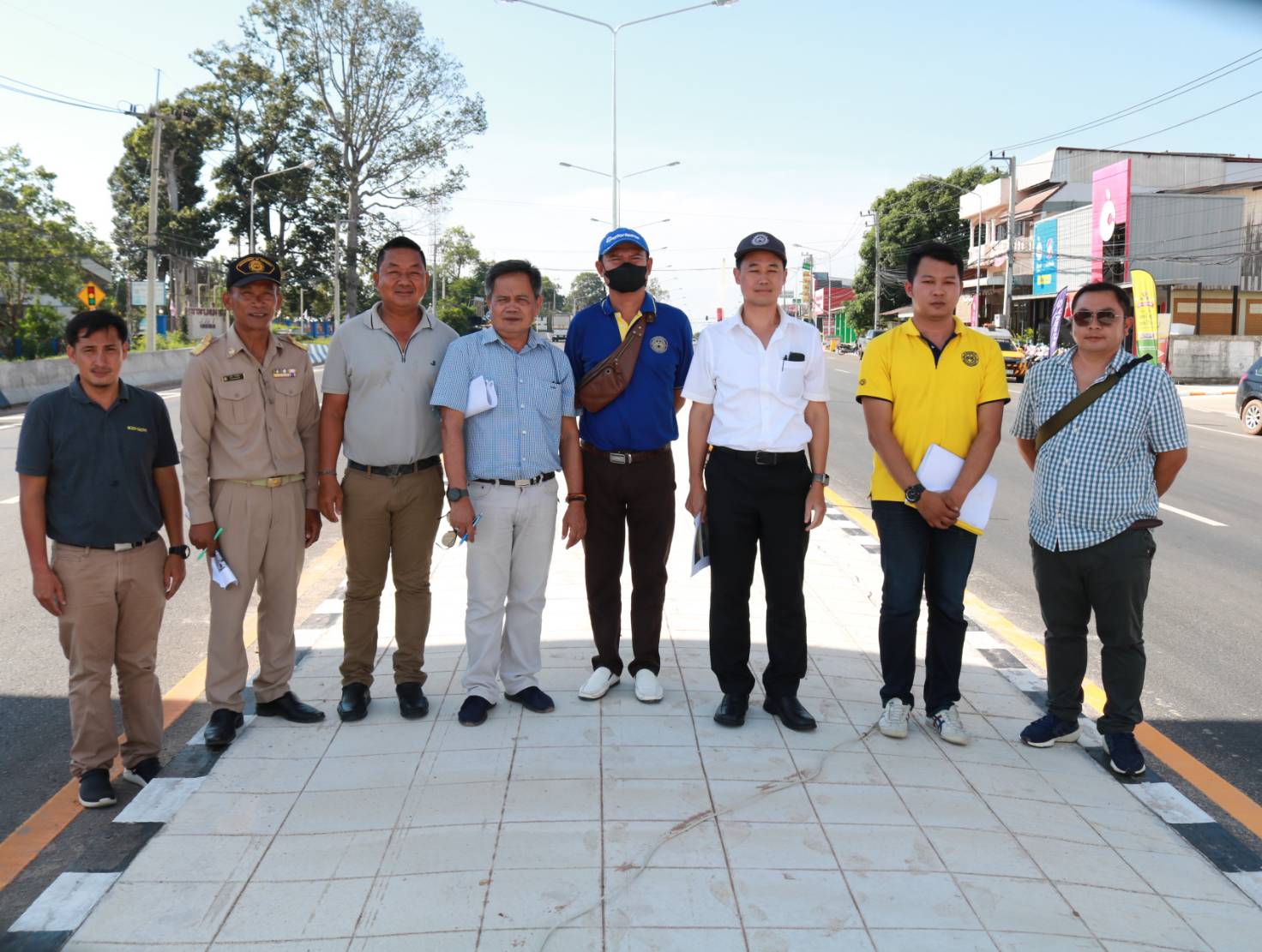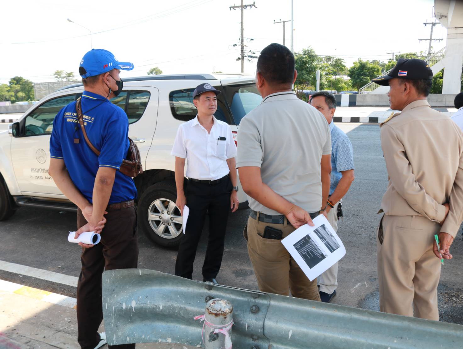 นายชาญพินิจ พินิจศักดิ์ รองผู้อำนวยการสำนักงานทางหลวงที่ 8 (มหาสารคาม) ประธานกรรมการตรวจรับพัสดุ ,นายมงคล แสนวงษา ผู้อำนวยการแขวงทางหลวงร้อยเอ็ด กรรมการตรวจรับพัสดุ พร้อมด้วยคณะกรรมการตรวจรับพัสดุ ร่วมลงพื้นที่ตรวจรับงาน (งวดสุดท้าย) ตามสัญญาเลขที่ รอ.16/2566 ลงวันที่ 8 พฤศจิกายน 2566 งานปรับปรุงการแบ่งทิศทางการจราจรเพื่อความปลอดภัย ในทางหลวงหมายเลข 215 ตอน ร้อยเอ็ด - สุวรรณภูมิ ระหว่าง กม.25+800 - กม 27+450 โดยมีบริษัท เพชรสมวงศ์การโยธา เป็นผู้รับจ้าง