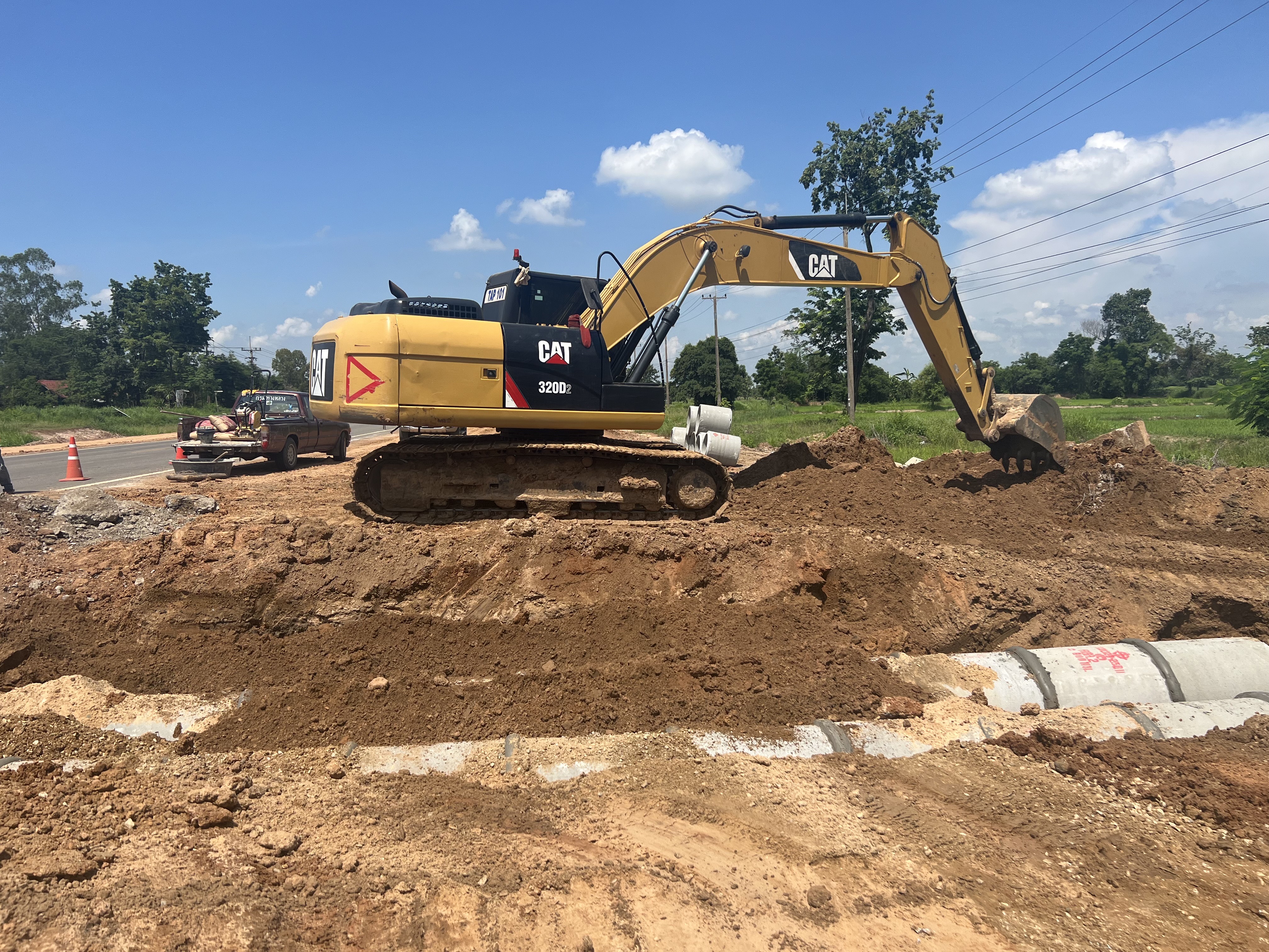 "ลงพื้นที่ตรวจสอบ แนะนำการปฏิบัติงานวางท่อในบริเวณพื้นที่ก่อสร้าง ตามสัญญาที่ รอ.36/2566 ลงวันที่ 15 กุมภาพันธ์ 2566 ทล.2116 ตอน ร่องคำ - โพนทอง ระหว่าง กม.54+150 - กม.56+000"