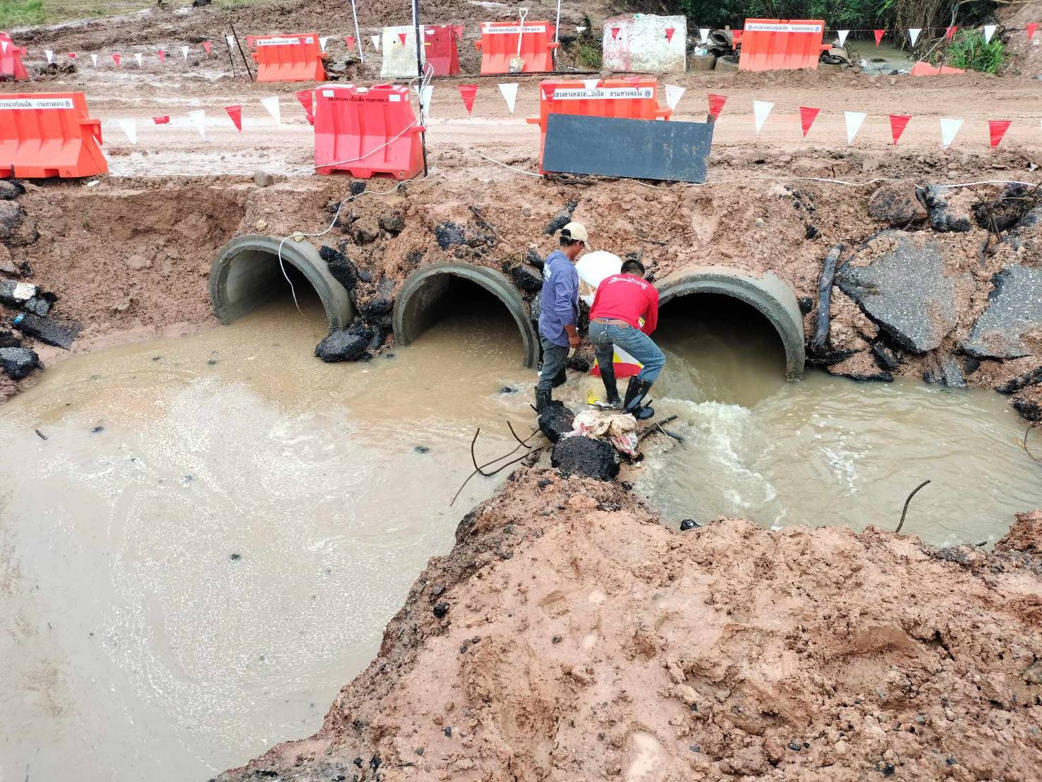 นายมงคล แสนวงษา ผู้อำนวยการแขวงทางหลวงร้อยเอ็ด พร้อมด้วยนายสุขสันต์ ปากวิเศษ หัวหน้าหมวดทางหลวงโพนทอง ได้ร่วมลงพื้นที่ตรวจสอบ แนะนำการปฏิบัติงานขุดลอกคลองในบริเวณพื้นที่ก่อสร้าง และได้ทำการวางท่อจัดทำฝายกั้นเพื่อชะลอความเร็วของน้ำ เพื่อให้สะดวกในการปฏิบัติงาน การวางท่อ Cross Drain ขนาด 3 แถว เส้นผ่าศูนย์กลาง 1.20 เมตร ตามสัญญาที่ รอ.37/2566 ลงวันที่ 16 กุมภาพันธ์ 2566 งานโครงการพัฒนาการค้า การลงทุนอุตสาหกรรมและการท่องเที่ยว กิจกรรมเพิ่มประสิทธิภาพทางหลวง ในทางหลวงหมายเลข 2044 ตอน หนองดง - โพนทอง ระหว่าง กม.46+338 - กม.47+861 โดยมีห้างหุ้นส่วนจำกัด จั่วเซ้งค้าไม้ เป็นผู้รับจ้าง