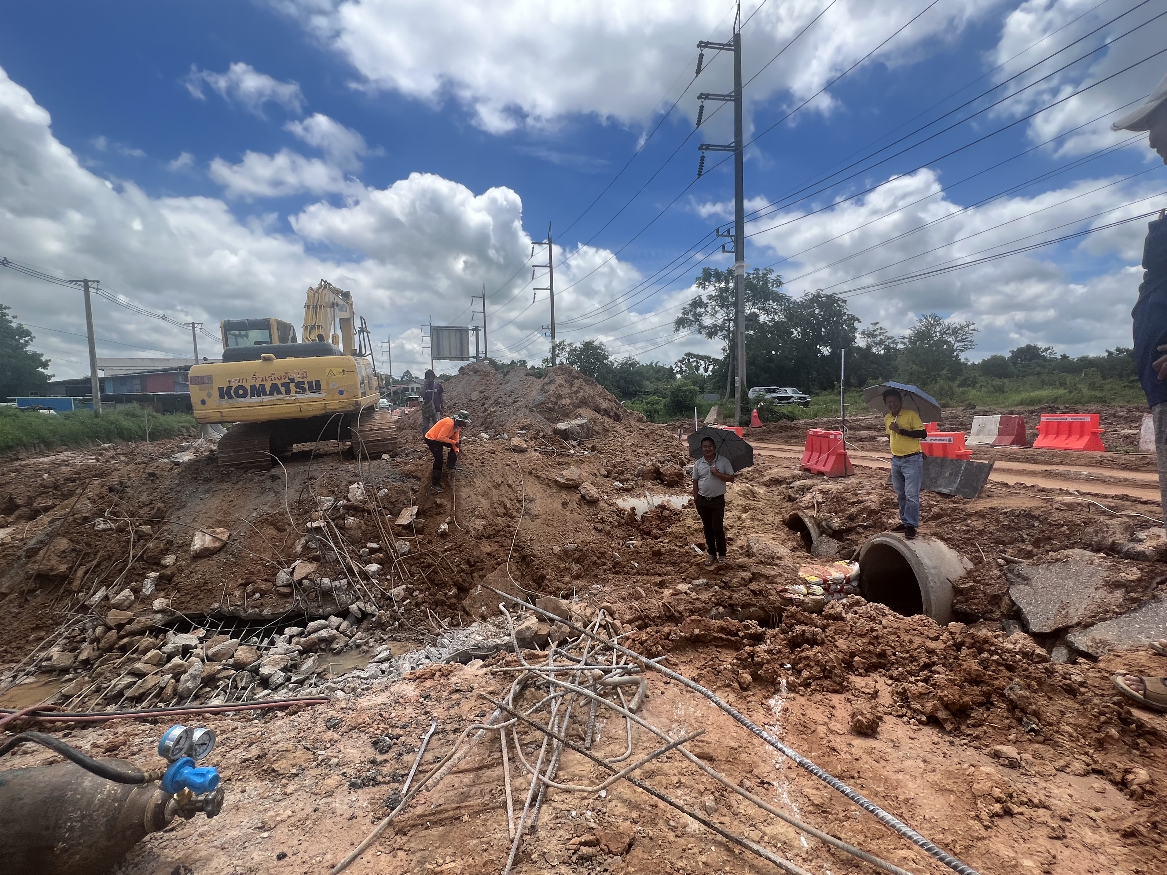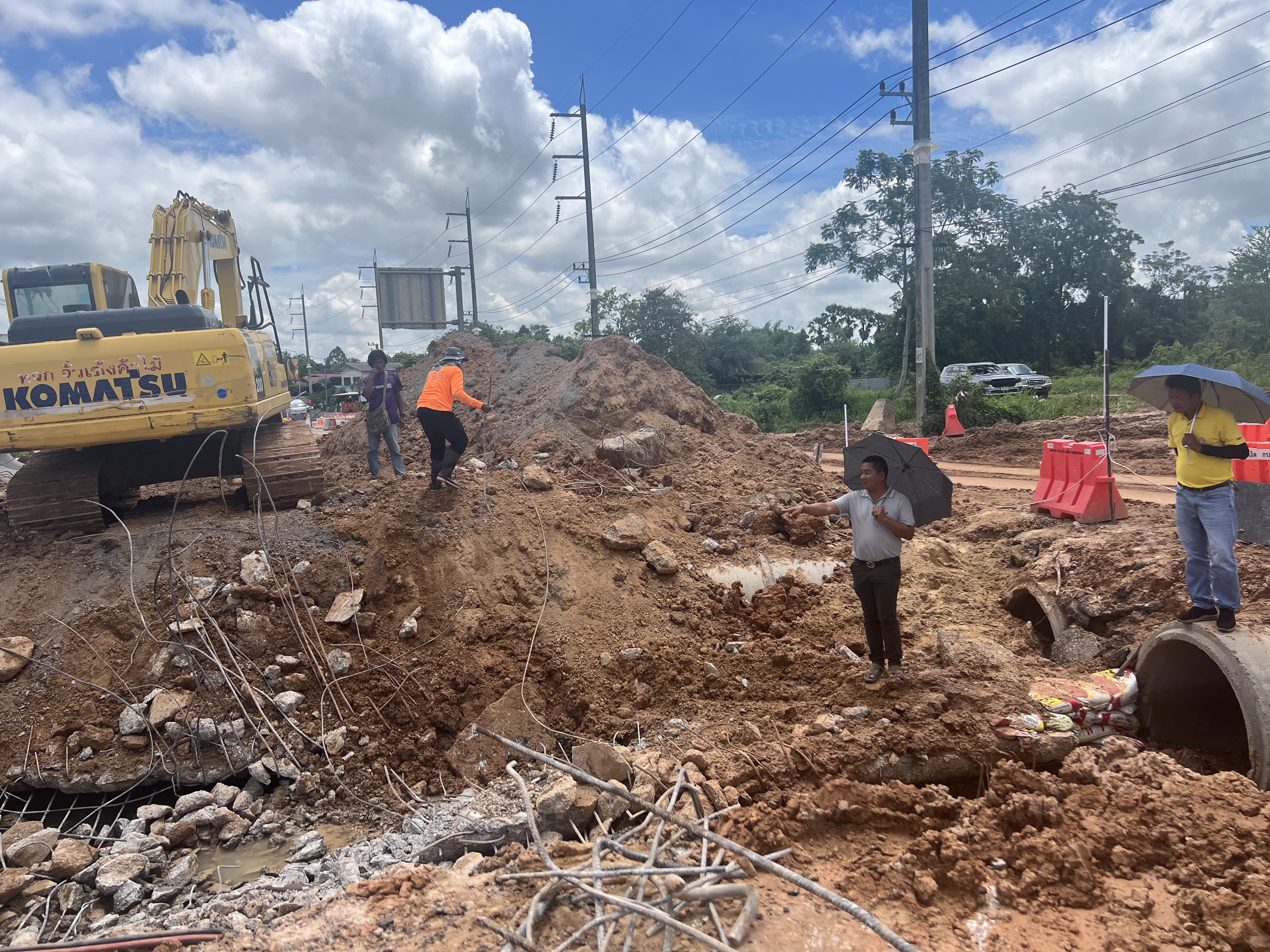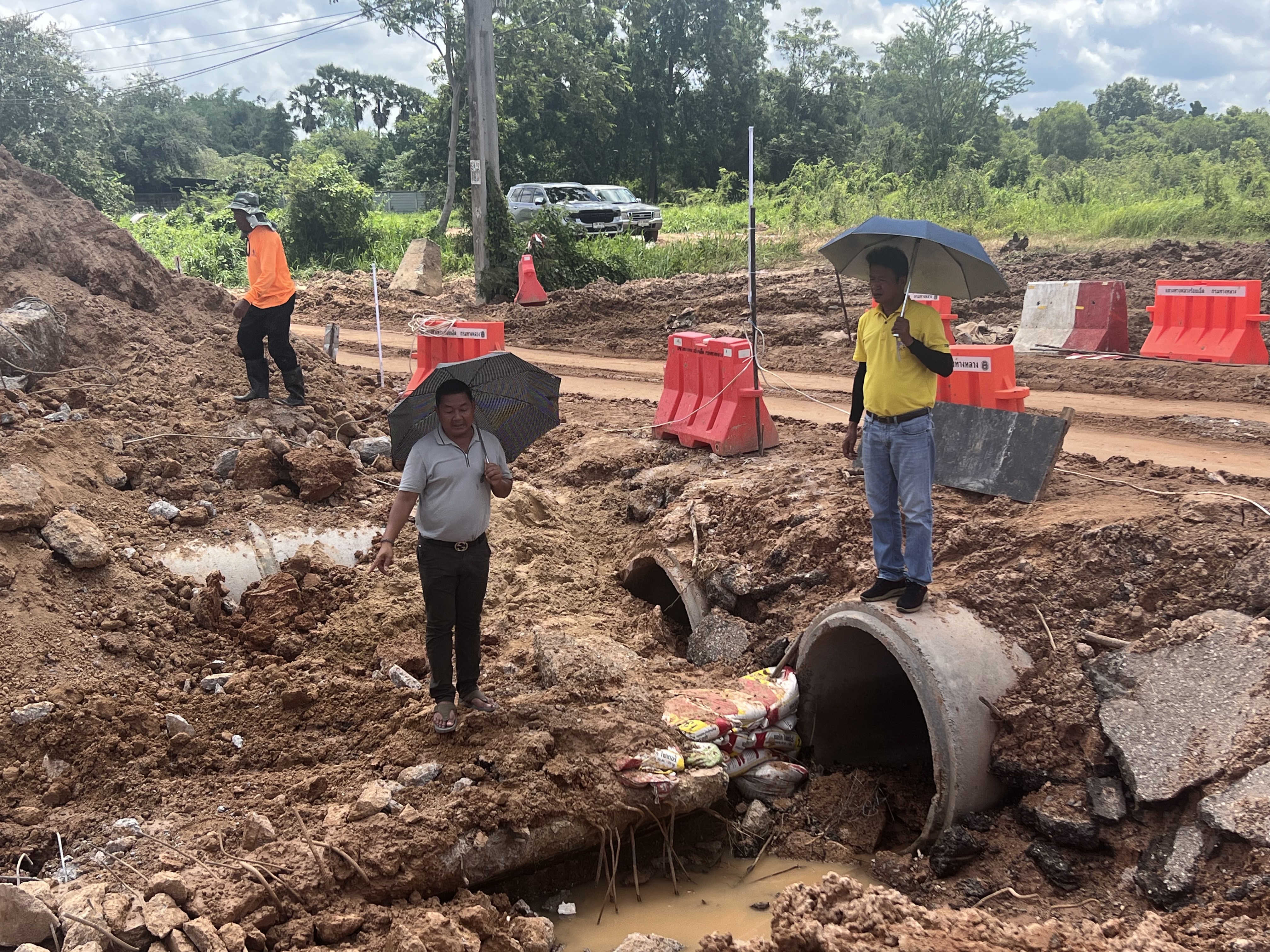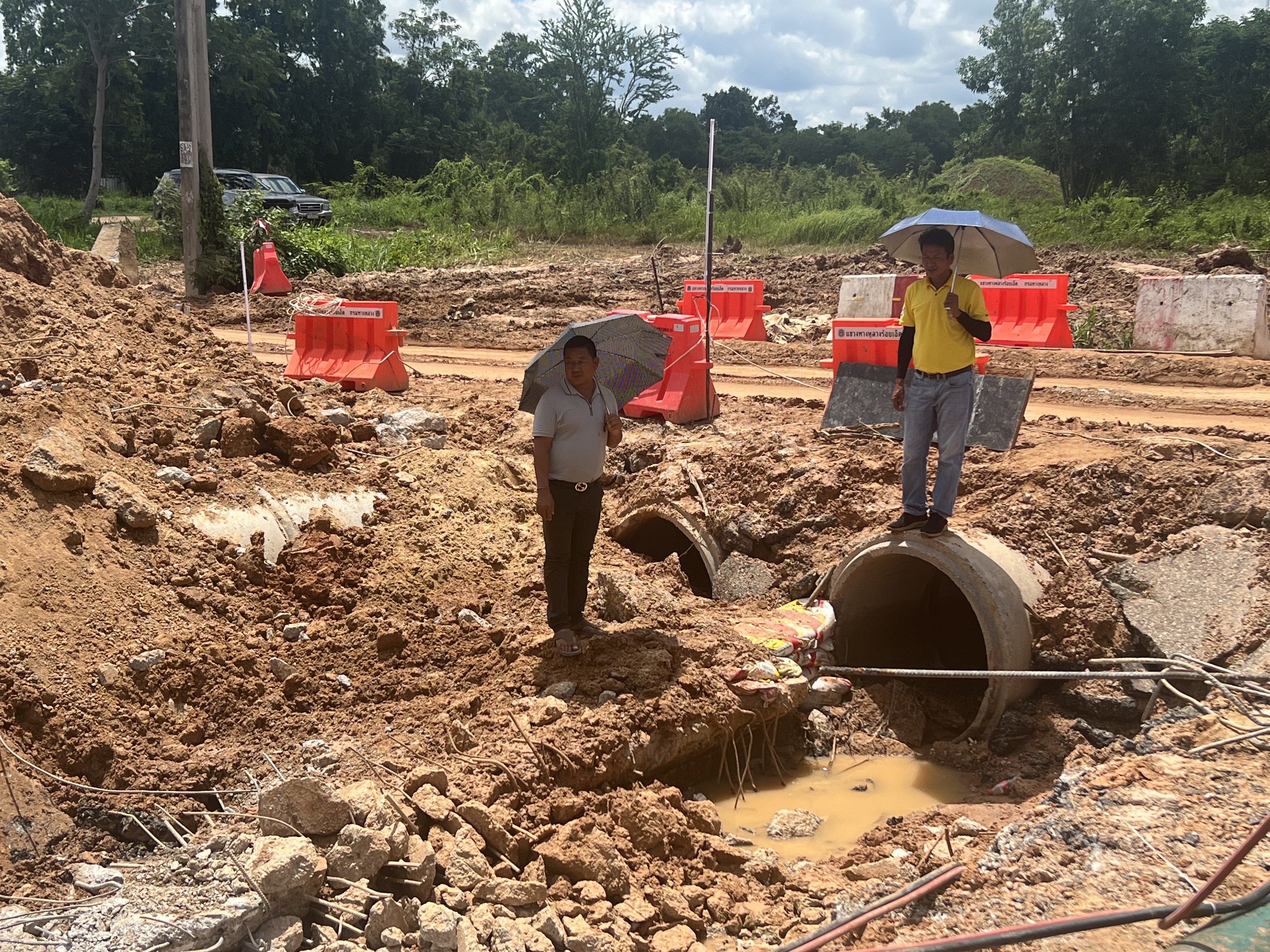 "ร่วมลงพื้นที่ตรวจสอบวางแผนการปฏิบัติงาน แก้ไขปัญหา อุปสรรคระหว่างการดำเนินการวางท่อในบริเวณพื้นที่ก่อสร้าง ตามสัญญาที่ รอ.37/2566 ลงวันที่ 16 กุมภาพันธ์ 2566 งานโครงการพัฒนาการค้า การลงทุนอุตสาหกรรมและการท่องเที่ยว กิจกรรมเพิ่มประสิทธิภาพทางหลวง ในทางหลวงหมายเลข 2044 ตอน หนองดง - โพนทอง ระหว่าง กม.46+338 - กม.47+861"