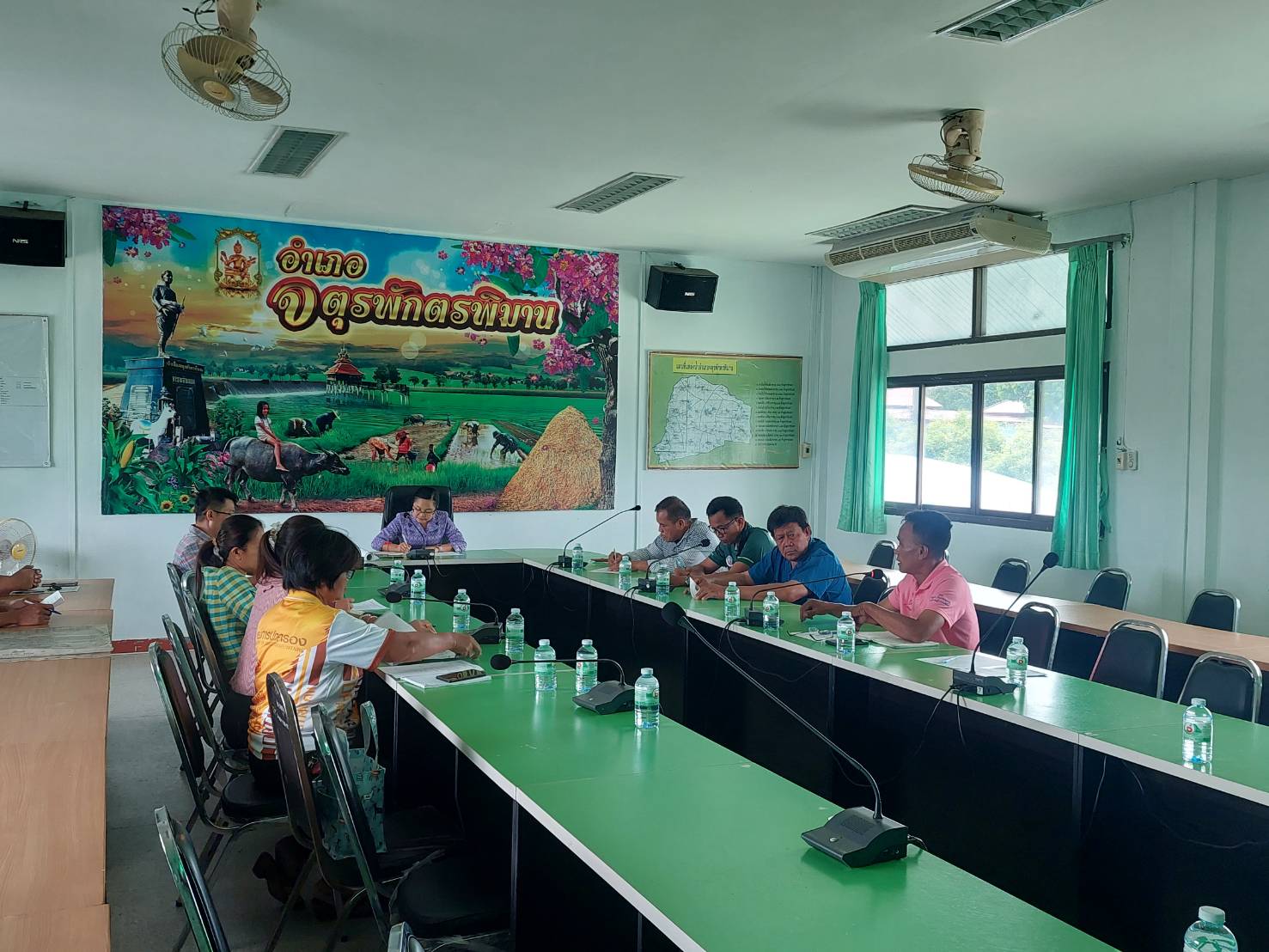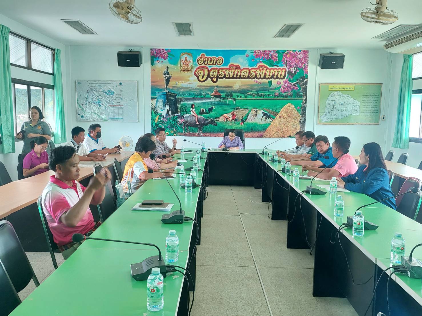 นายมงคล แสนวงษา ผู้อำนวยการแขวงทางหลวงร้อยเอ็ด มอบหมายให้นายสถิต คำพิชิต รองผู้อำนวยการแขวงทางหลวงร้อยเอ็ด ฝ่ายปฏิบัติการ และนายพิทักษ์ ทาตะนาม หัวหน้าหมวดทางหลวงเกษตรวิสัย ได้เข้าร่วมประชุมเพื่อบูรณาการหาแนวทางแก้ไขปัญหาความเดือดร้อนน้ำท่วมไร่นาและทางน้ำอุดตัน ณ ห้องประชุมหลวงพรหมพิทักษ์ ชั้น 2 ที่ว่าการอำเภอจตุรพักตรพิมาน อำเภอจตุรพักตรพิมาน จังหวัดร้อยเอ็ด
