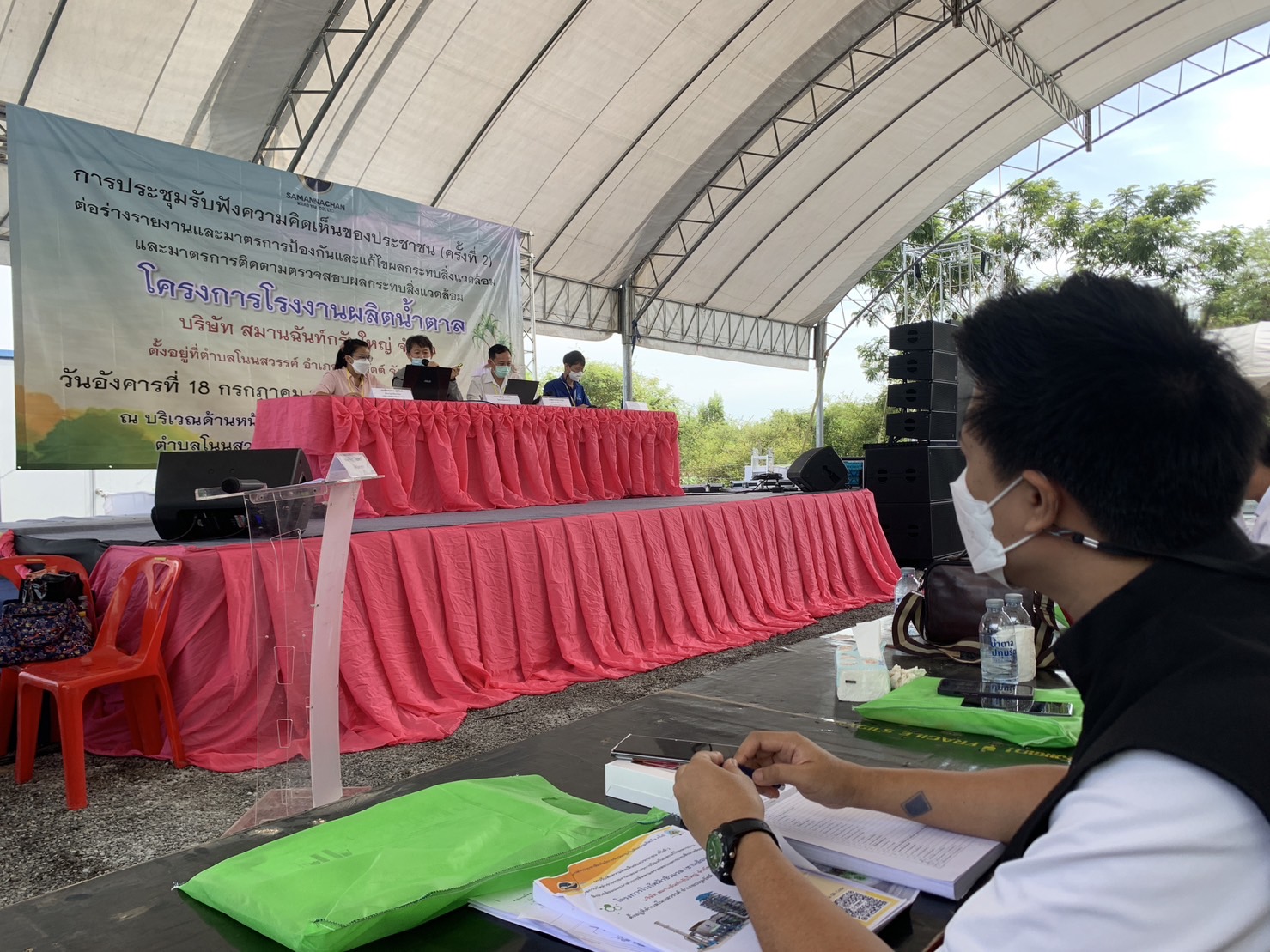 "เข้าร่วมการประชุมรับฟังความคิดเห็นต่อร่างรายงานและมาตรการป้องกันและแก้ไขผลกระทบสิ่งแวดล้อม และมาตรการติดตามตรวจสอบผลกระทบสิ่งแวดล้อม โครงการโรงไฟฟ้าชีวมวล (ชานอ้อย) ของบริษัท สมานฉันท์กรับใหญ่ จำกัด"