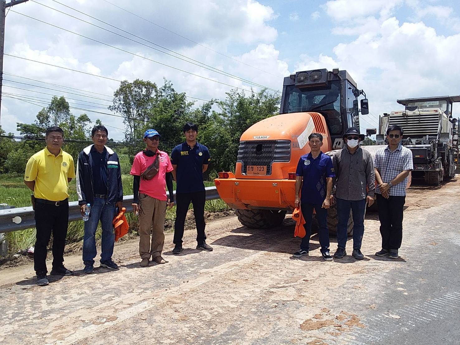 "เข้าร่วมตรวจสอบเครื่องจักรของ หจก.เซ่งฮวดโพนทอง เพื่อขอต่อทะเบียนผู้รับเหมางานก่อสร้างและบำรุงทางประเภทที่6(งานบูรณะทางแบบ Pavement In-Place Recycling) แปลงทดลอง ทล.2418 ตอน โพนทอง - หนองพอก ระหว่าง กม.2+800 - กม.2+900"