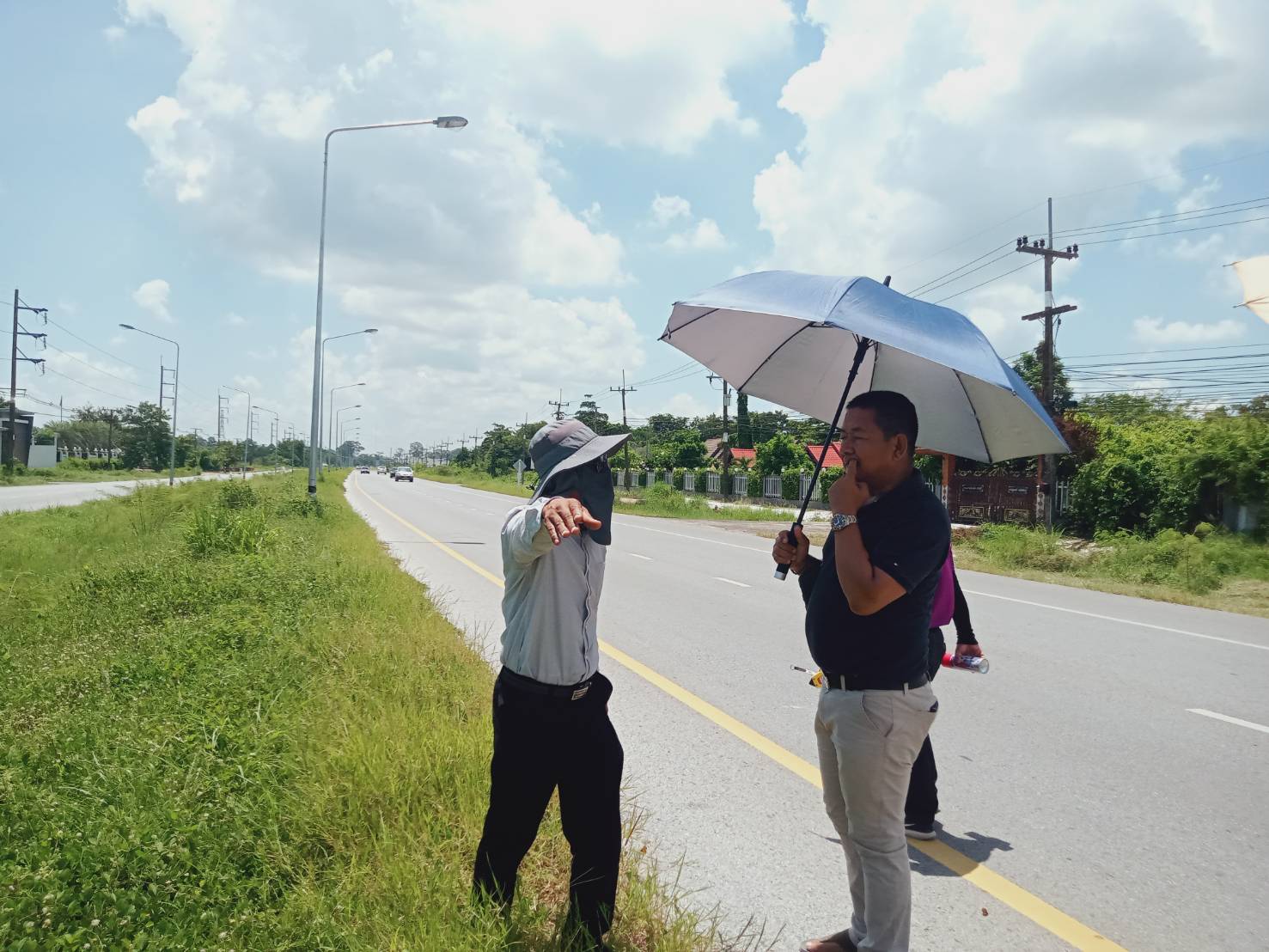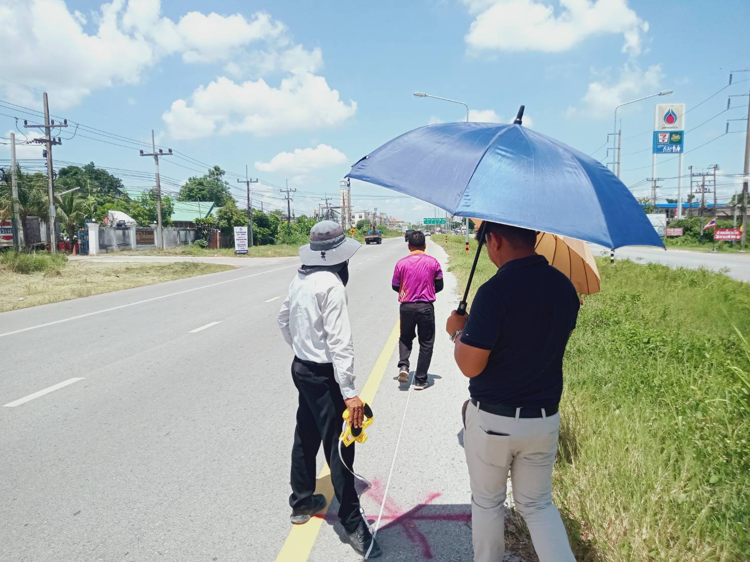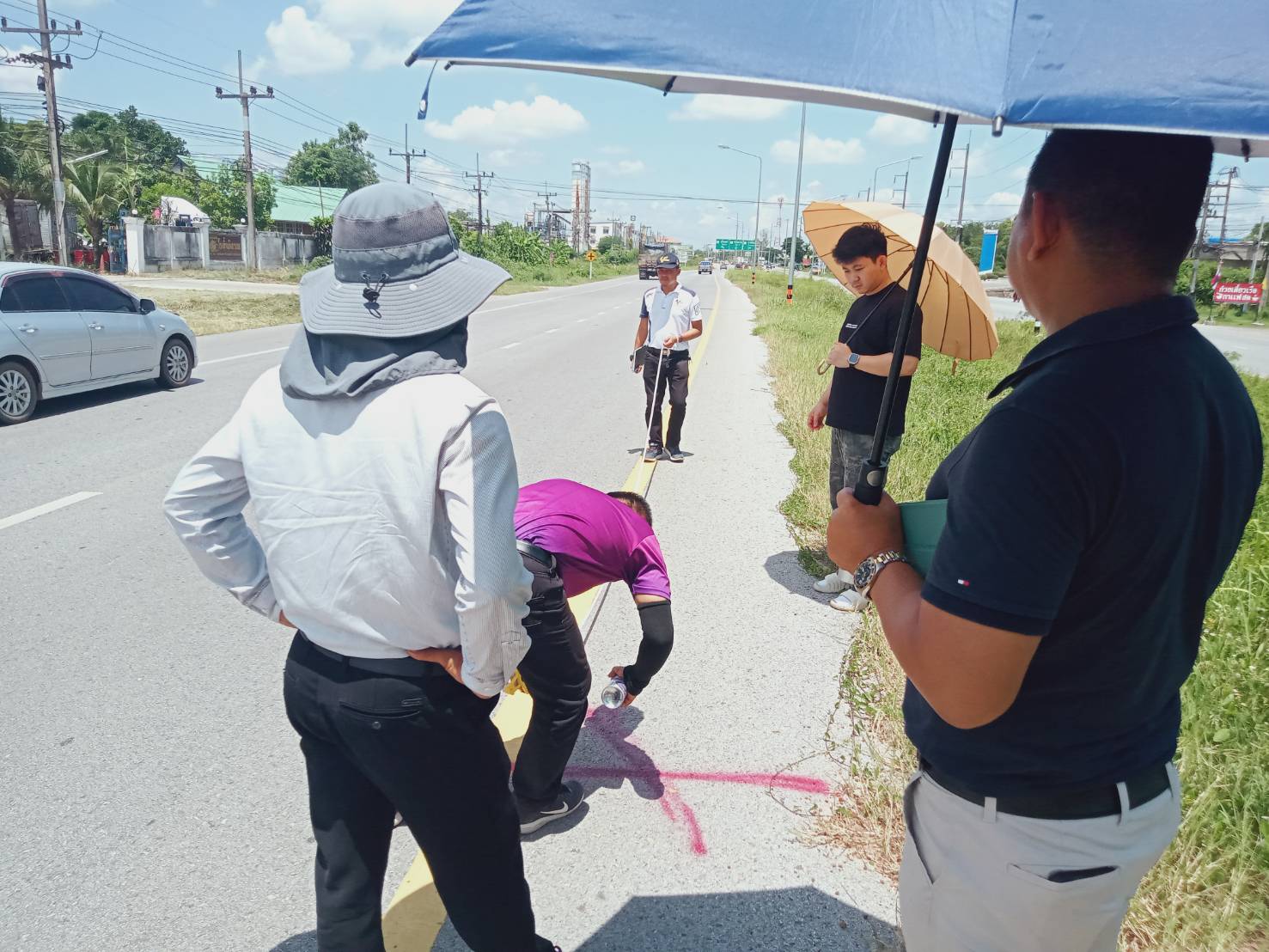 "ร่วมลงพื้นที่ตรวจสอบกายภาพทางหลวง เพื่อวางแผนในการปฏิบัติงานทดลองเปิดจุดกลับรถ เพื่อป้องกันปัญหาการขับขี่ย้อนศร ทล.23 ตอน ร้อยเอ็ด - เสลภูมิ ที่กม.115+500"