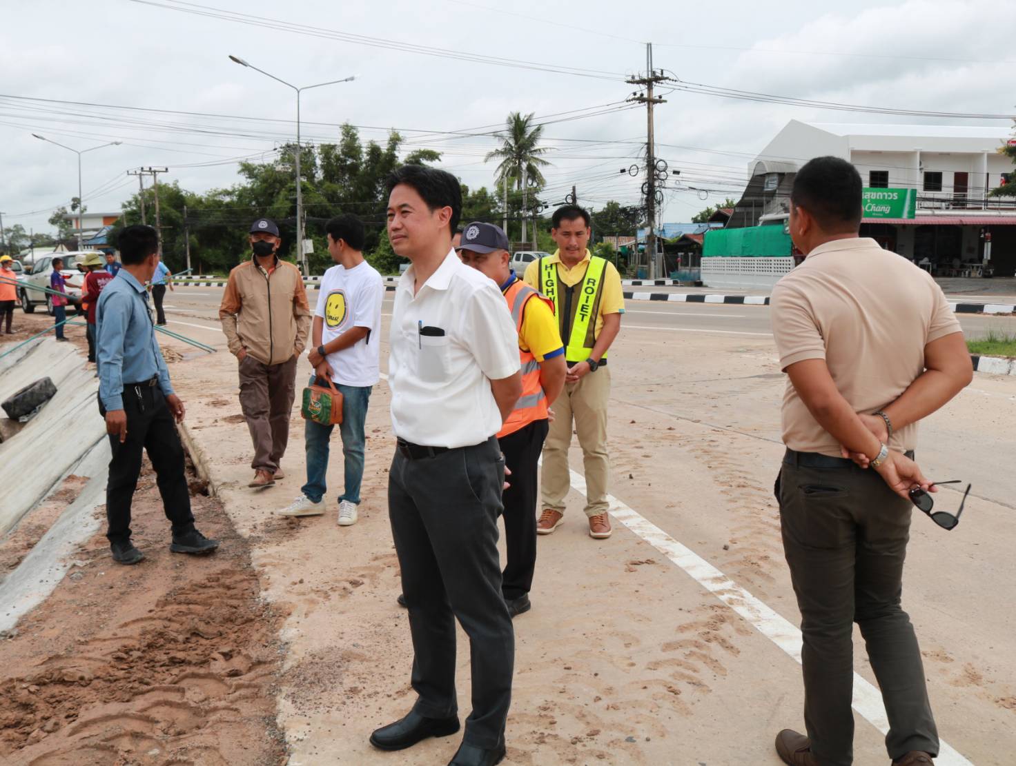 นายชาญพินิจ พินิจศักดิ์ รองผู้อำนวยการสำนักงานทางหลวงที่ 8 ประธานกรรมการตรวจรับพัสดุ ,นายมงคล แสนวงษา ผู้อำนวยการแขวงทางหลวงร้อยเอ็ด กรรมการตรวจรับพัสดุ ,นายชัยธวัช ฉลวยศรี ผุ้อำนวยการส่วนสำรวจและออกแบบ สำนักงานทางหลวงที่ 8 ,นายสถาพร ภาโนมัย ผู้อำนวยการส่วนควบคุมงานก่อสร้าง สำนักงานทางหลวงที่ 8 และนายสถิต คำพิชิต รองผู้อำนวยการแขวงทางหลวงร้อยเอ็ด ฝ่ายปฏิบัติการ ผู้ควบคุมงาน ร่วมลงพื้นที่ตรวจรับงาน ตามสัญญาเลขที่ รอ.19/2566 ลงวันที่ 10 พฤศจิกายน 2565 งานก่อสร้างทางหลวงผ่านย่านชุมชน ในทางหลวงหมายเลข 2043 ตอน ร้อยเอ็ด - ยางเฌอ ระหว่าง กม.2+430 - กม.3+350 โดยมีบริษัท เพชรสมวงศ์การโยธา เป็นผู้รับจ้าง